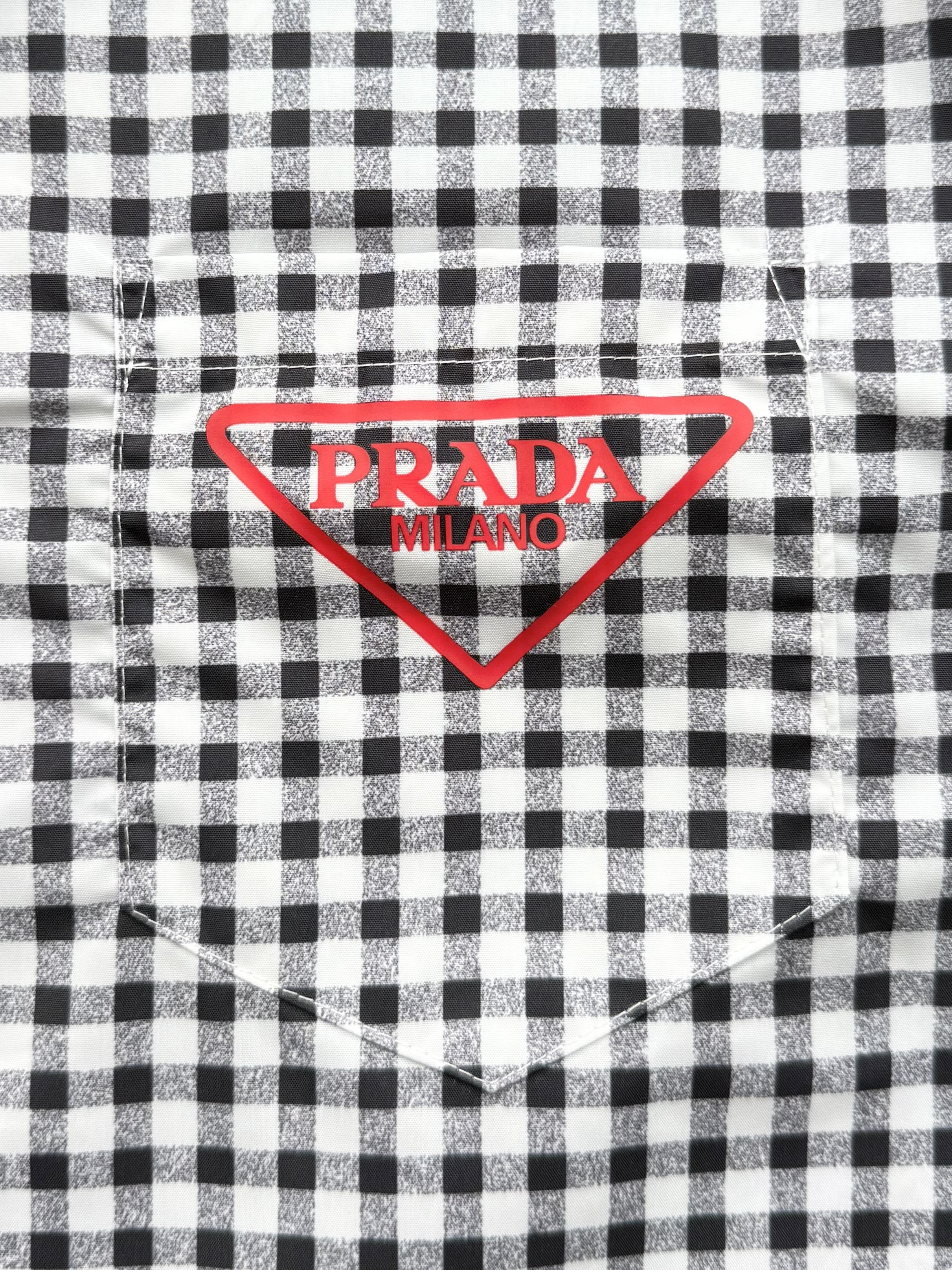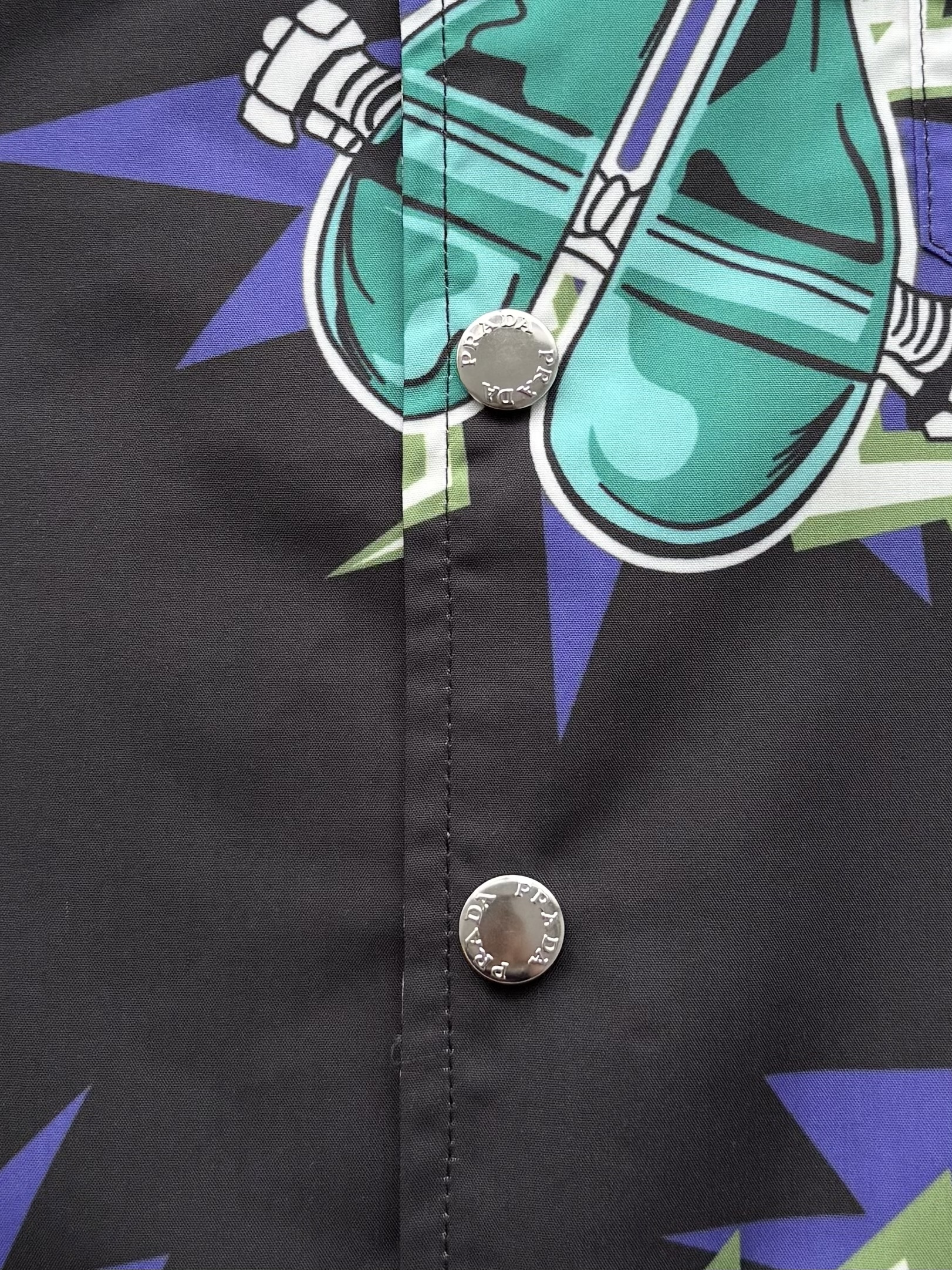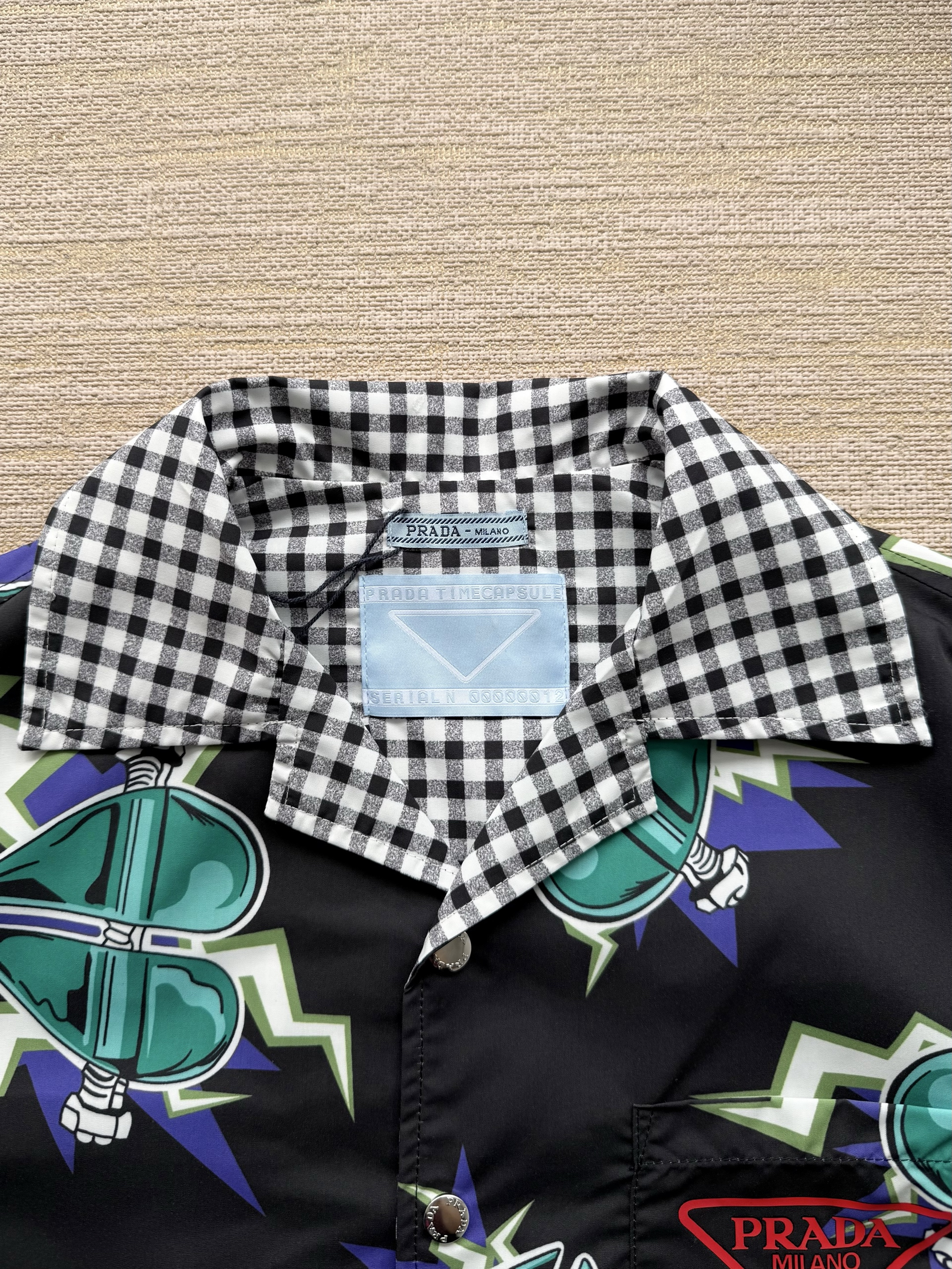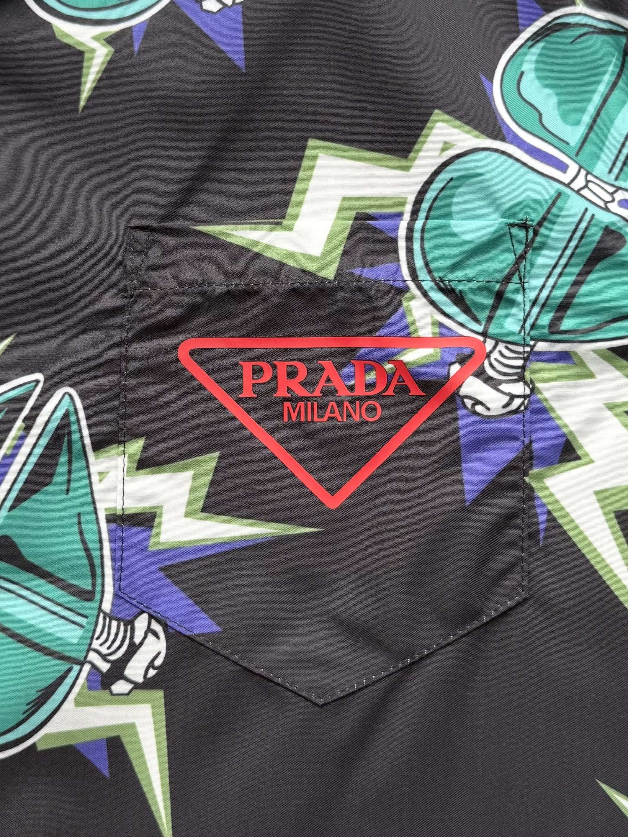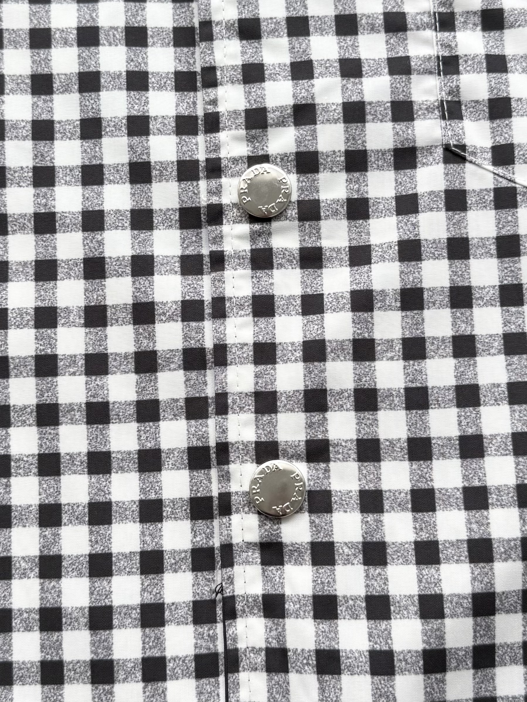 PRADA26ss科学怪人印花图案双面衬衫‼️整件衣服18800购买ZP拆解打造,定制棉质提花面料,做到100%全棉进口纱线,意大利进口制造,双面设计,全幅饰以怪人印花,胸前带有贴袋,前后幅饰以三角标logo字母标识印花设计,定制标志性polo领,门襟开模定制字母标识五金按扣,真正做到1:1copy 闭眼入 码数:S M L XL