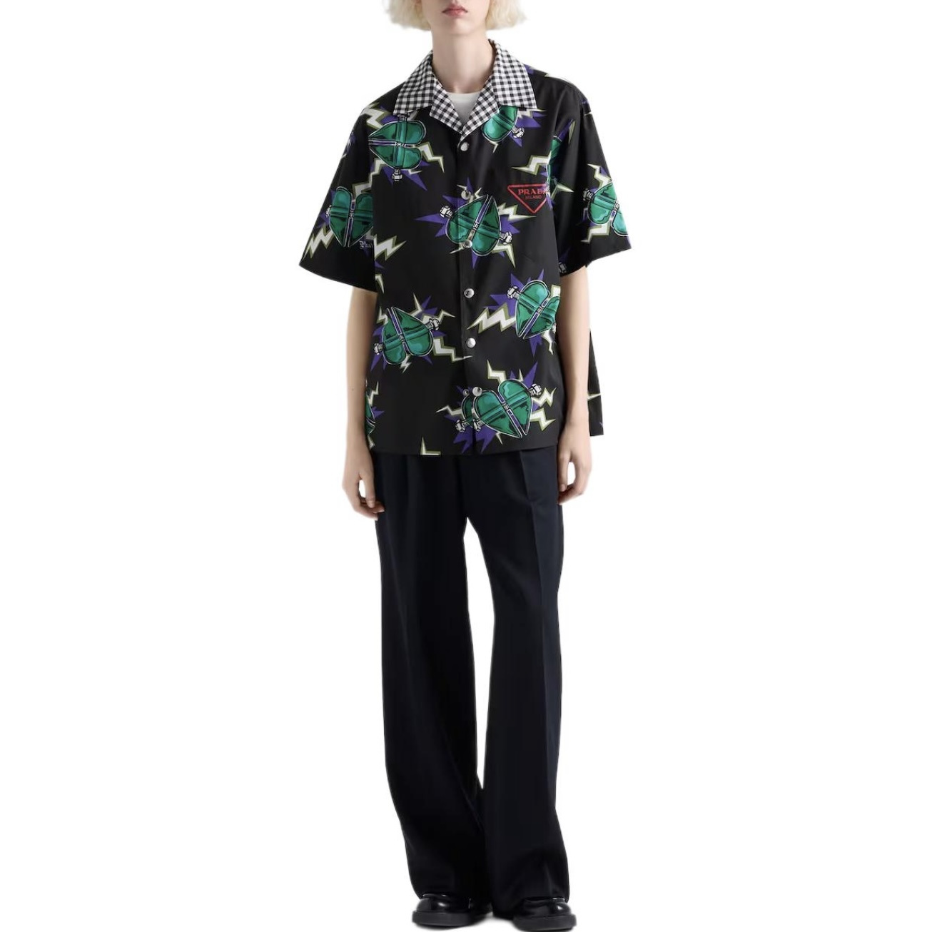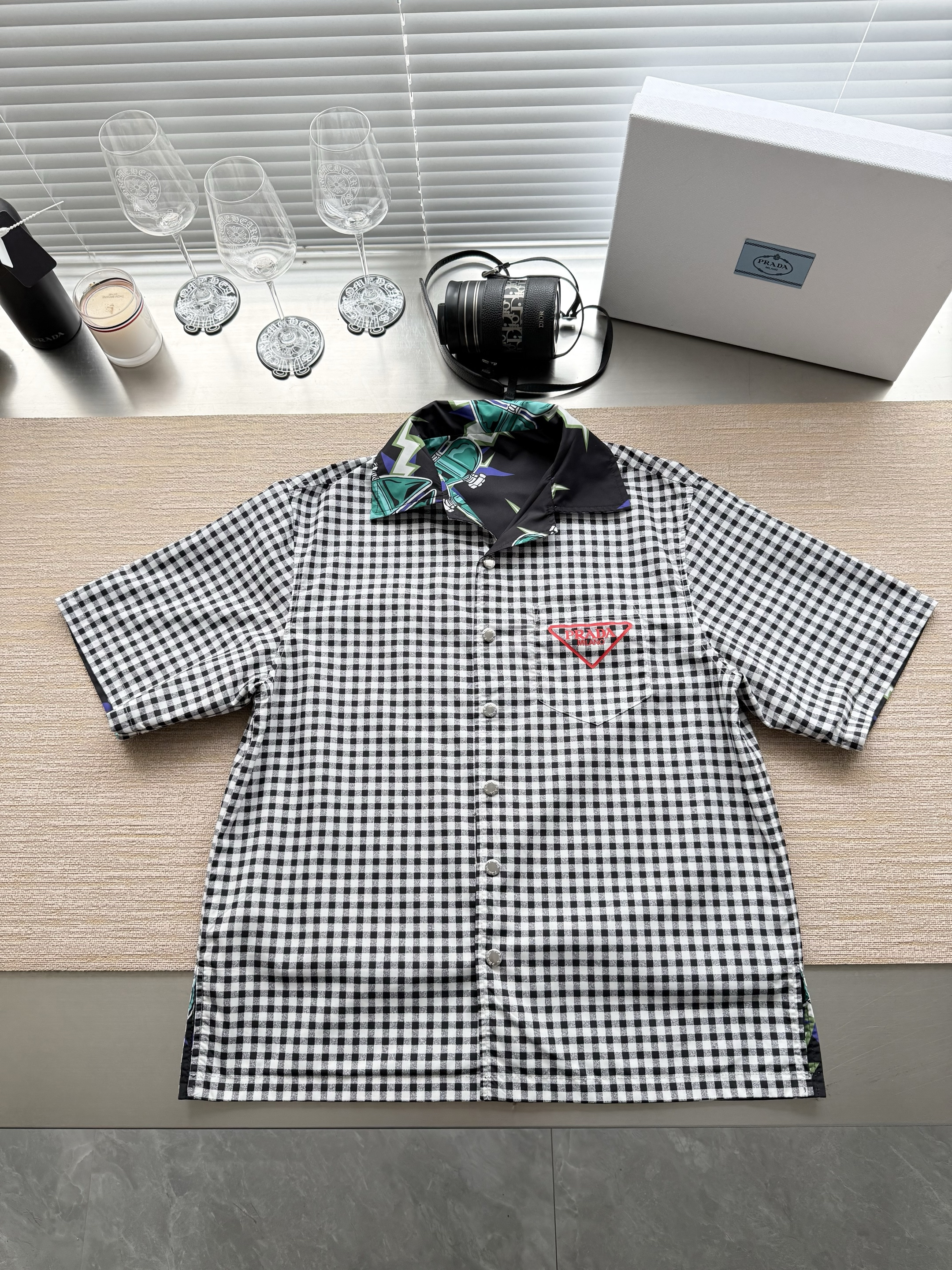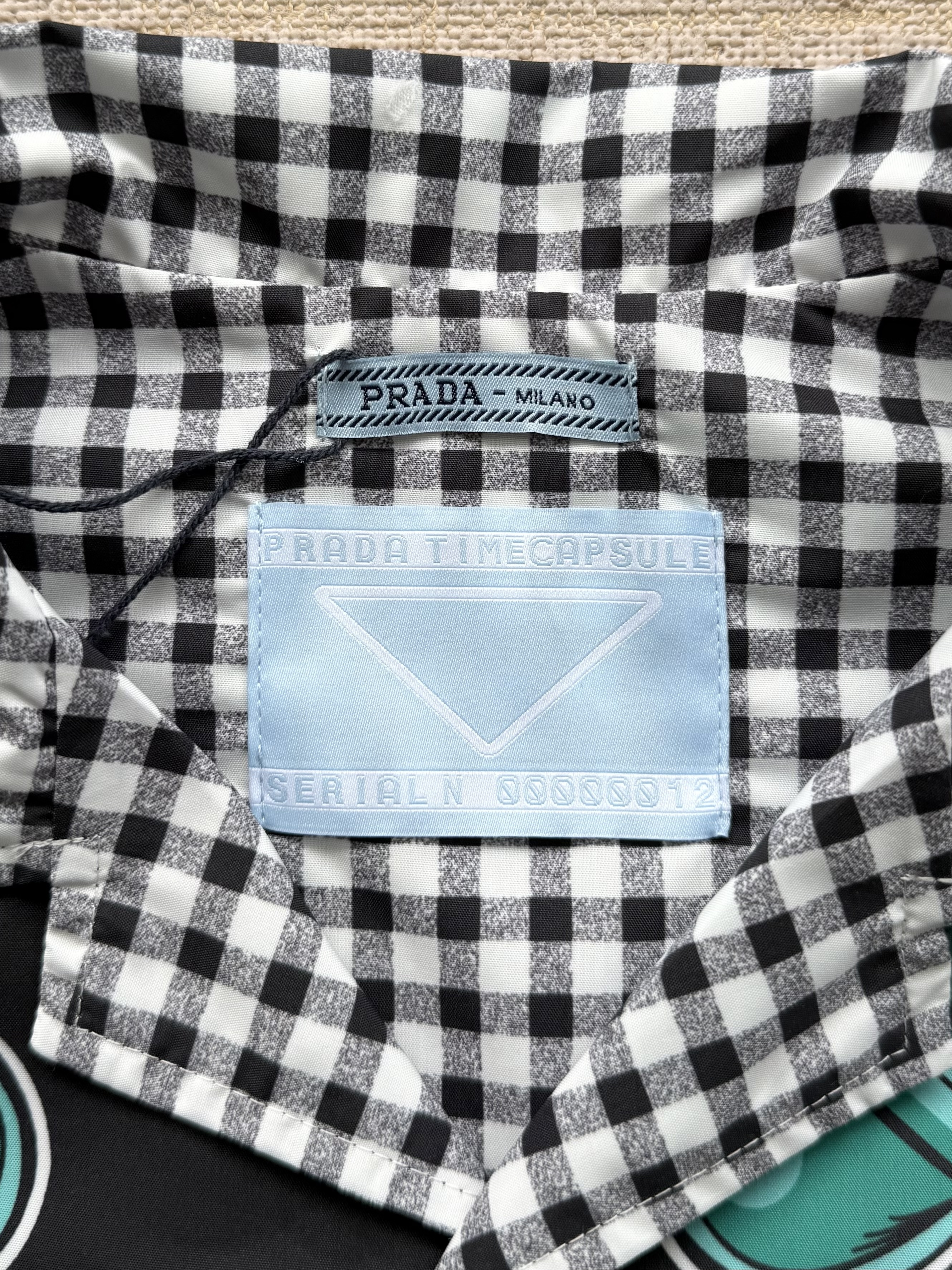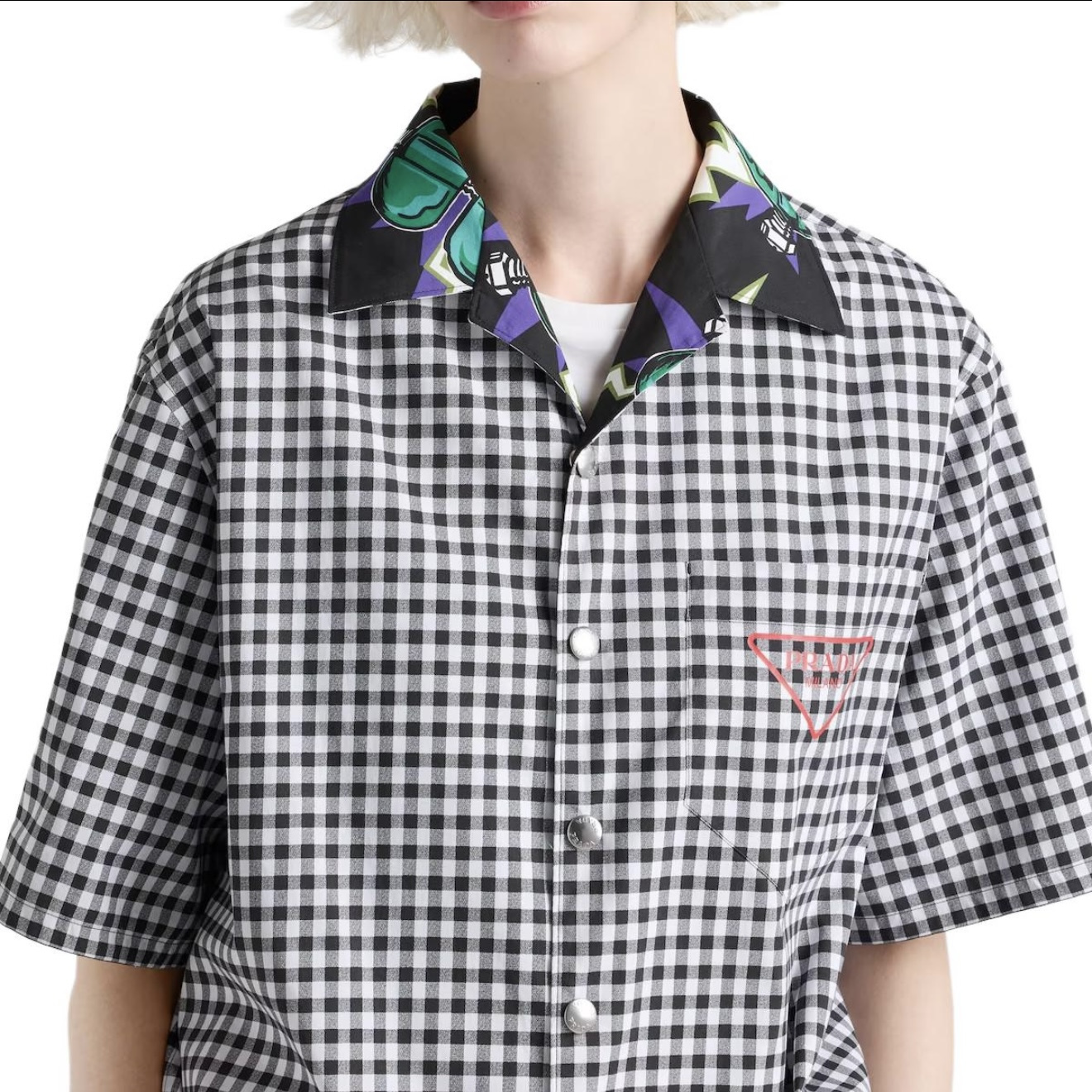 PRADA26ss科学怪人印花图案双面衬衫‼️整件衣服18800购买ZP拆解打造,定制棉质提花面料,做到100%全棉进口纱线,意大利进口制造,双面设计,全幅饰以怪人印花,胸前带有贴袋,前后幅饰以三角标logo字母标识印花设计,定制标志性polo领,门襟开模定制字母标识五金按扣,真正做到1:1copy 闭眼入 码数:S M L XL