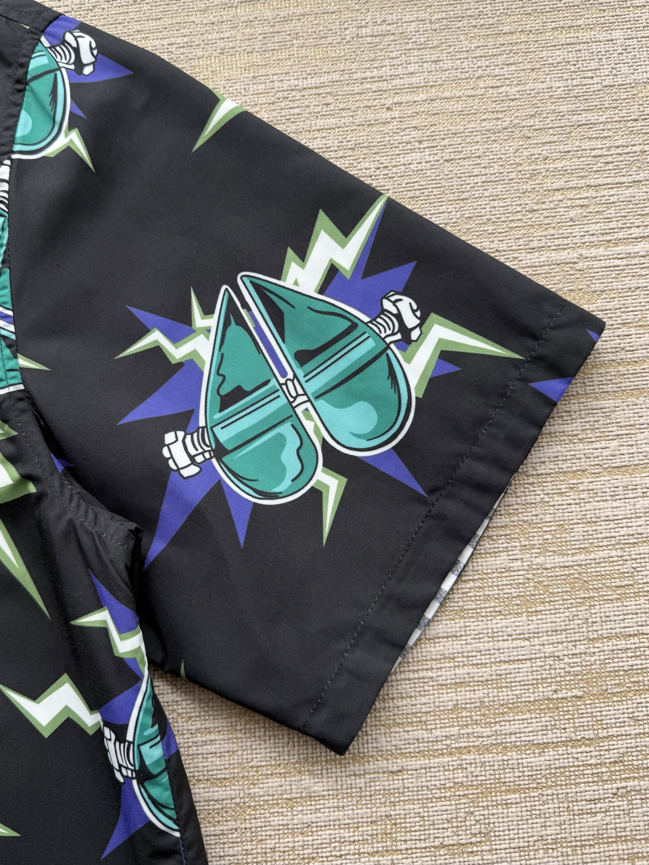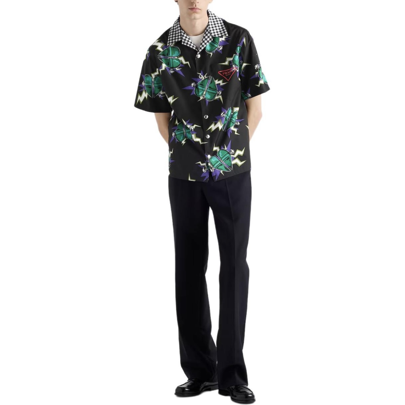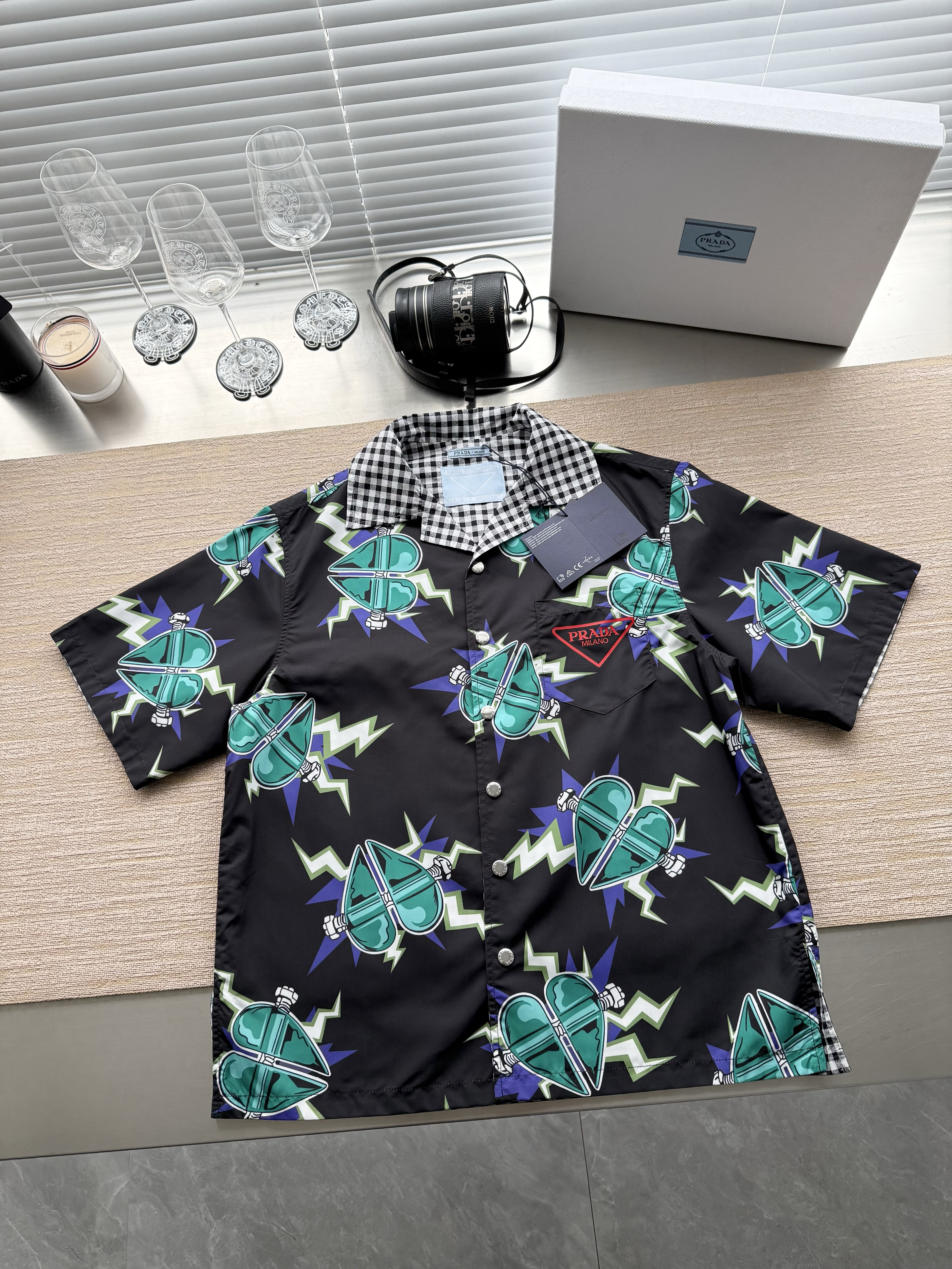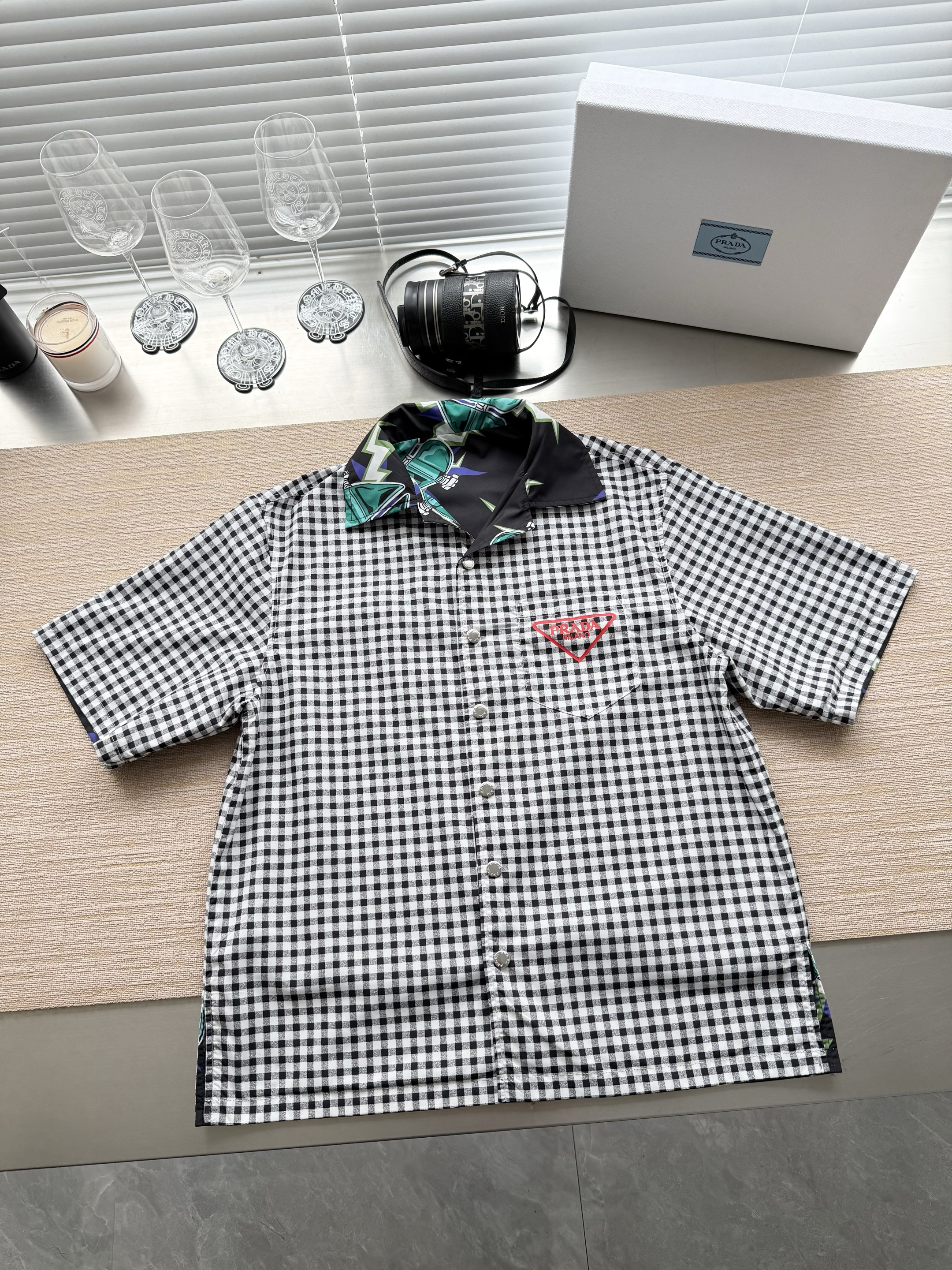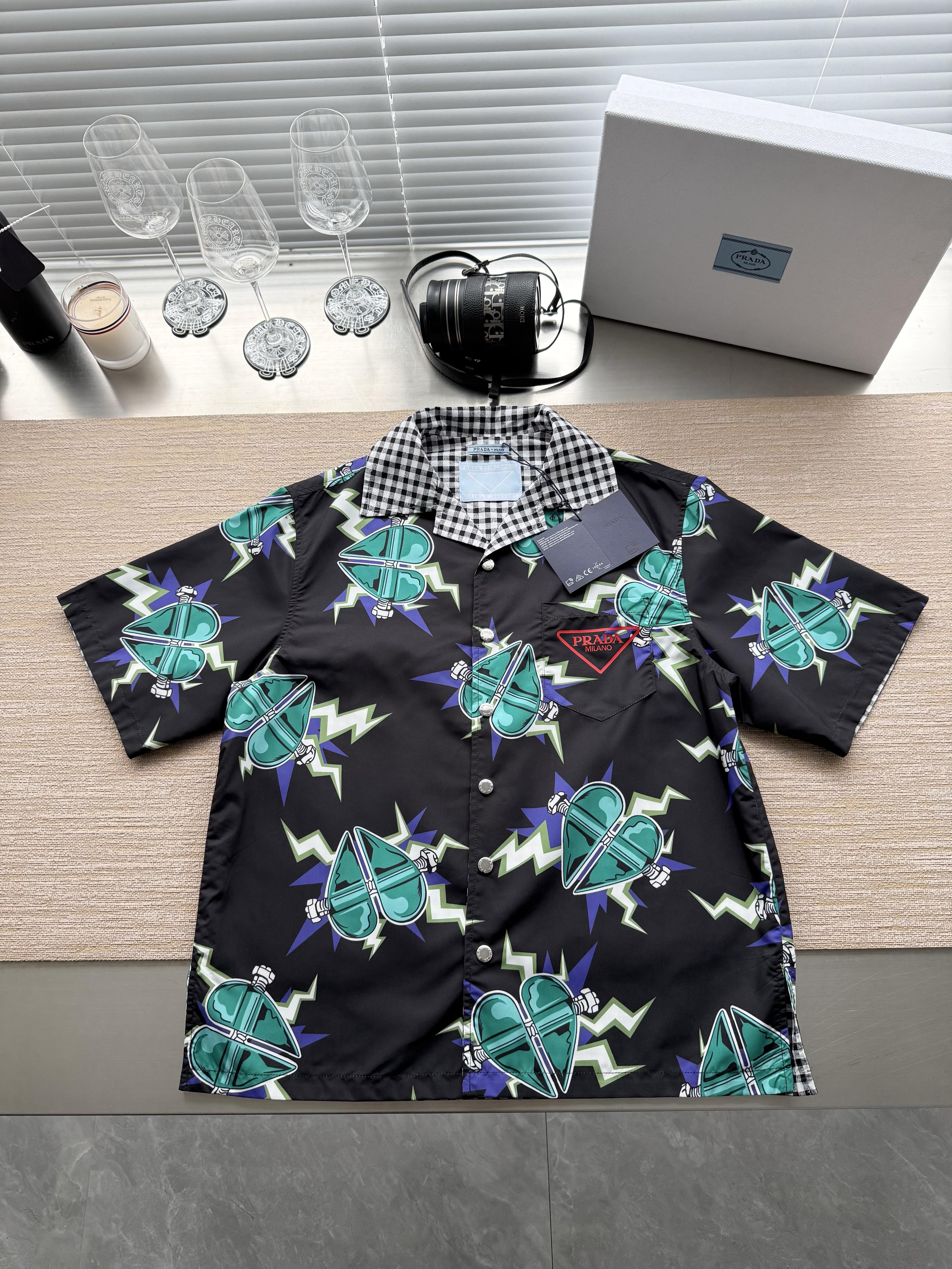 PRADA26ss科学怪人印花图案双面衬衫‼️整件衣服18800购买ZP拆解打造,定制棉质提花面料,做到100%全棉进口纱线,意大利进口制造,双面设计,全幅饰以怪人印花,胸前带有贴袋,前后幅饰以三角标logo字母标识印花设计,定制标志性polo领,门襟开模定制字母标识五金按扣,真正做到1:1copy 闭眼入 码数:S M L XL