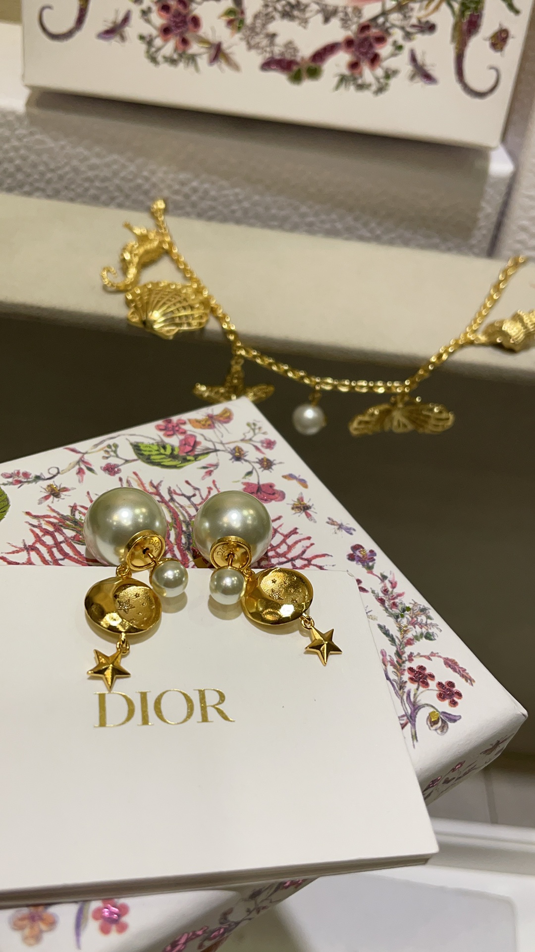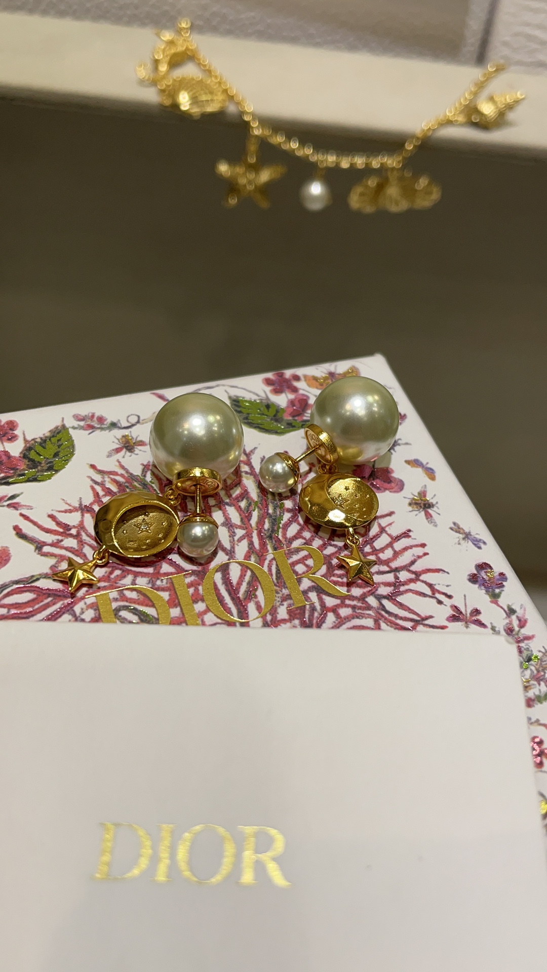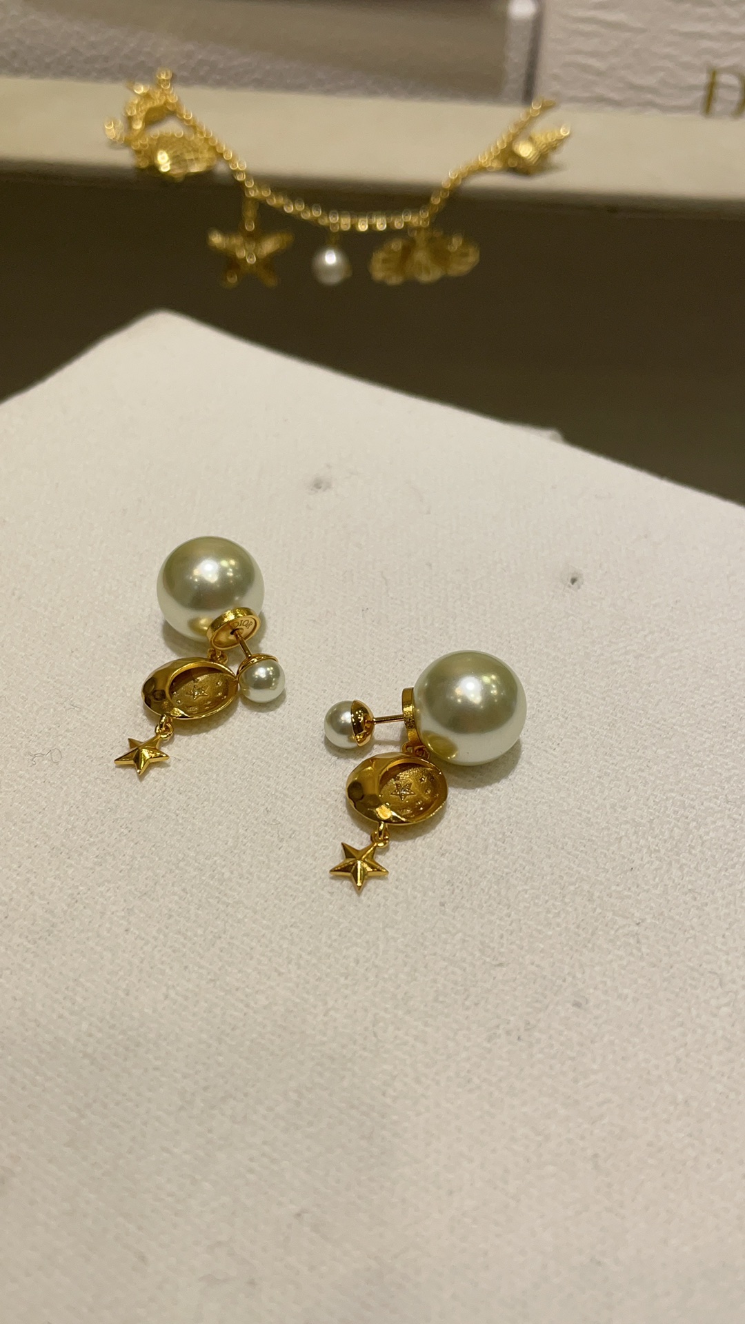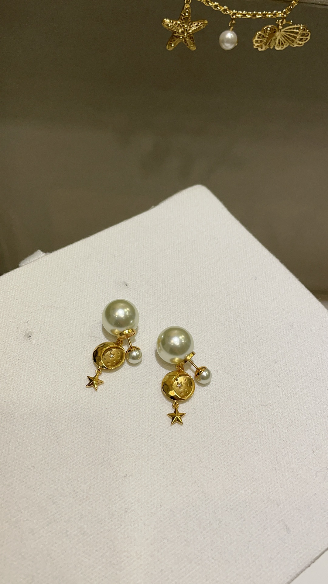 D家 25年新款日月星辰浮雕珍珠双球耳钉