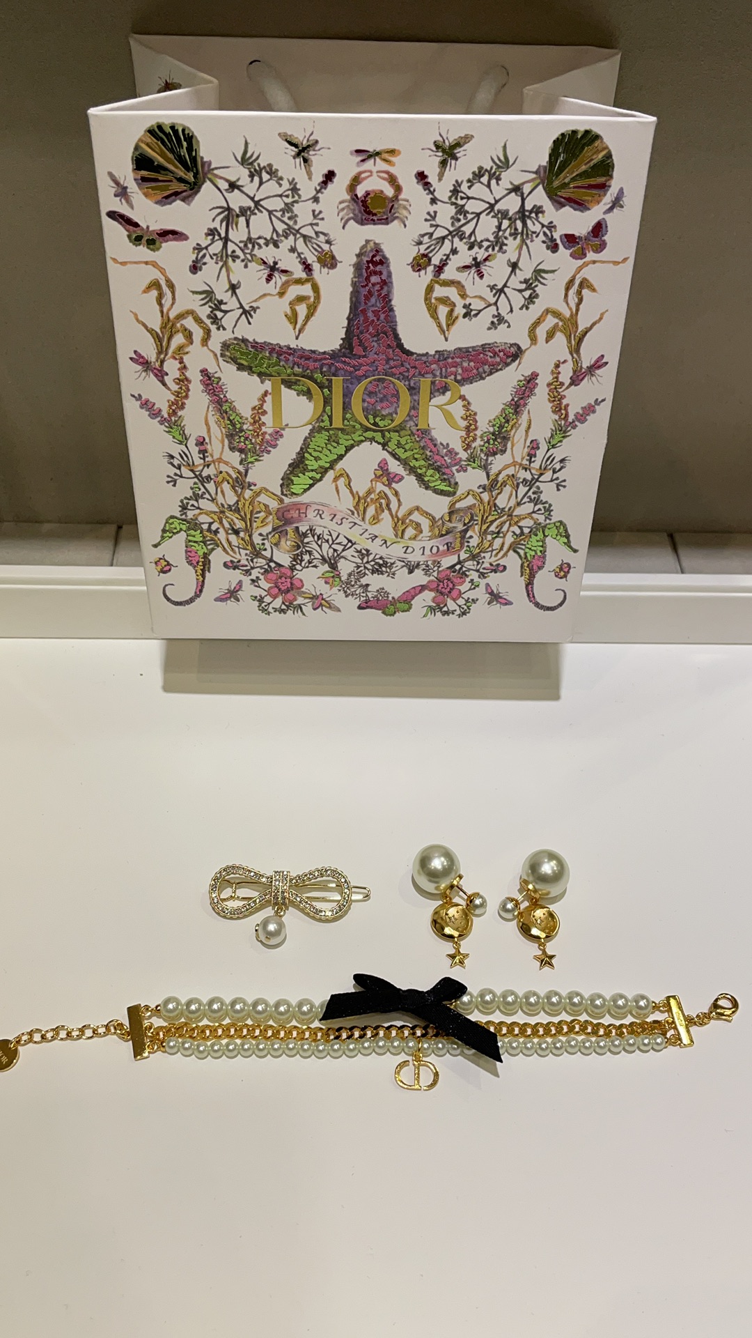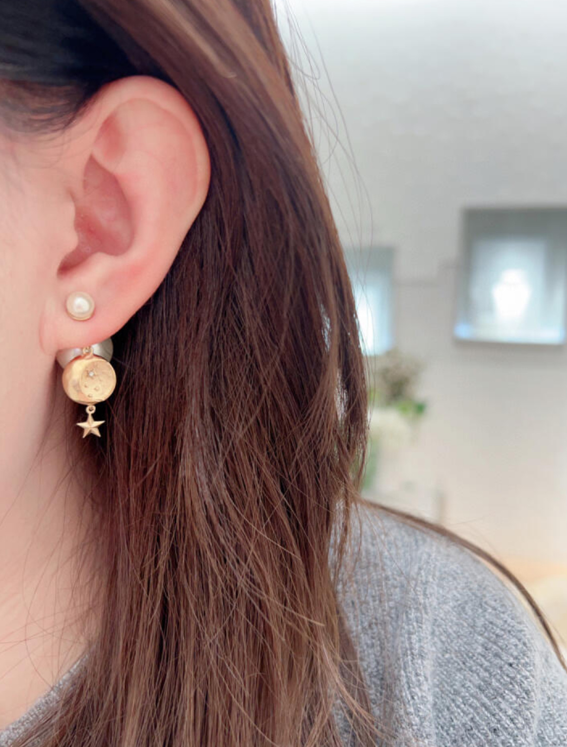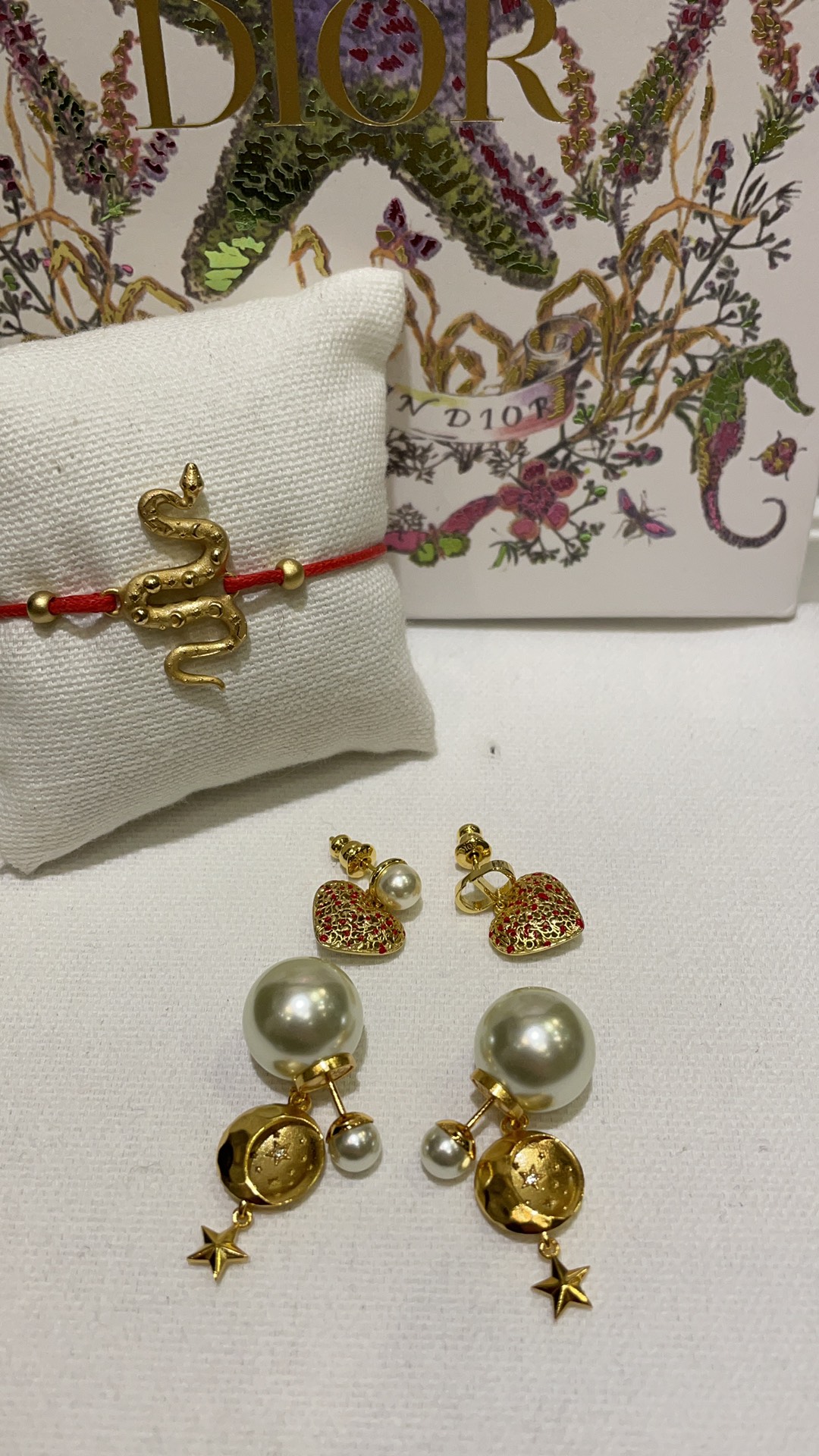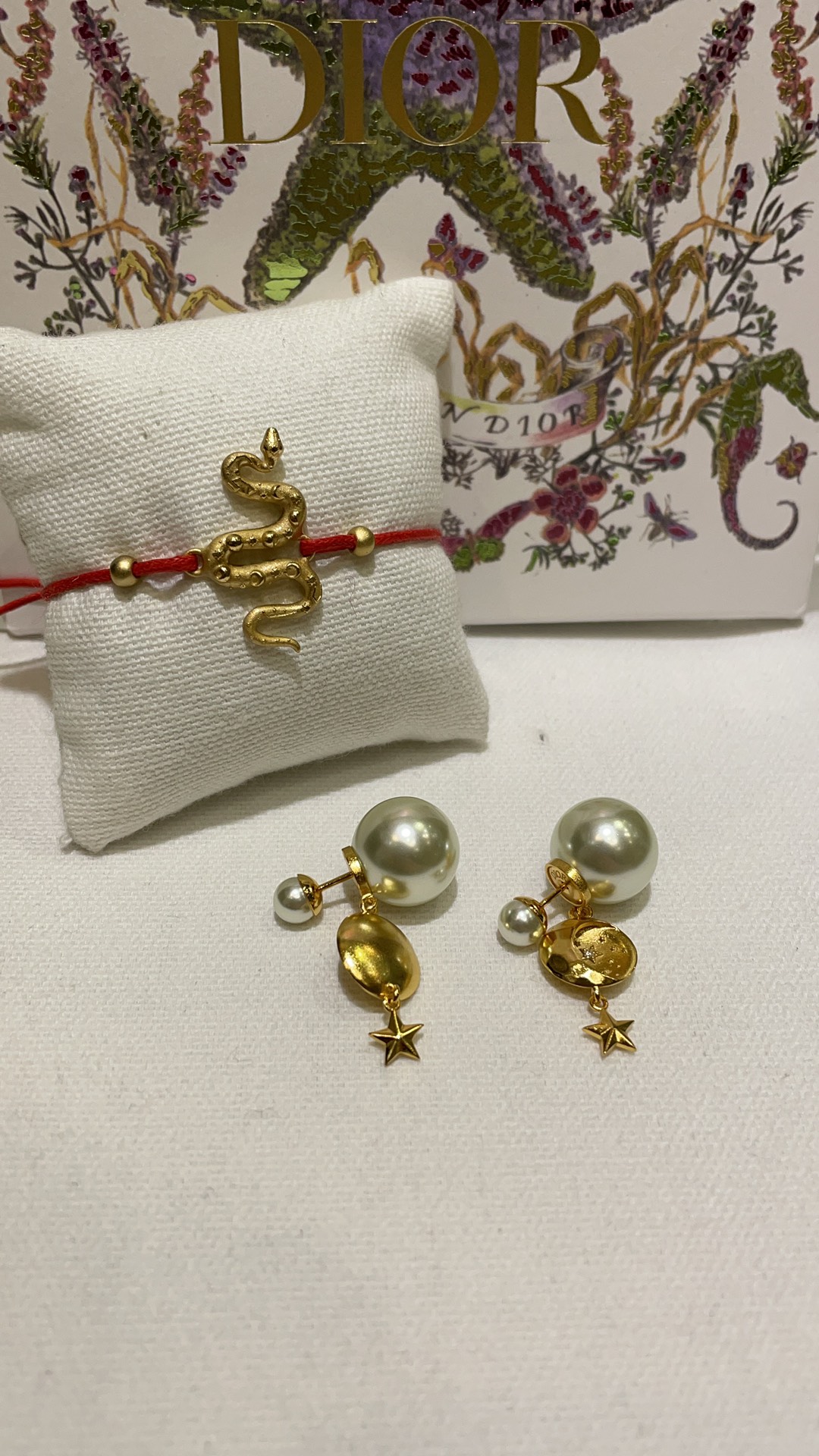 D家 25年新款日月星辰浮雕珍珠双球耳钉
