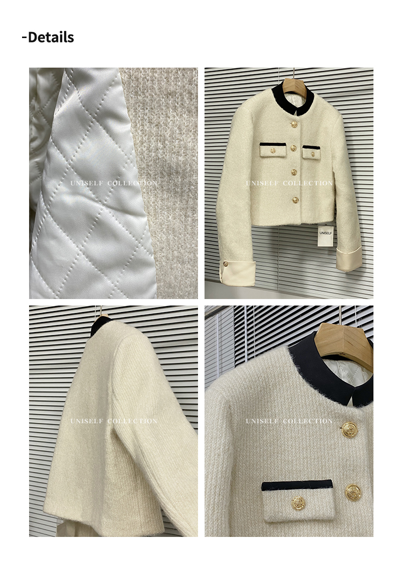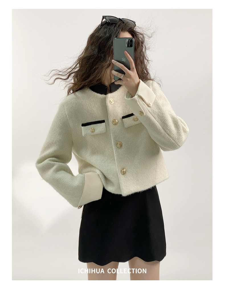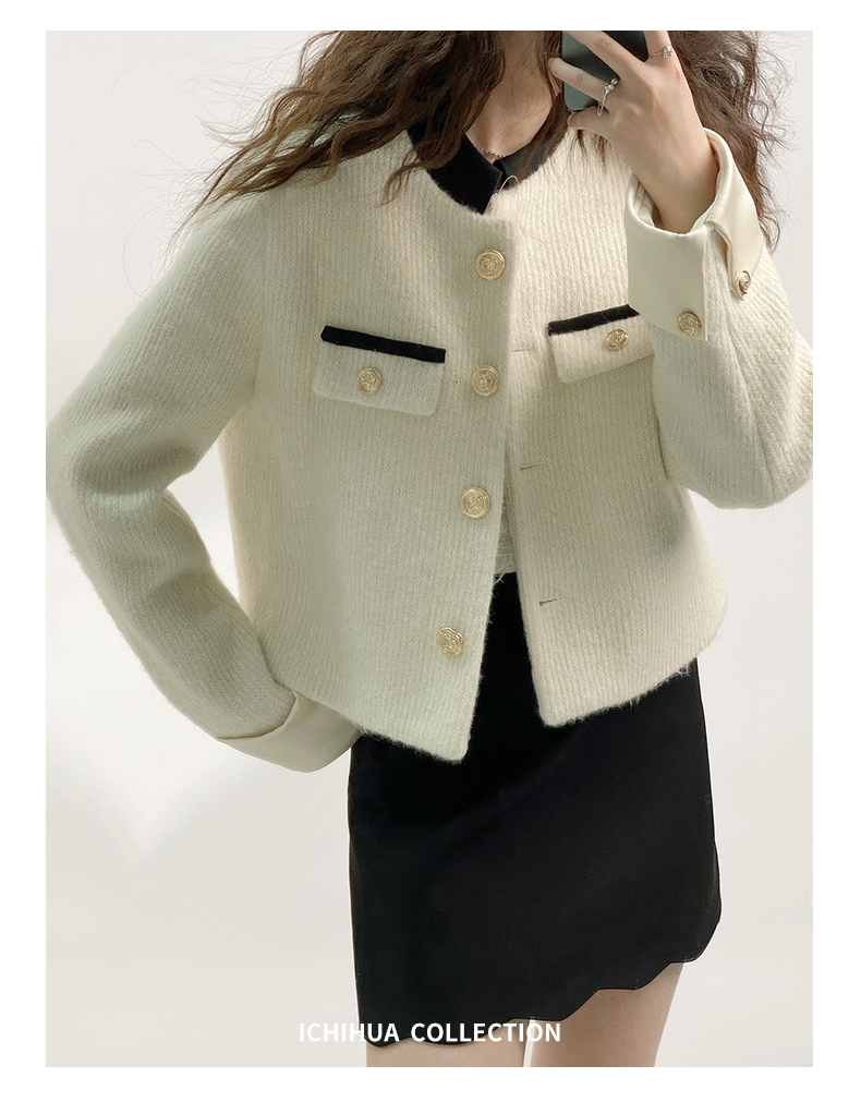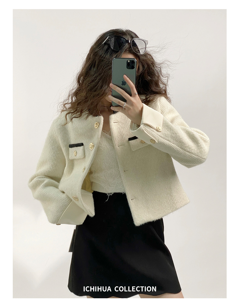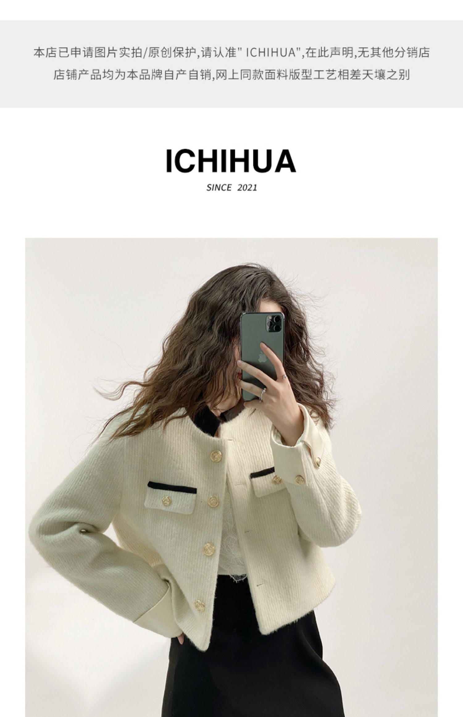 YX【定制17天】气质圆领竖条纹小香风短外套女2023秋季新款韩版百搭休闲上衣