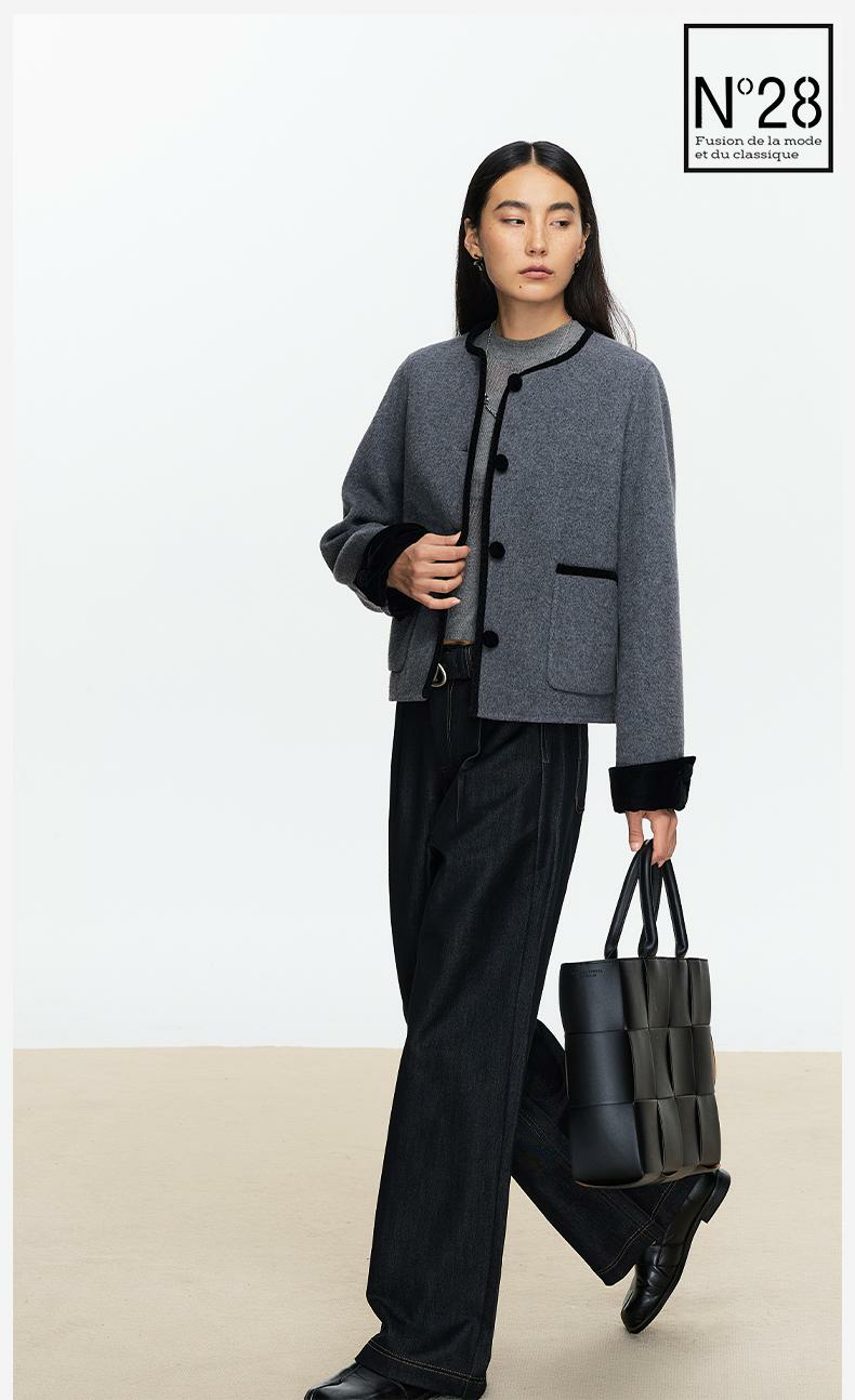 【破价】N°28 秋冬款气质时尚短款圆领高级毛呢外套8A51D093
