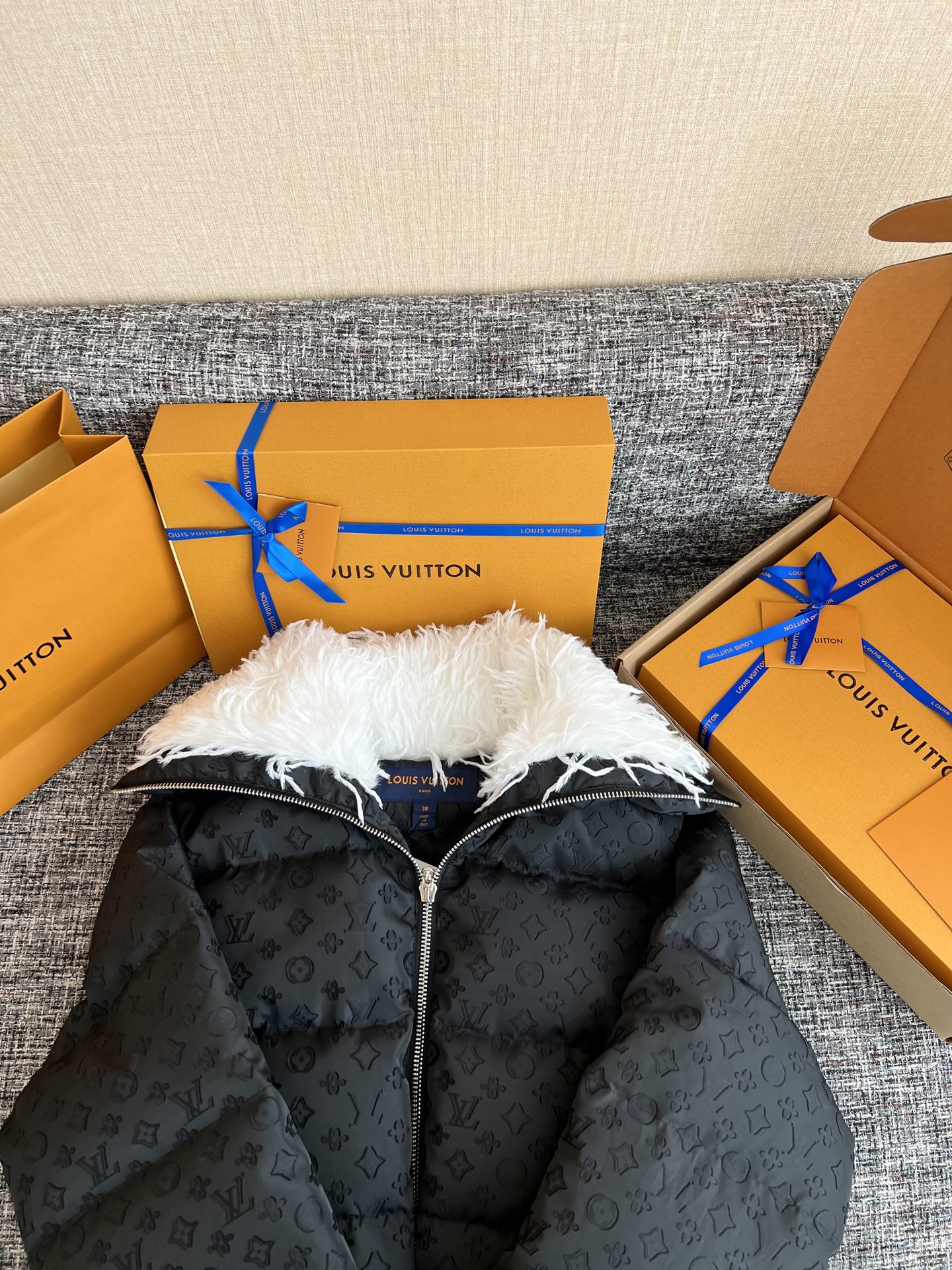 Louis Vuitton25秋冬新款羽毛领羽绒服🐮34500购买Zp拆解打造,订织订染三防梭织面料🐮 真正用到100%跟原版材料对版出货💪工艺放大看细节除还原度接近98以上 做工也无敌了🔥真正做到1:1还原 直接闭着眼购买👀码数:S M L