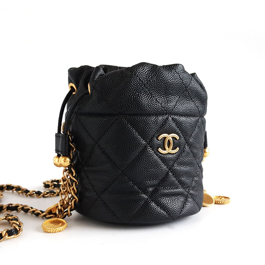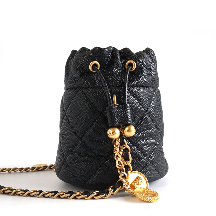 款式 | 23C黑金荔枝牛皮金币链条小水桶单肩包 |