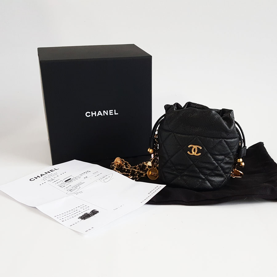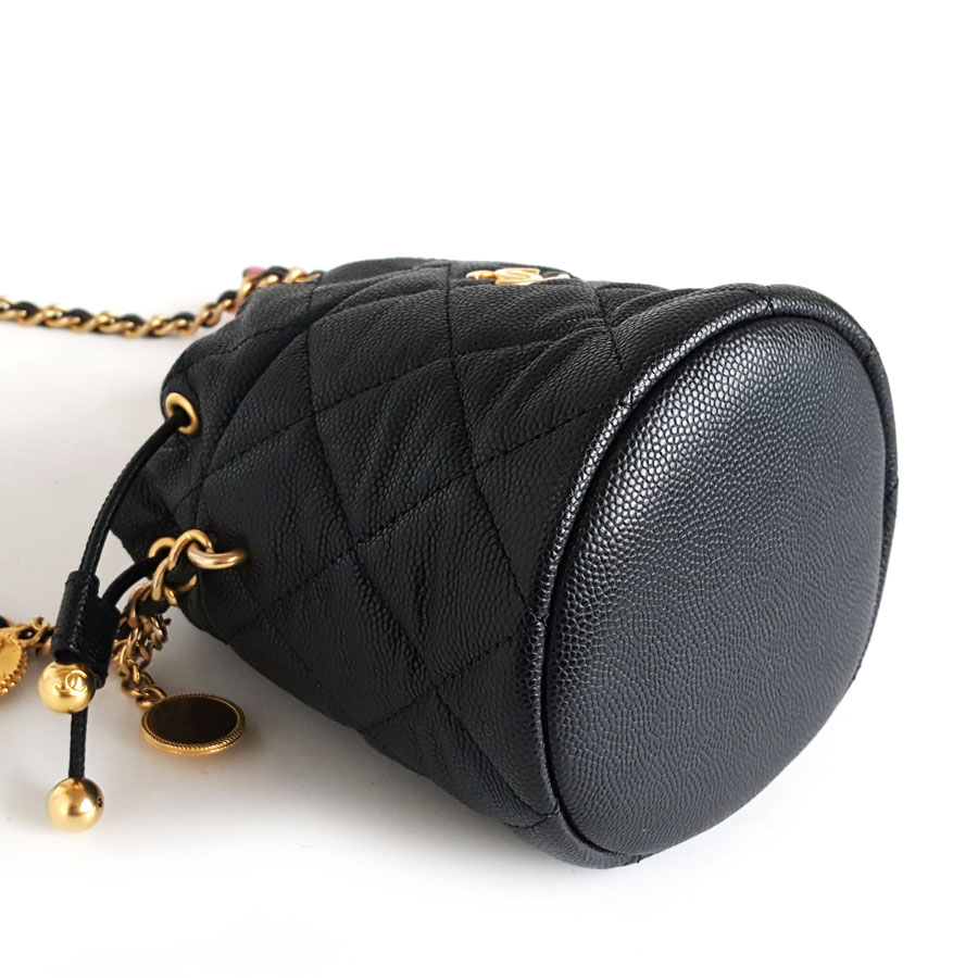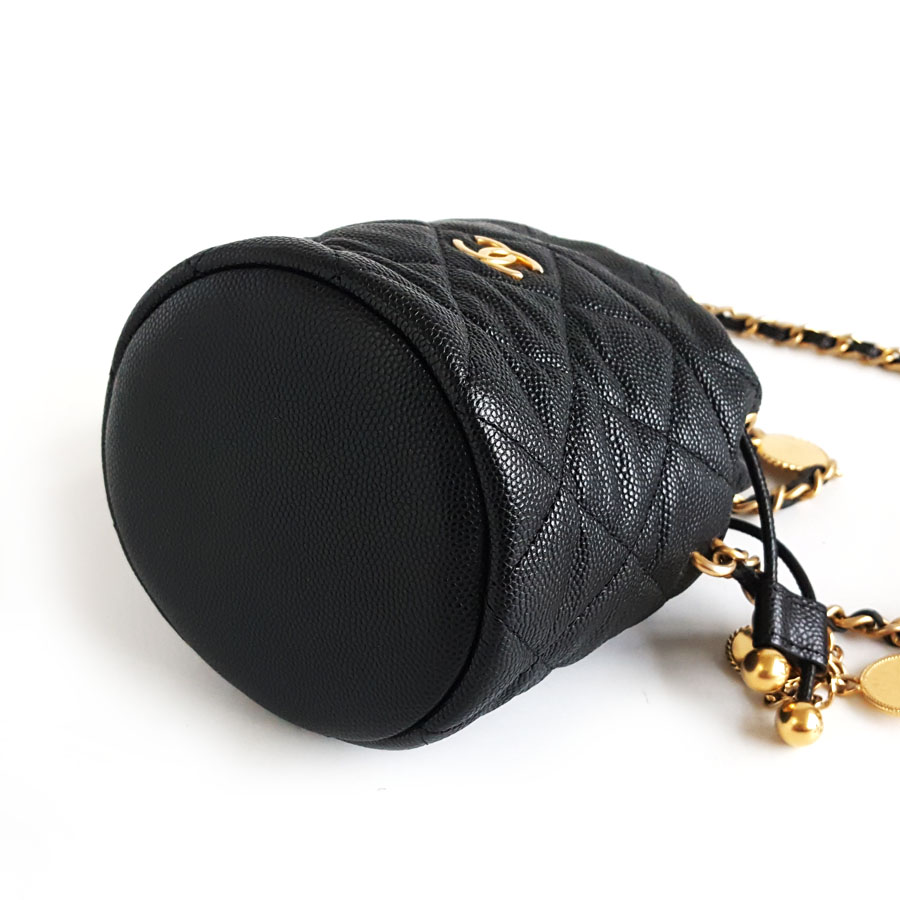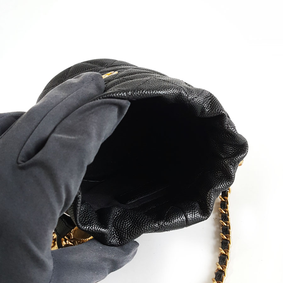 【95新】CHANEL香奈儿AP3111 B09805 9430523C黑金荔枝牛皮金币链条小水桶单肩包女士140326JJ13