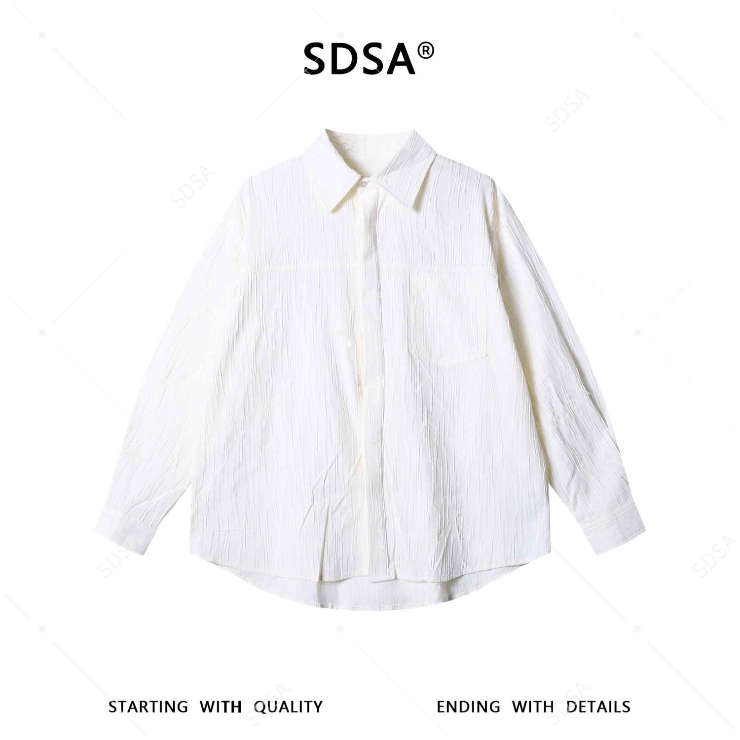 SDSA男装2026新款高贵轻奢韩系时尚褶皱舒适长袖衬衫百搭休闲上衣