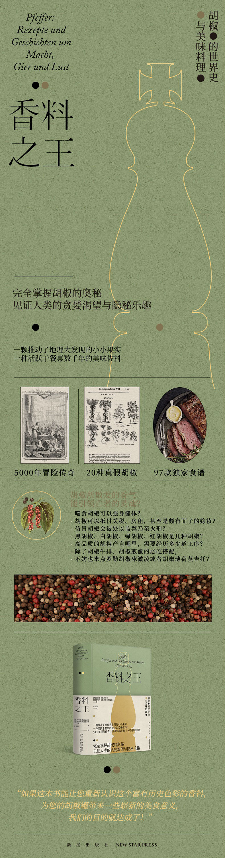 “如果这本书能让您重新认识这个富有历史色彩的香料,为您的胡椒罐带来一些崭新的美食意义,我们的目的就达成了!”