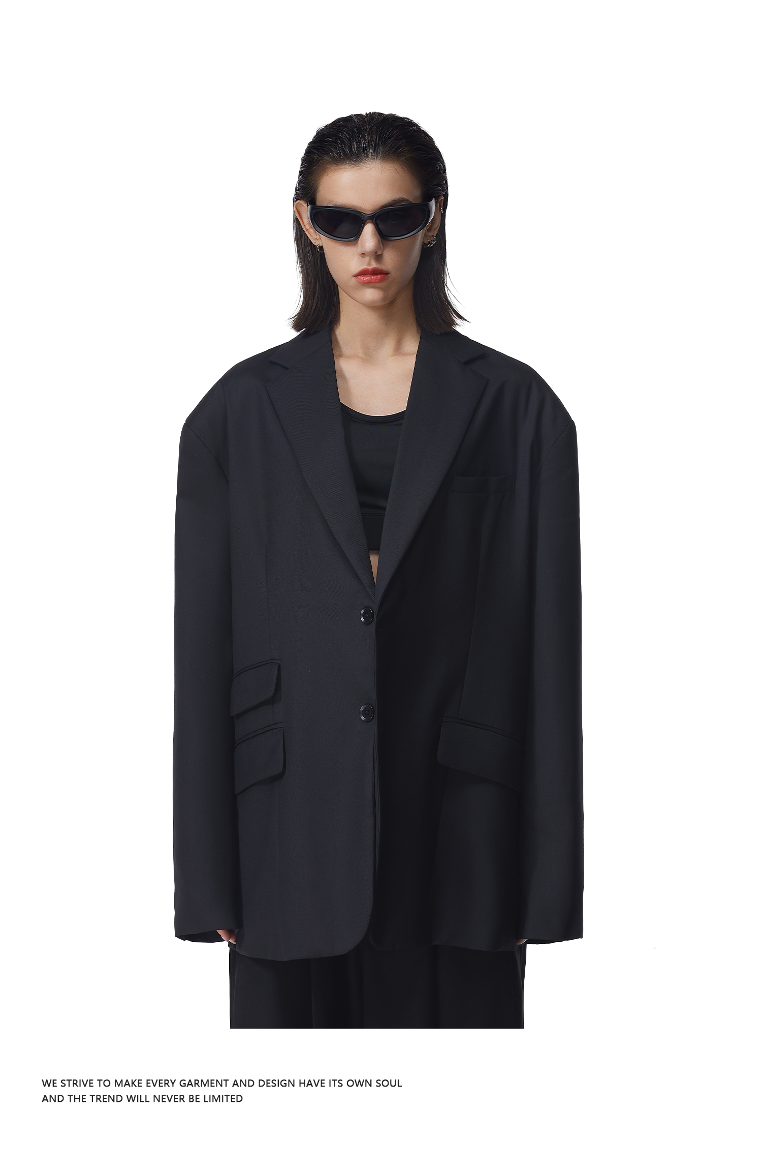 FDR官方店 廓形西装外套男女秋季黑色翻领宽松西服上衣