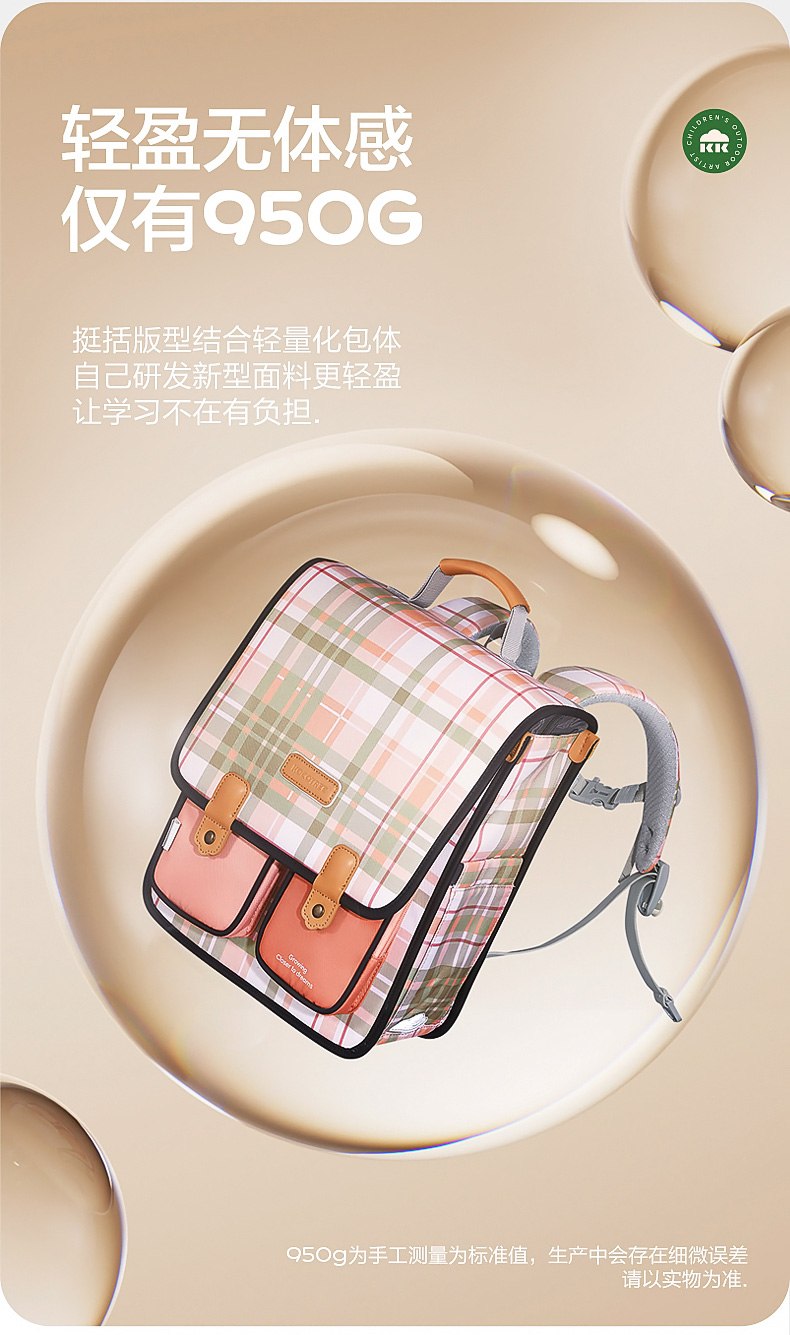 【7】盖片磁吸扣开放型书包,取放便捷。
