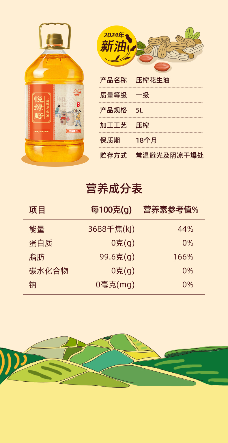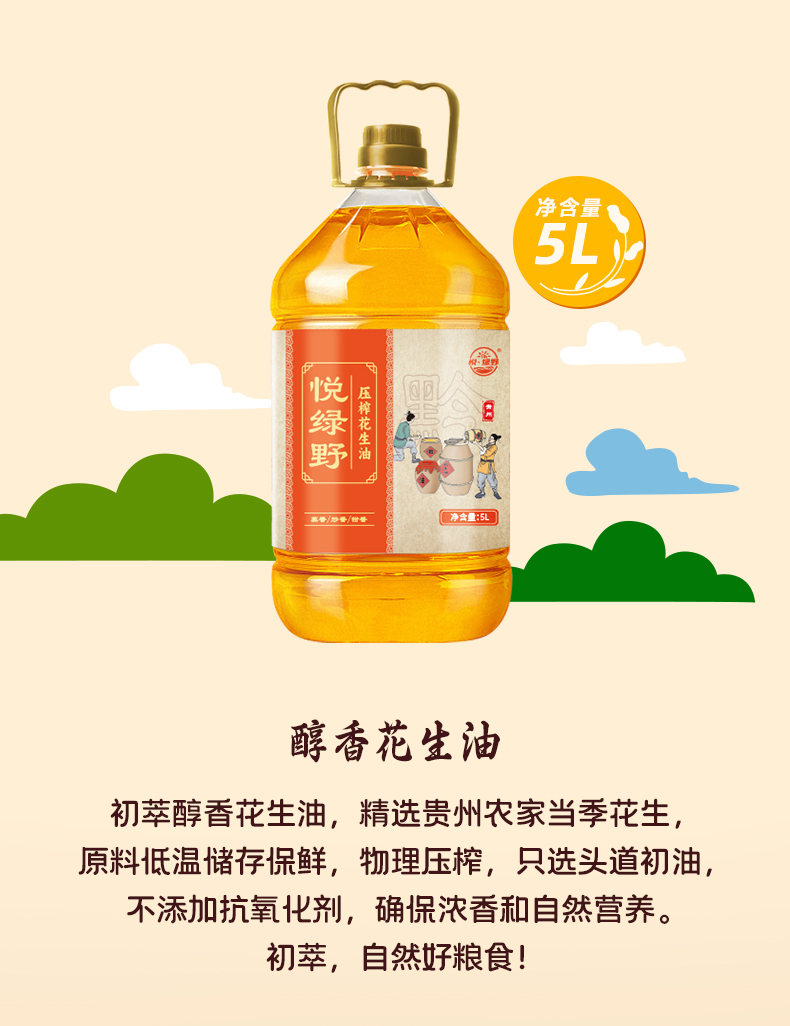 贵州省惠水县悦绿野一级古法压榨花生油5L/桶