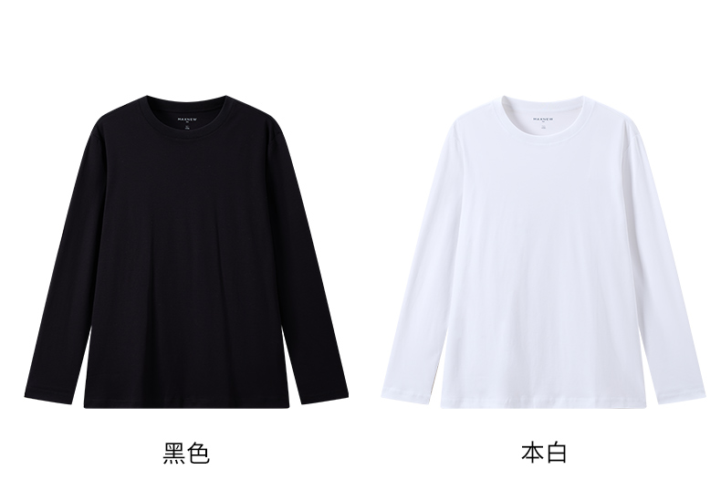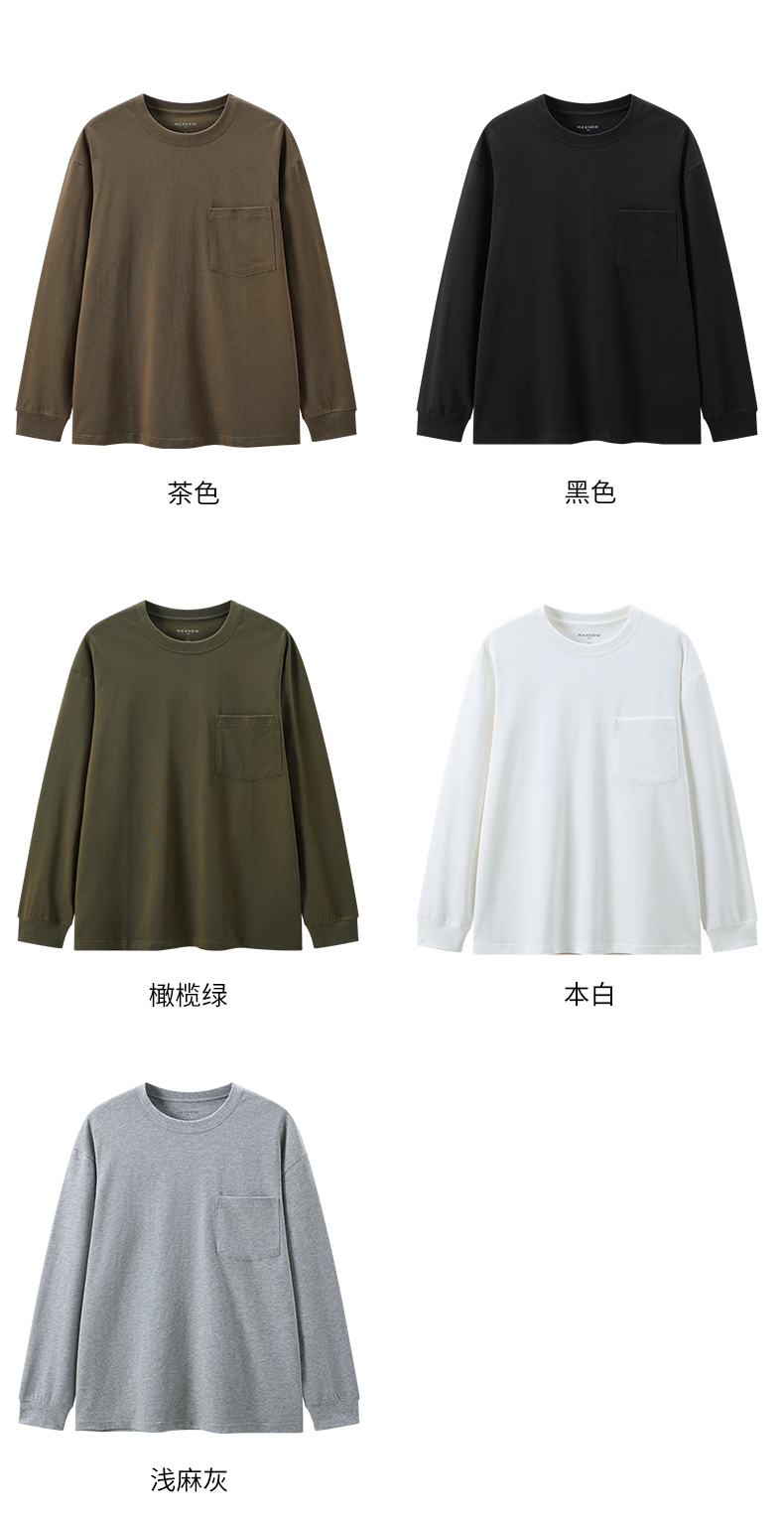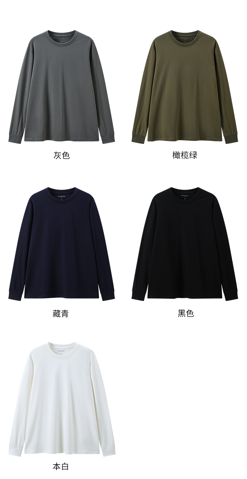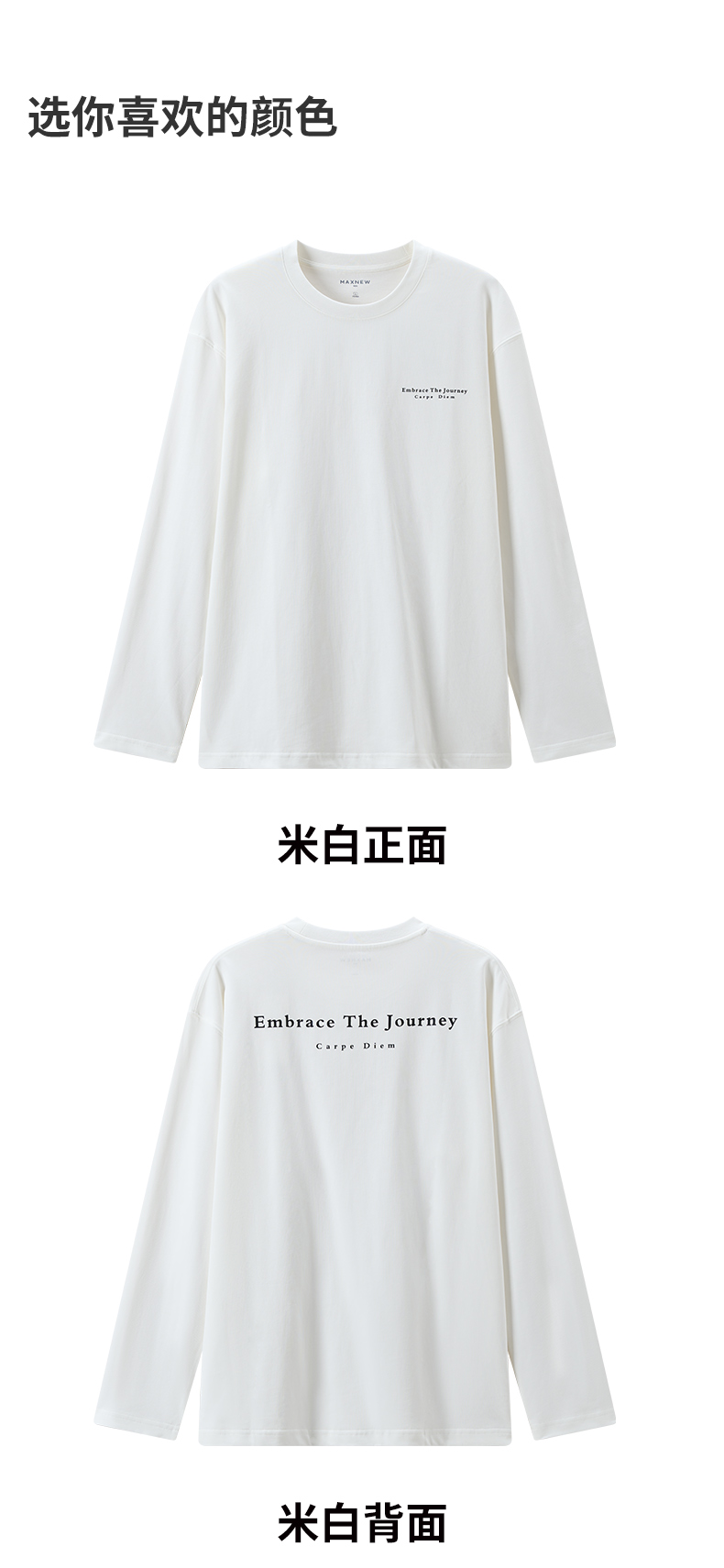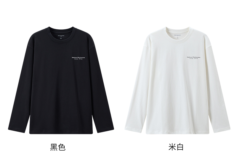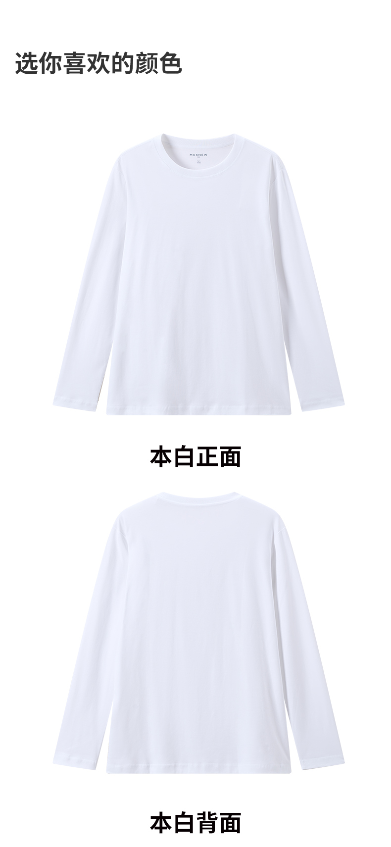 马恩MAXNEW2025秋季新款纯色t恤男式宽松重磅上衣纯棉白打底长袖