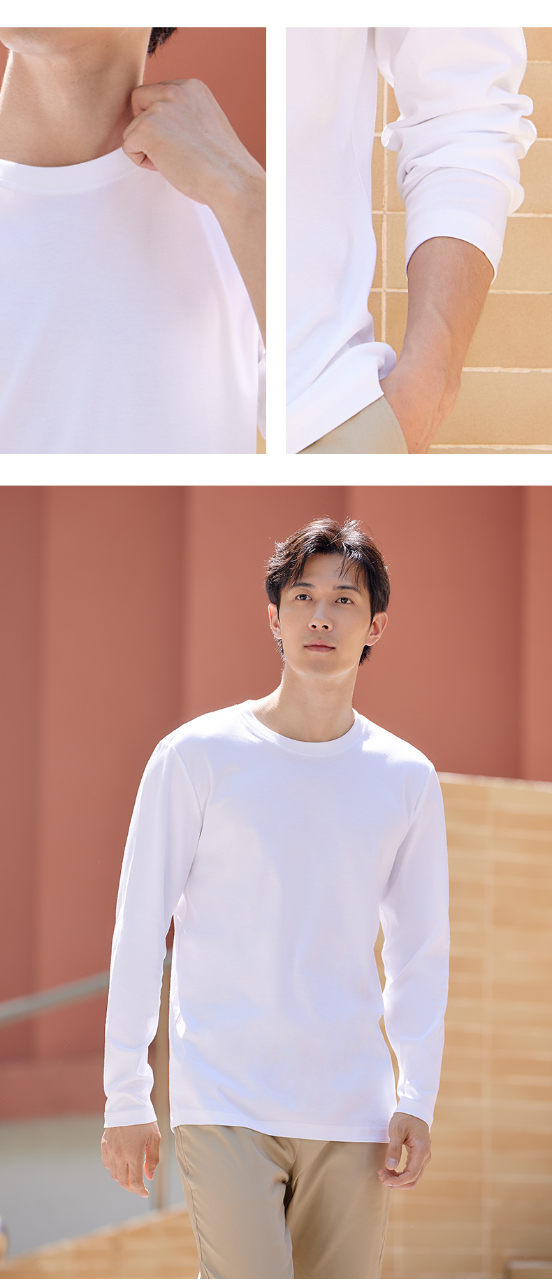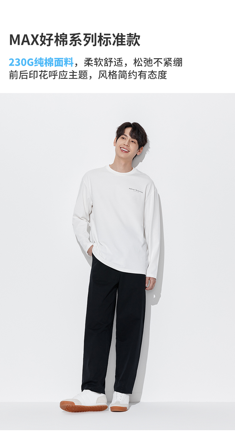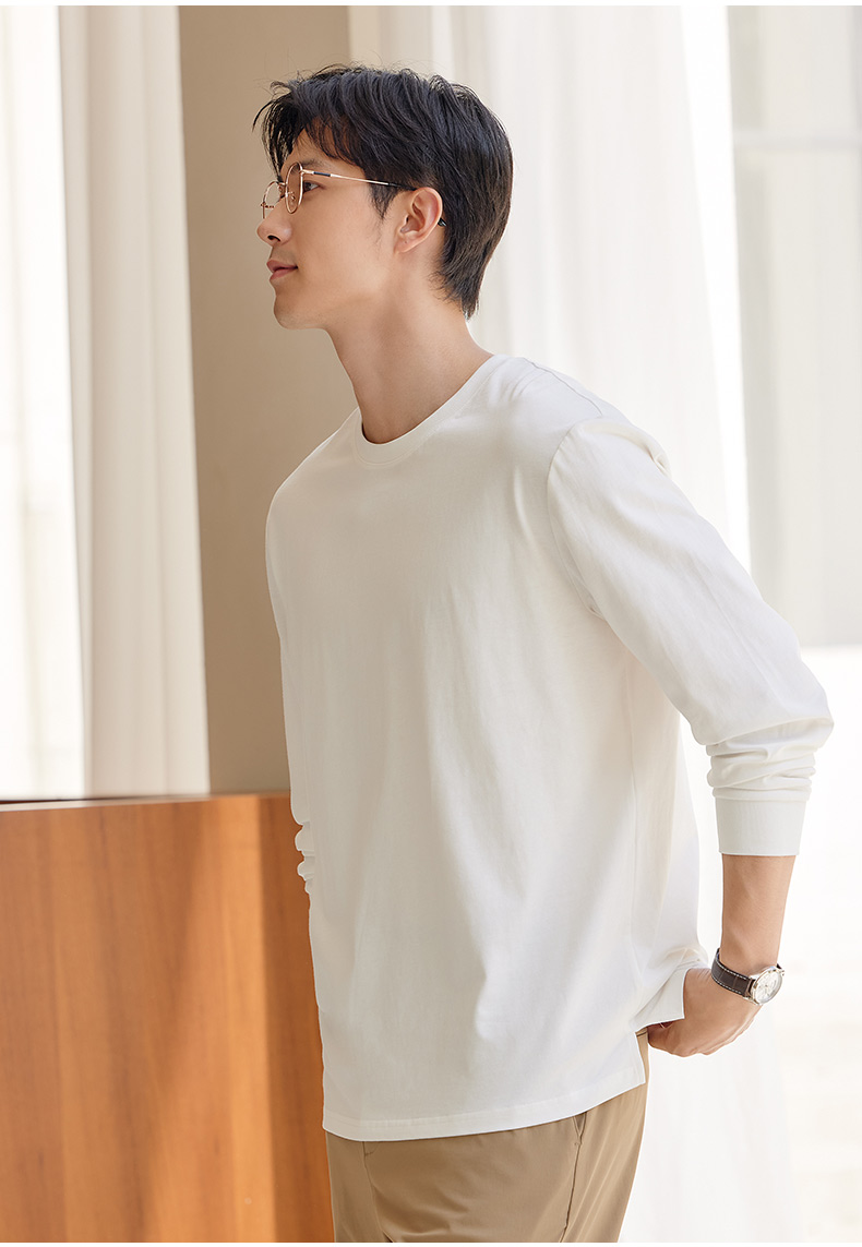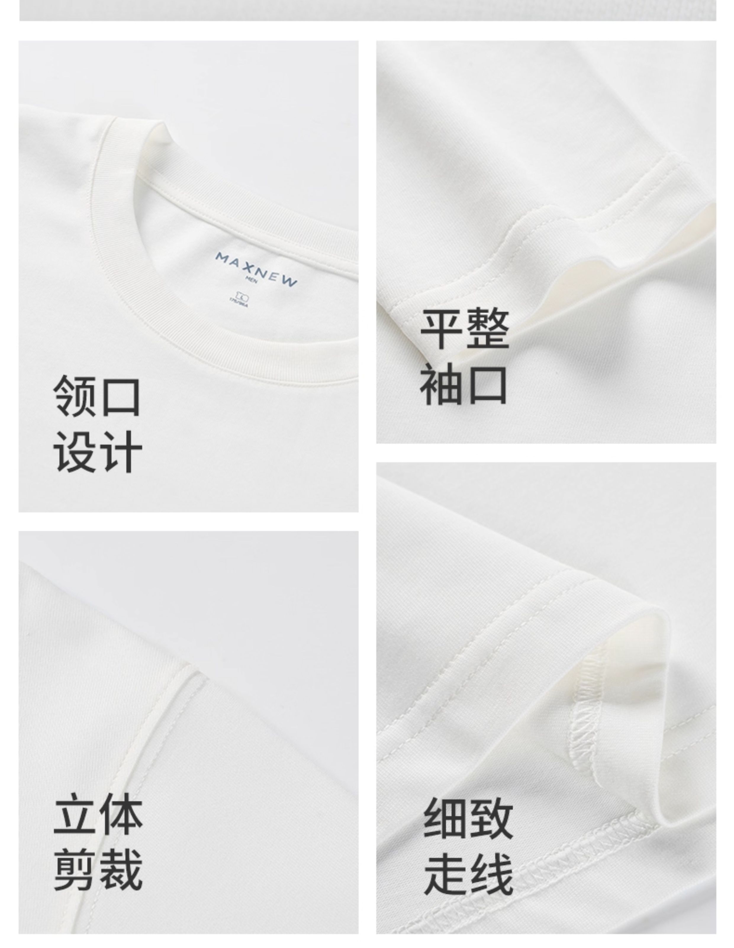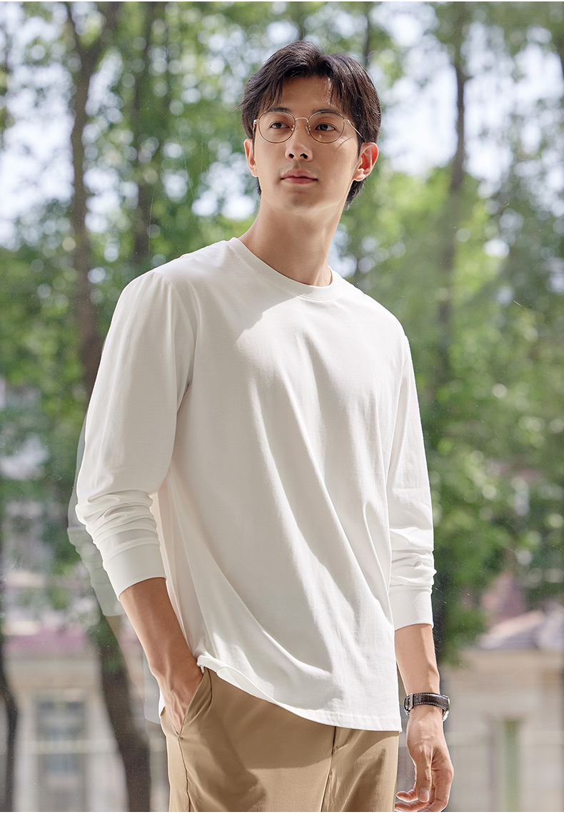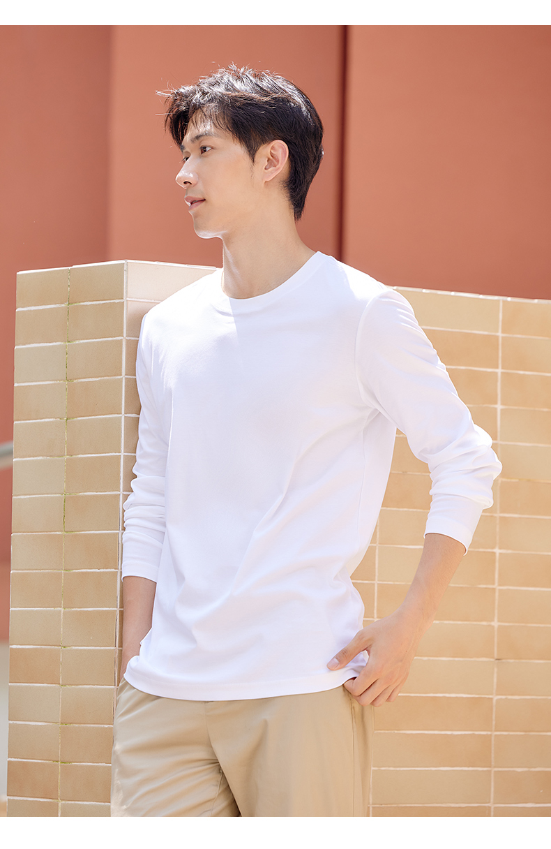 马恩MAXNEW2025秋季新款纯色t恤男式宽松重磅上衣纯棉白打底长袖