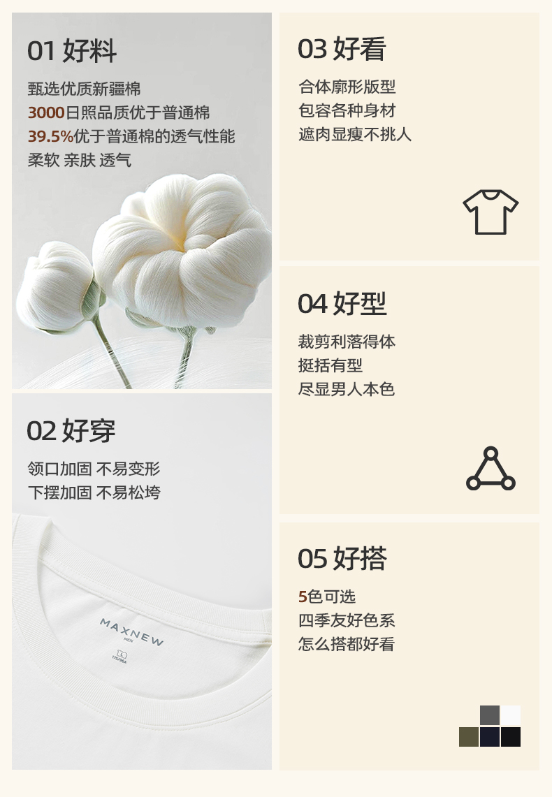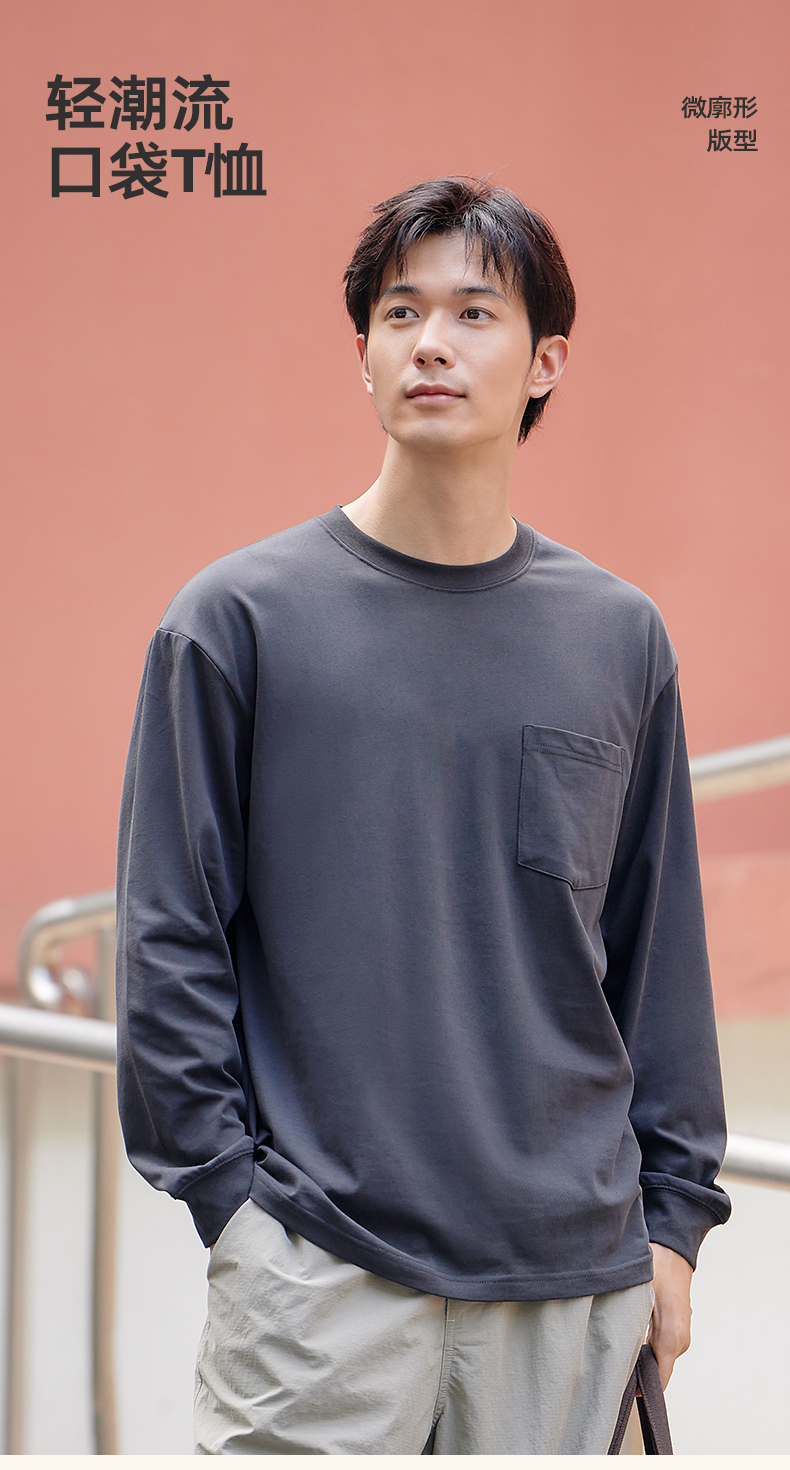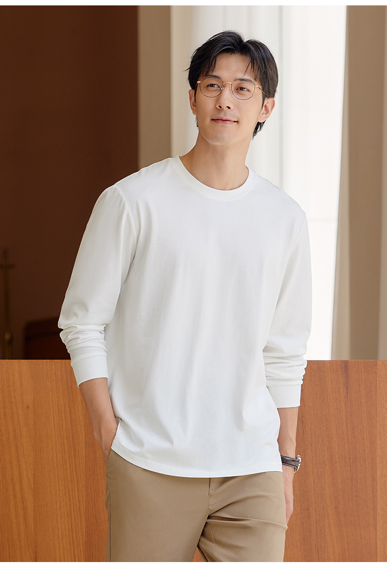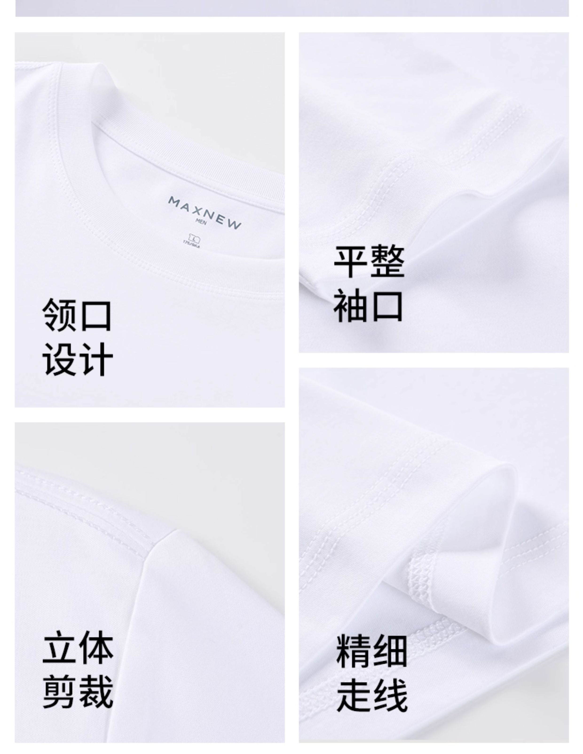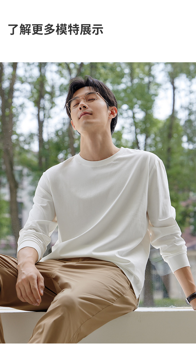 马恩MAXNEW2025秋季新款纯色t恤男式宽松重磅上衣纯棉白打底长袖