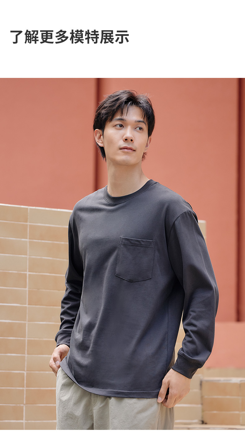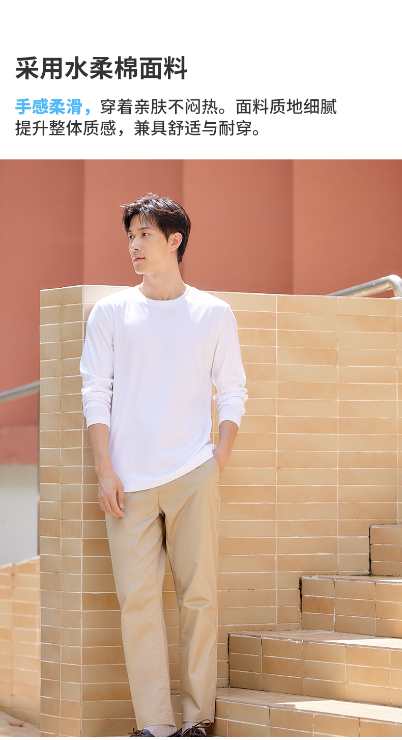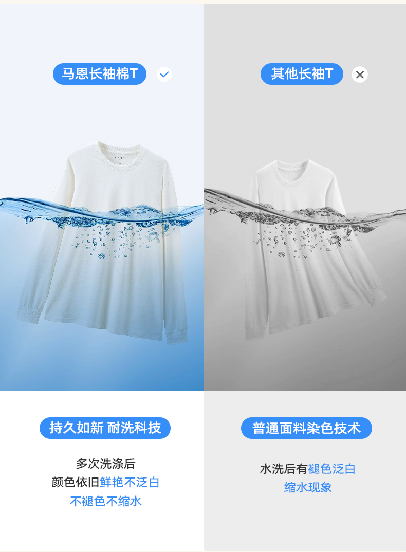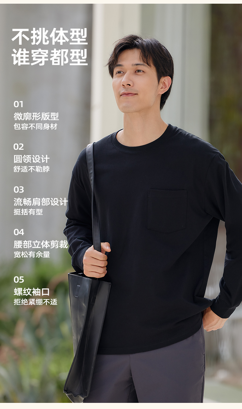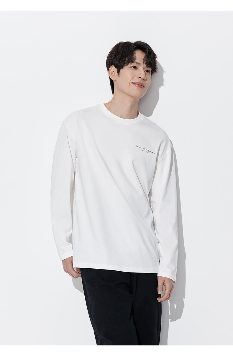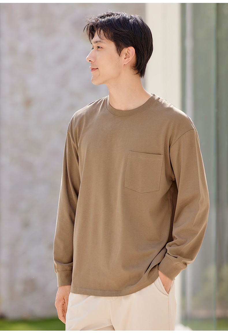 马恩MAXNEW2025秋季新款纯色t恤男式宽松重磅上衣纯棉白打底长袖