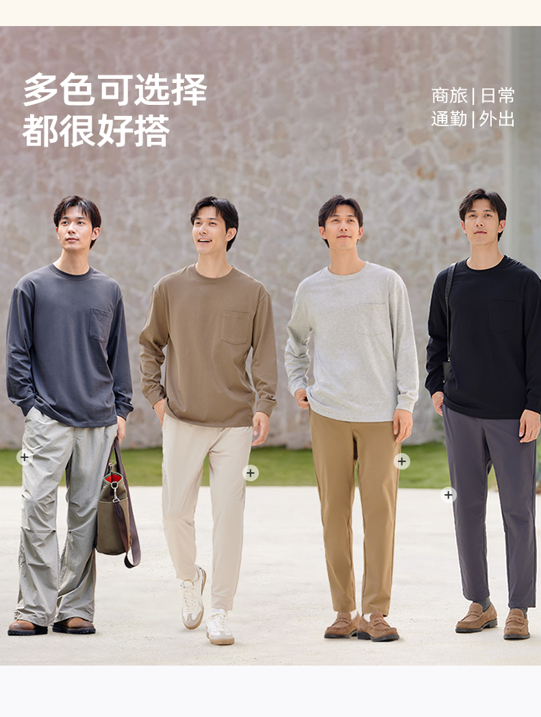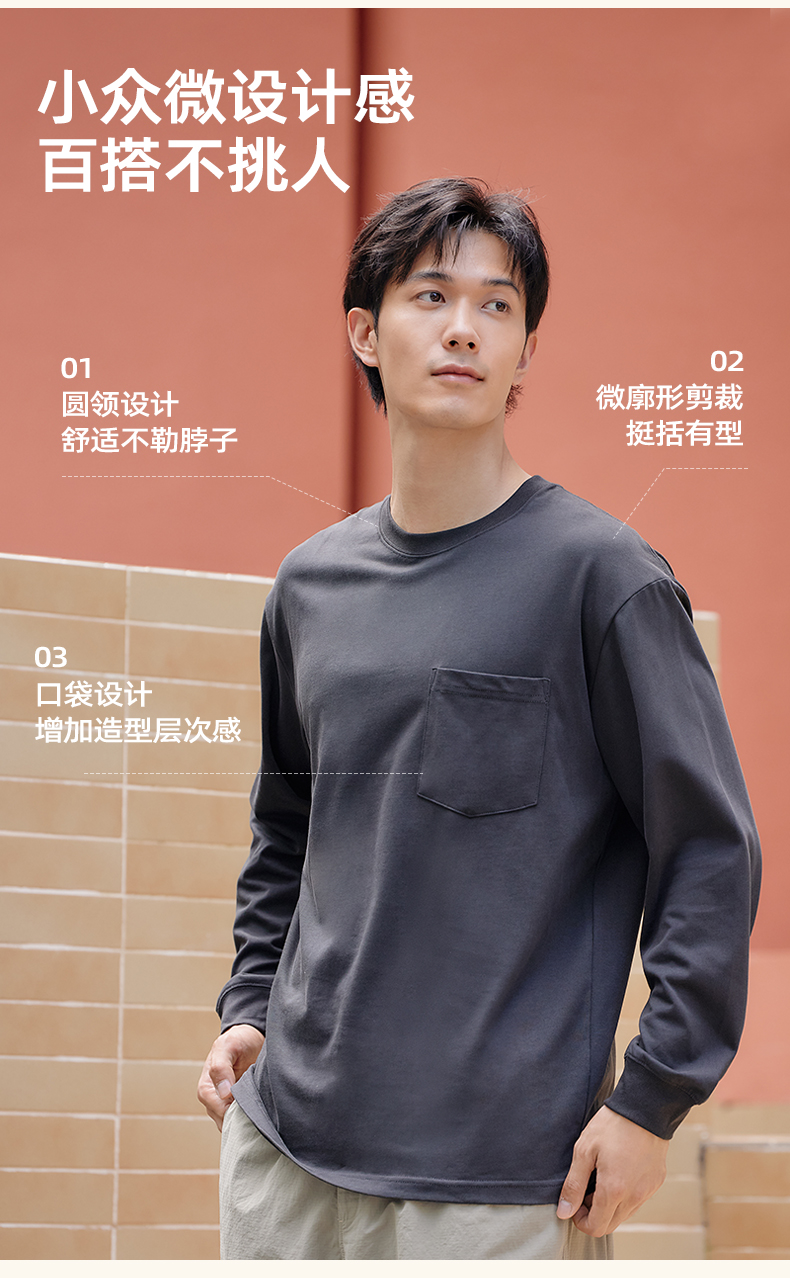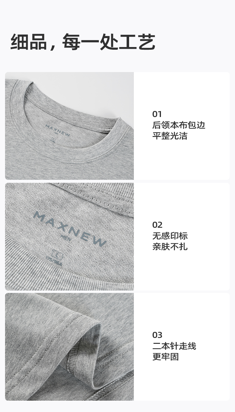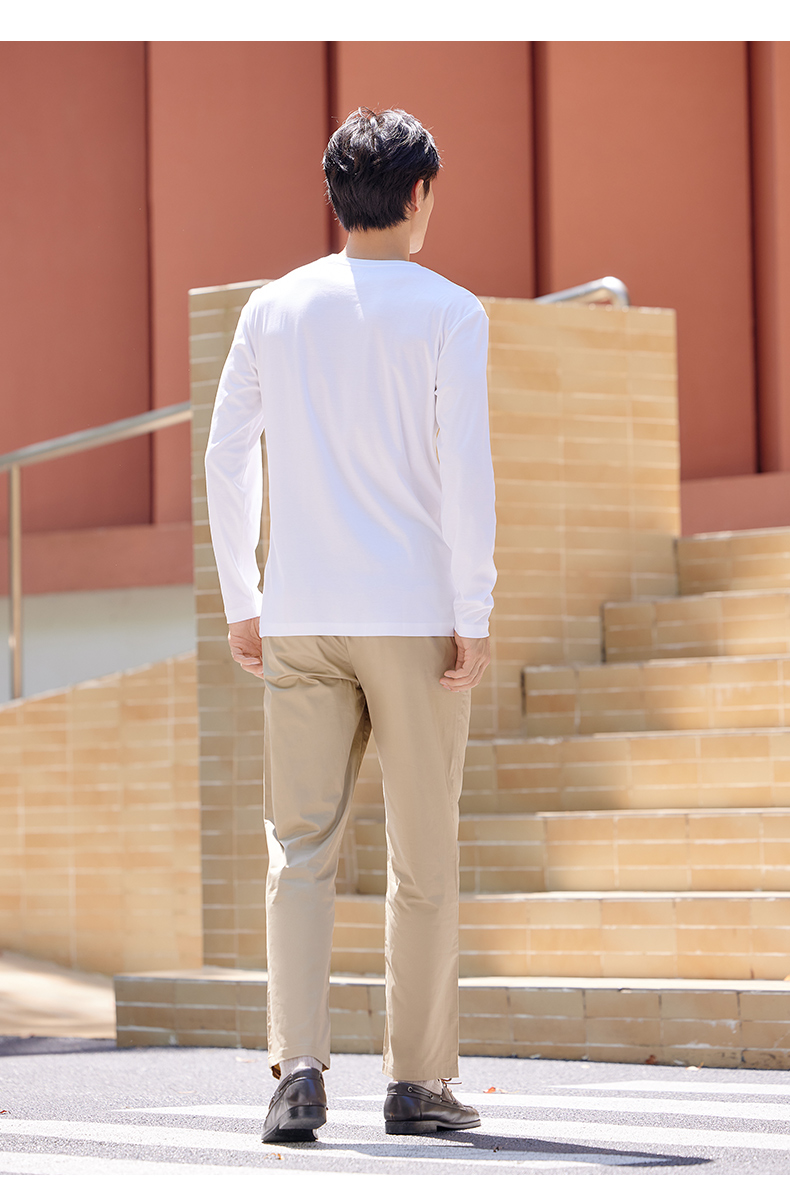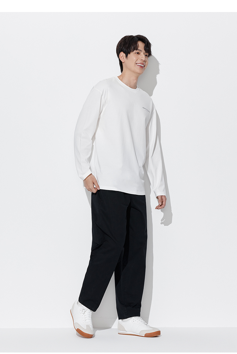 马恩MAXNEW2025秋季新款纯色t恤男式宽松重磅上衣纯棉白打底长袖
