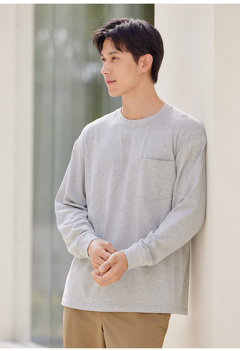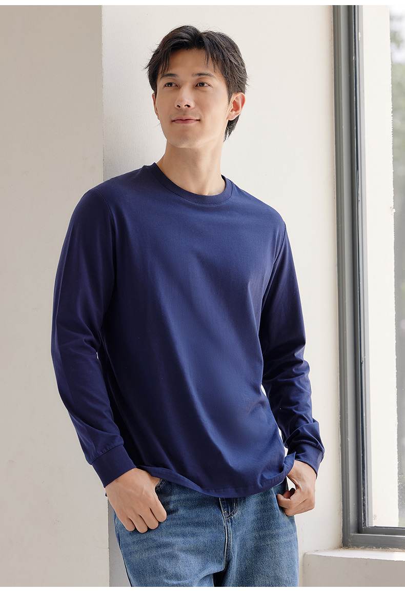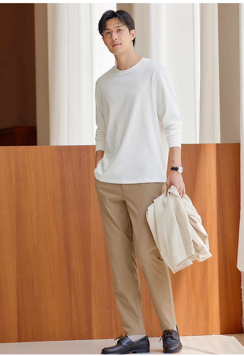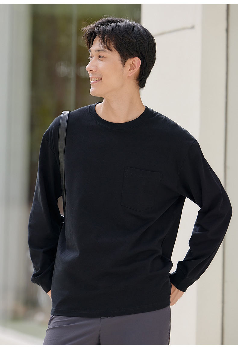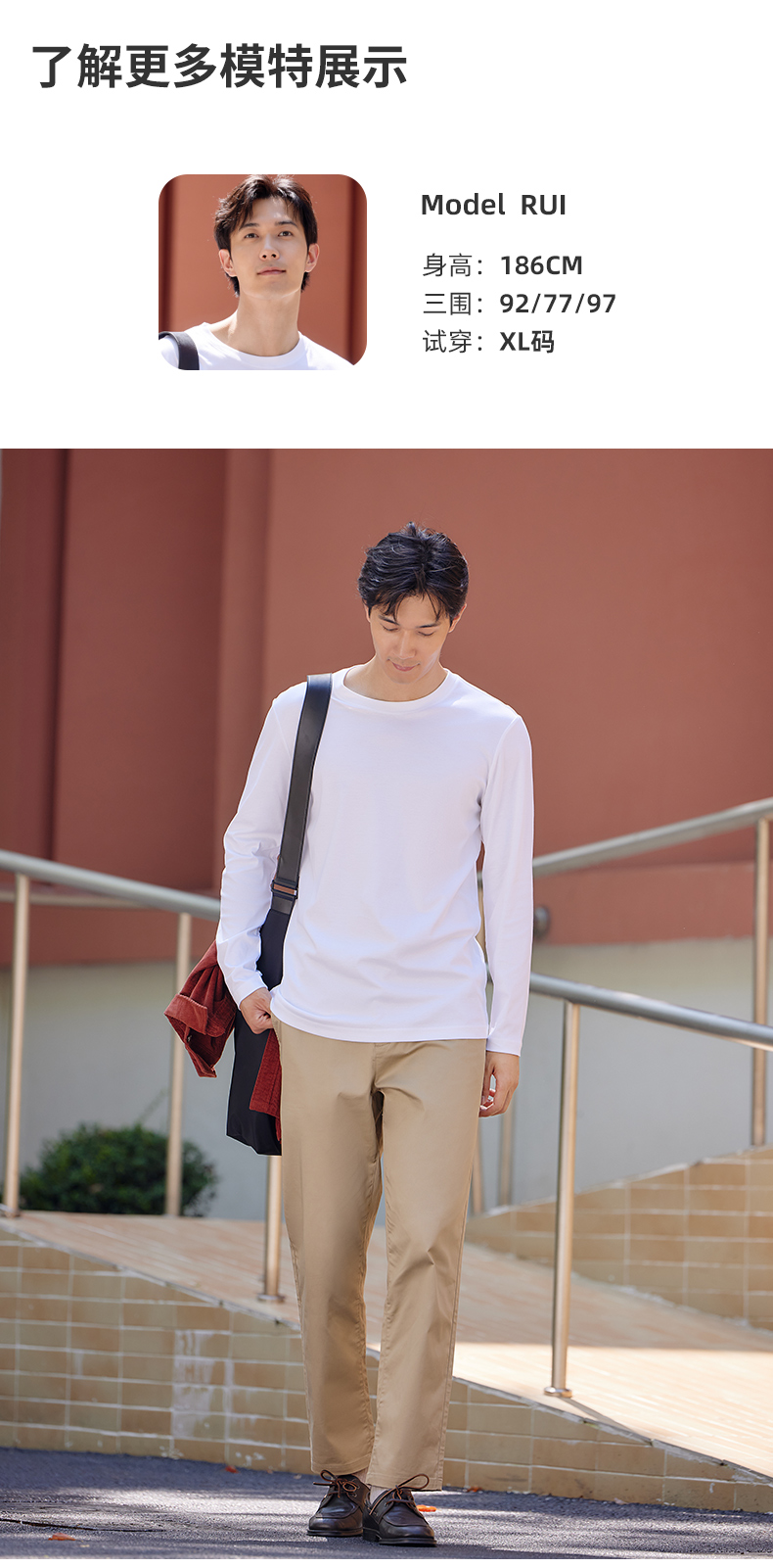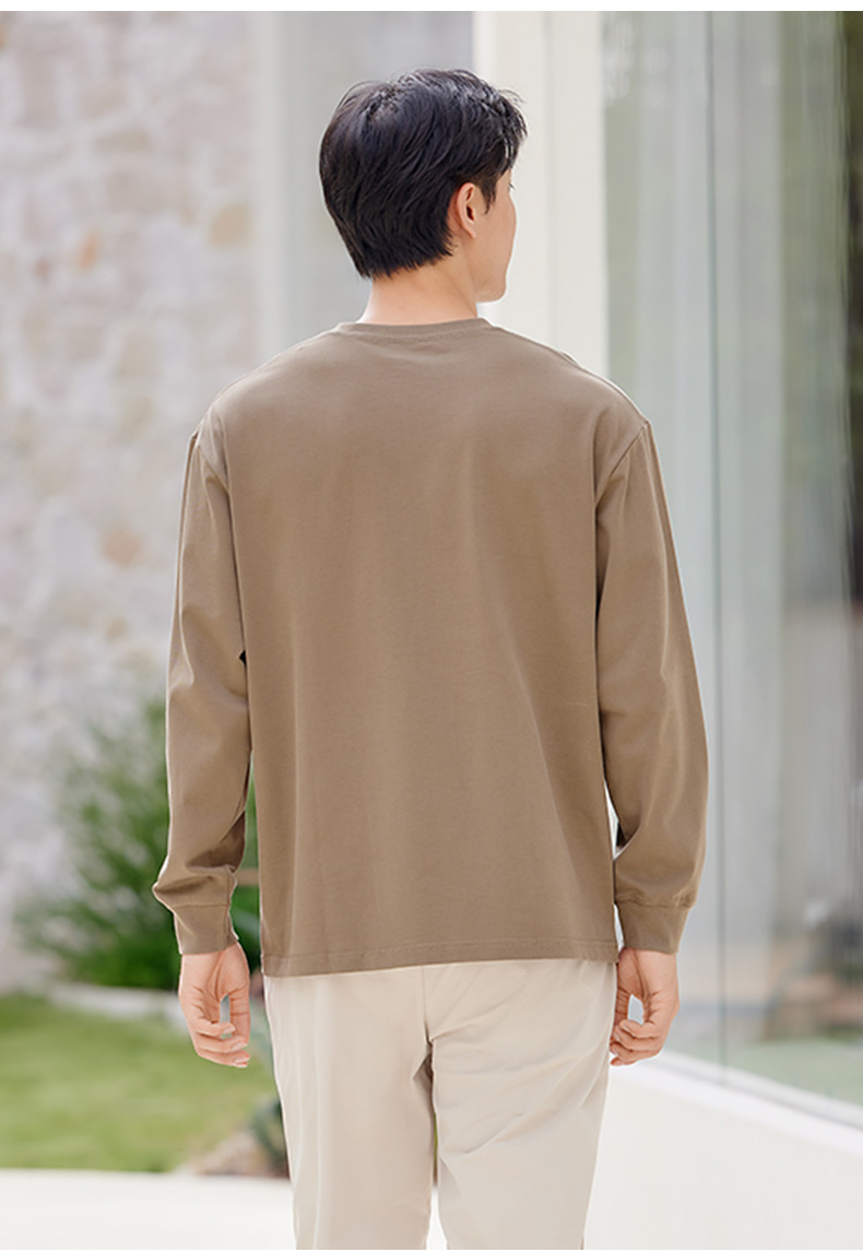 马恩MAXNEW2025秋季新款纯色t恤男式宽松重磅上衣纯棉白打底长袖