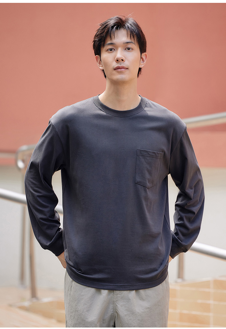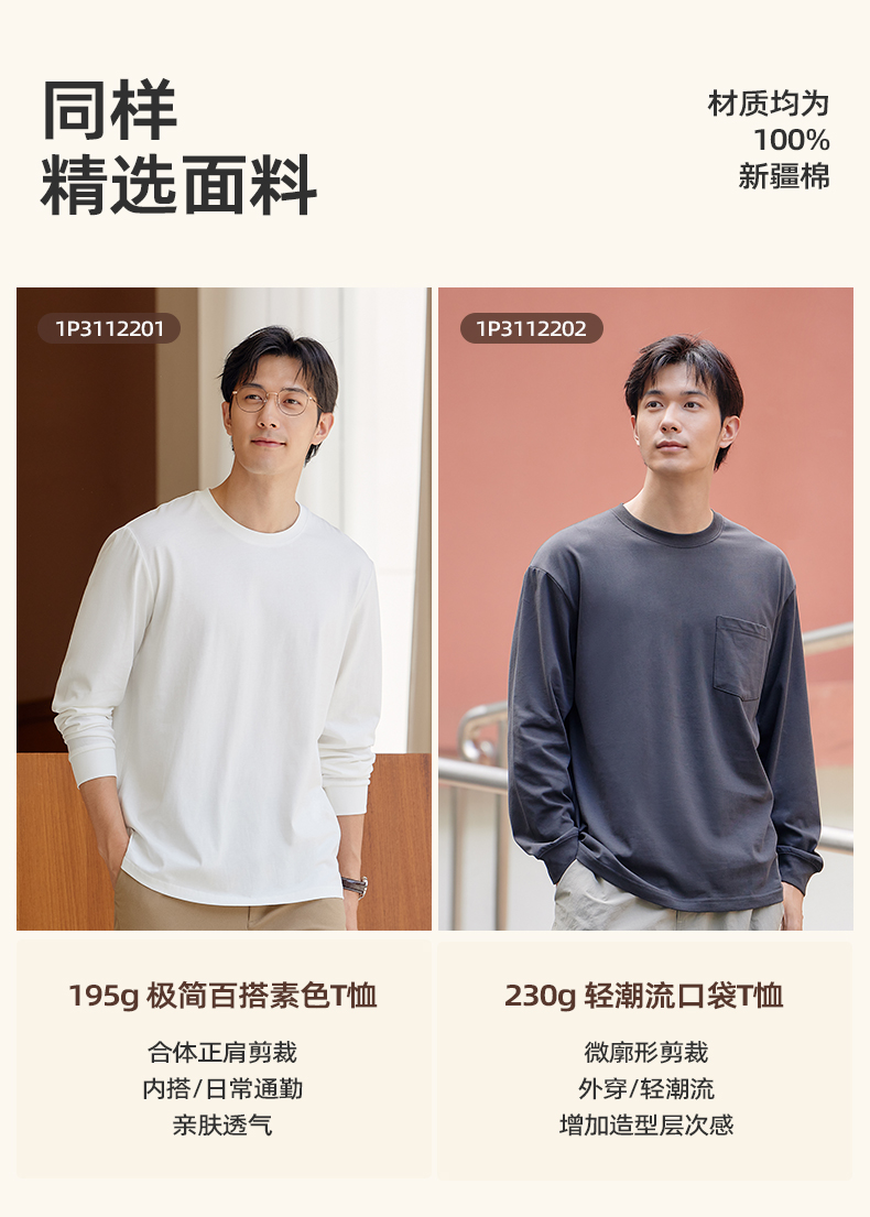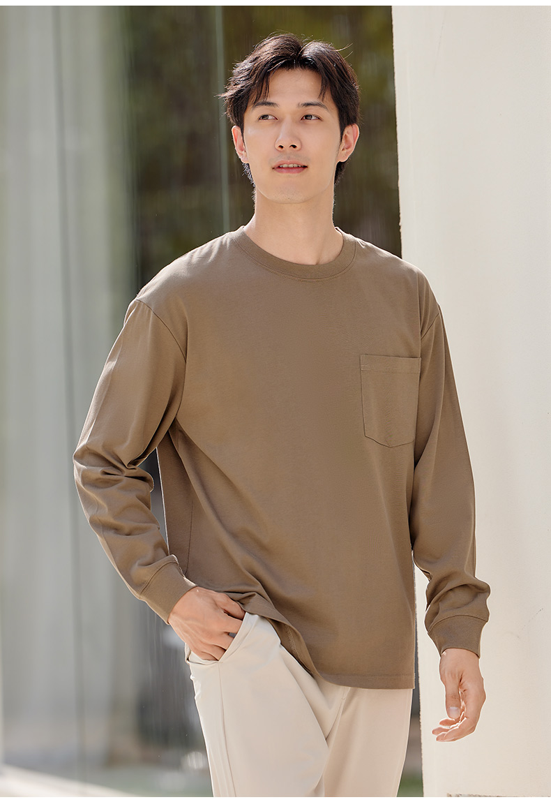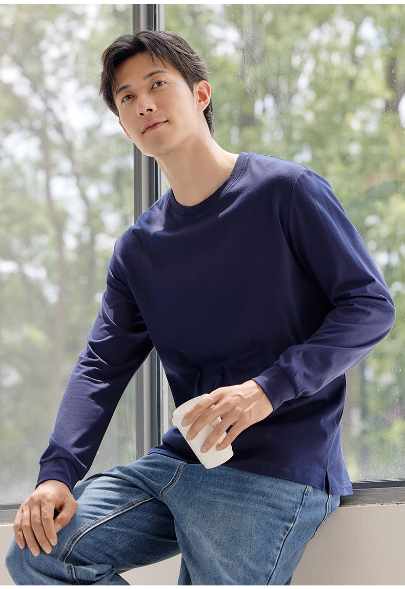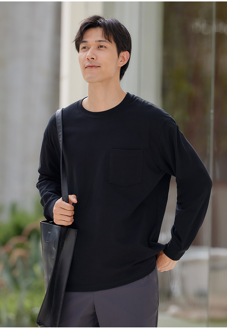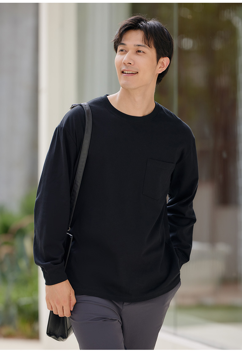 马恩MAXNEW2025秋季新款纯色t恤男式宽松重磅上衣纯棉白打底长袖
