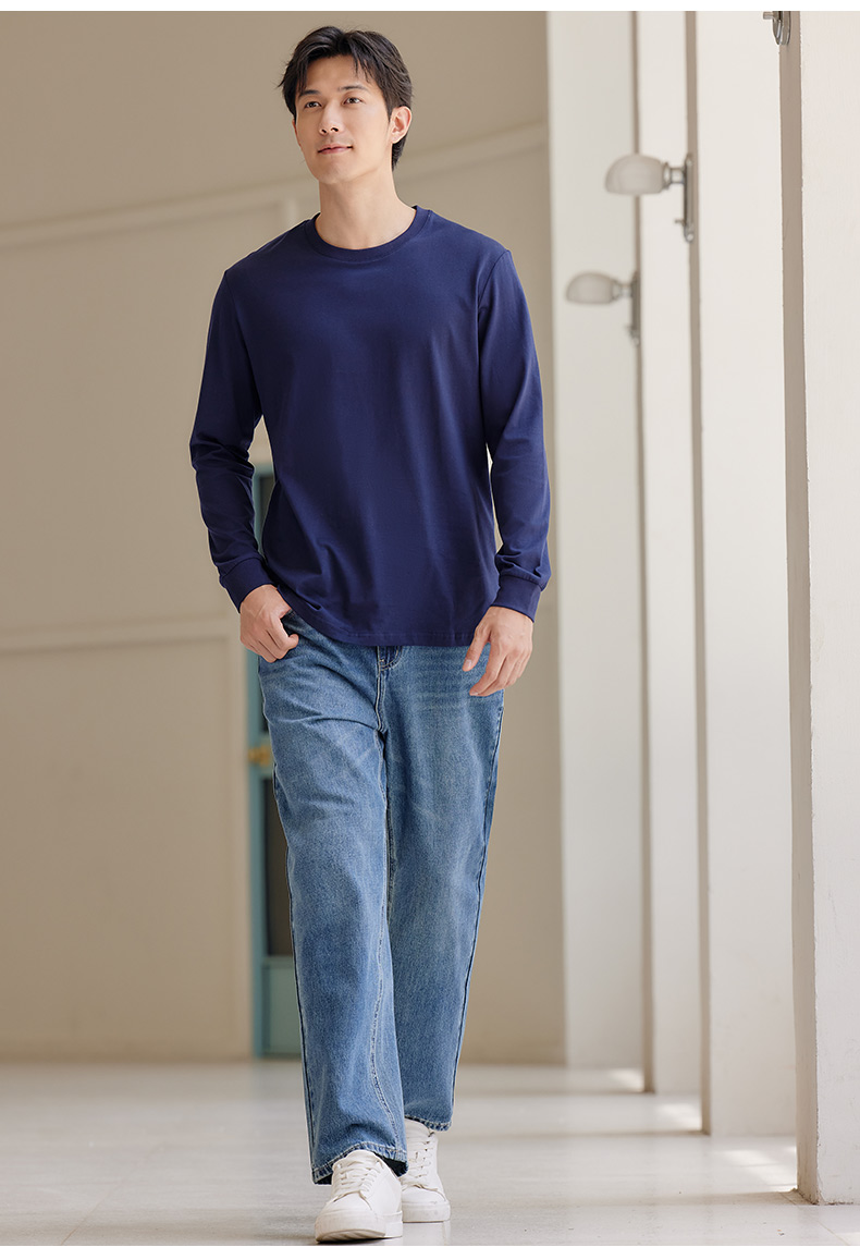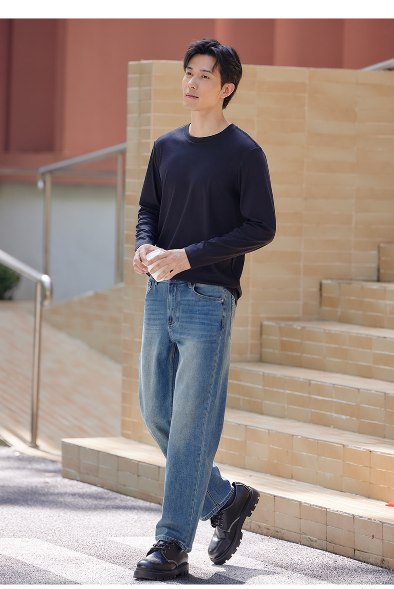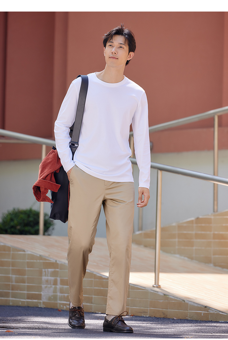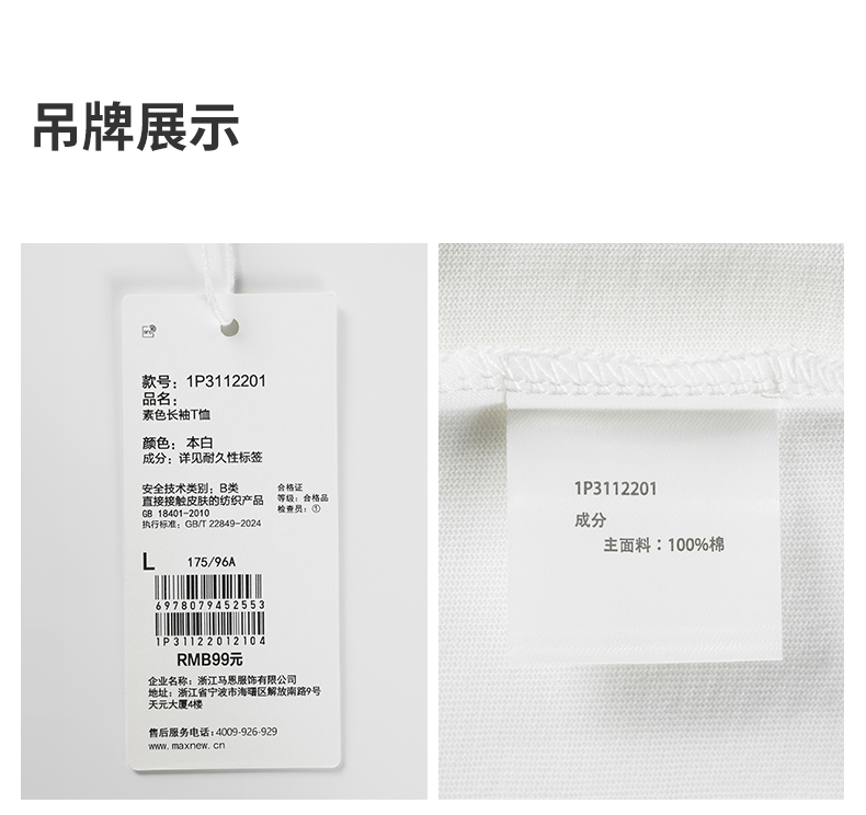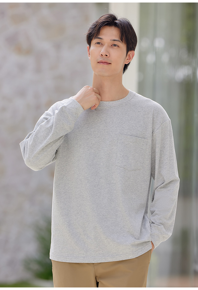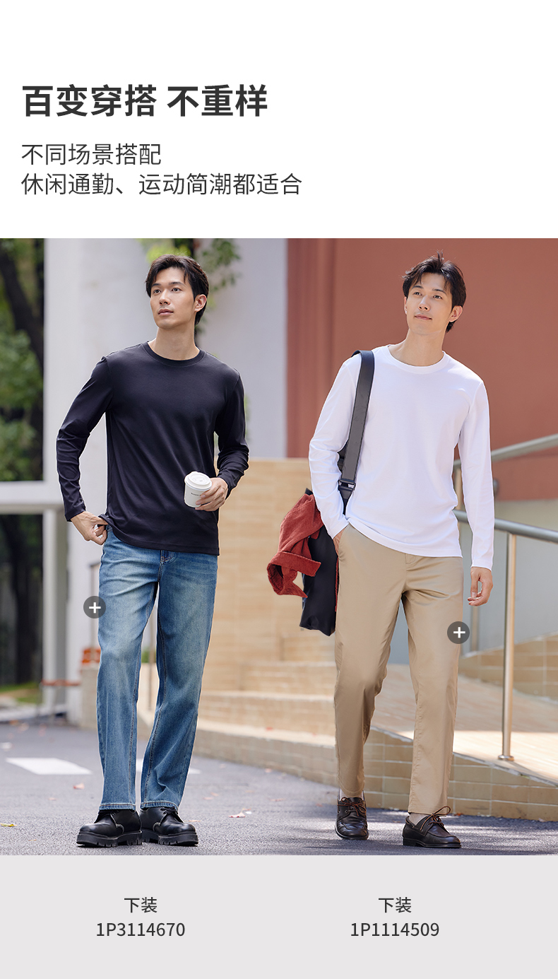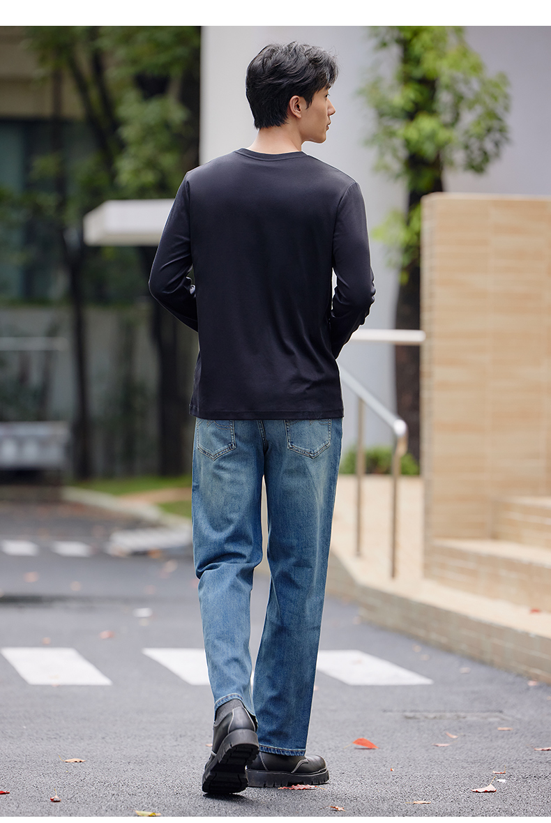 马恩MAXNEW2025秋季新款纯色t恤男式宽松重磅上衣纯棉白打底长袖