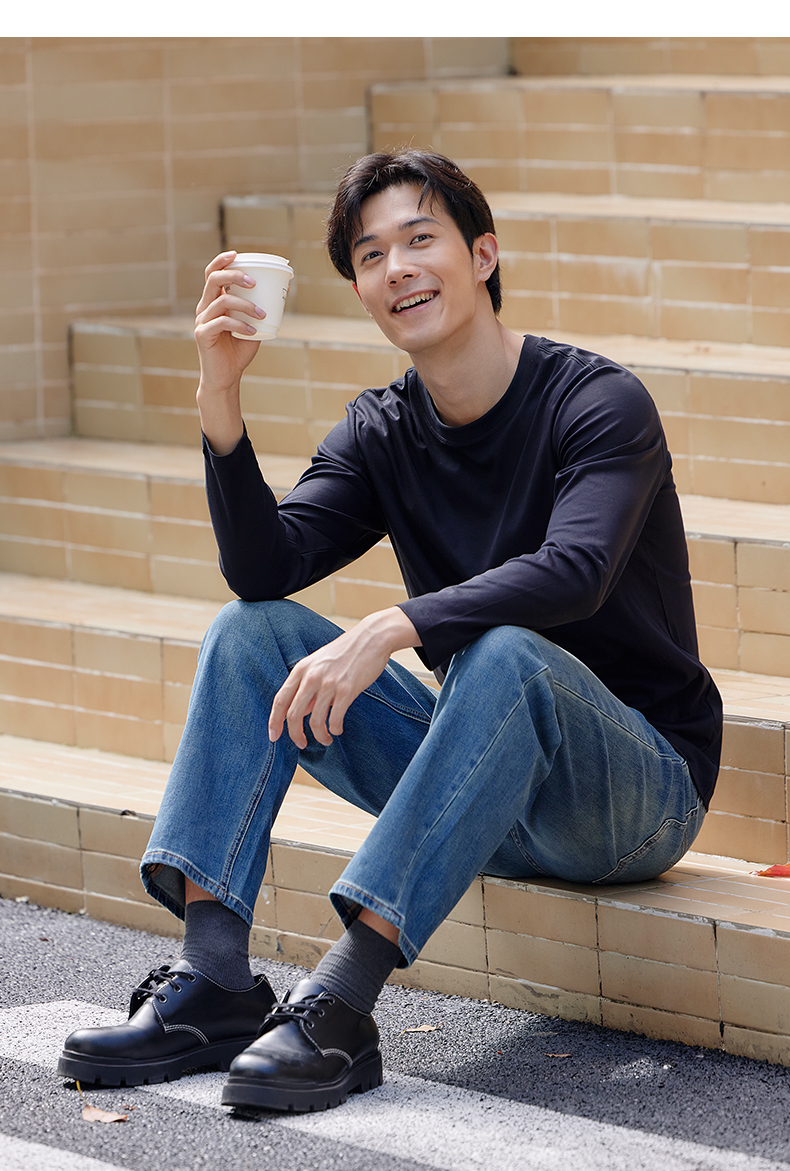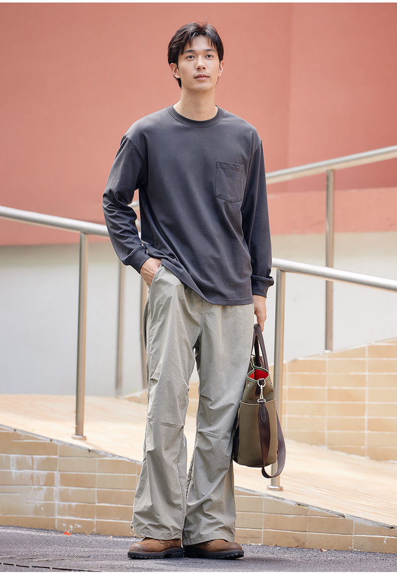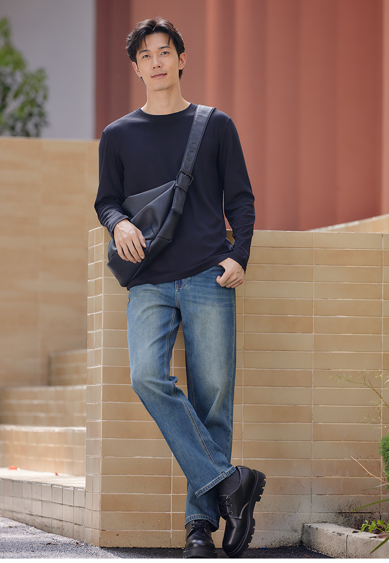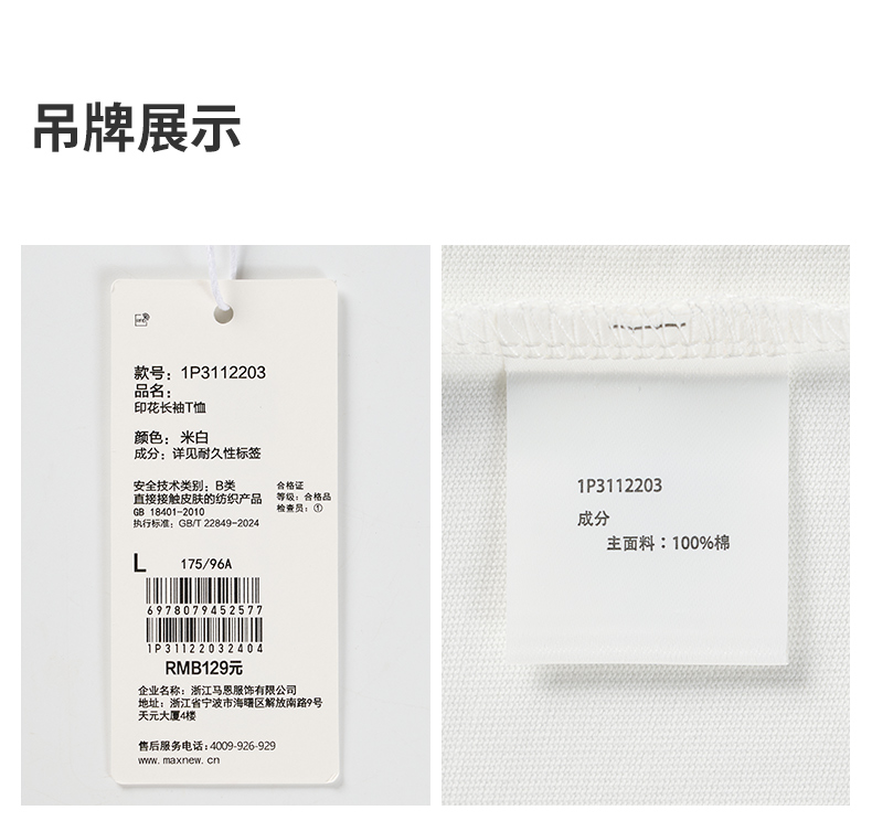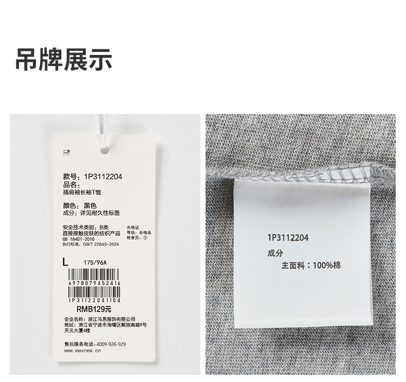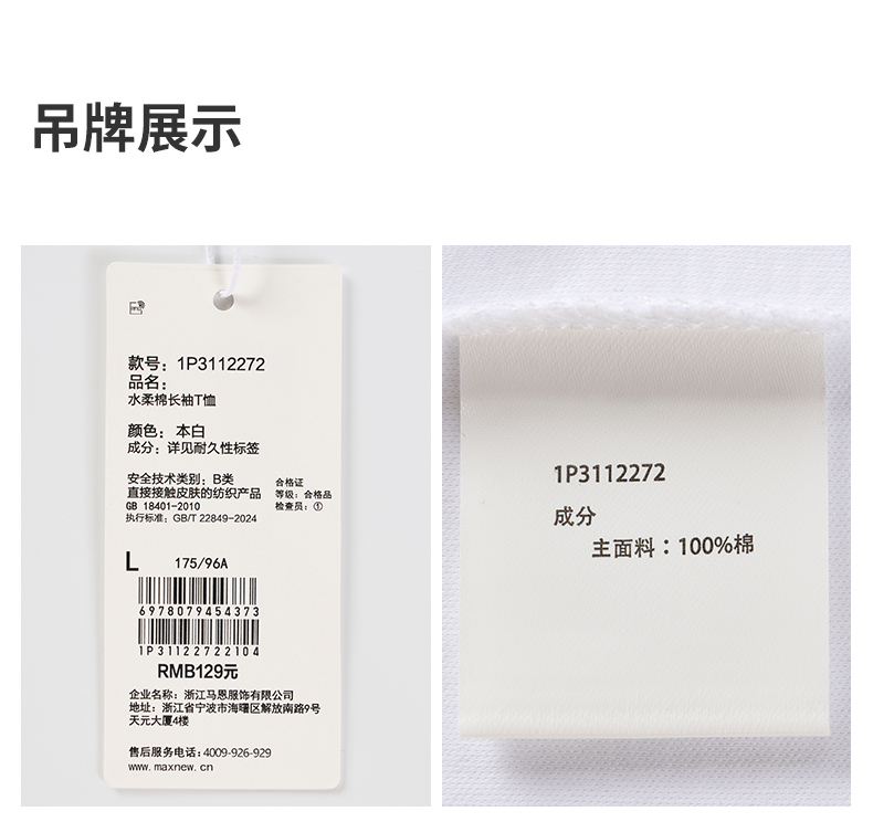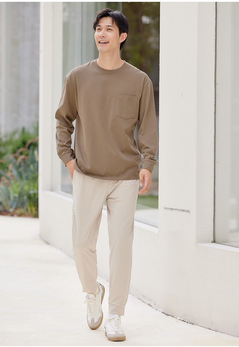 马恩MAXNEW2025秋季新款纯色t恤男式宽松重磅上衣纯棉白打底长袖