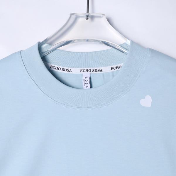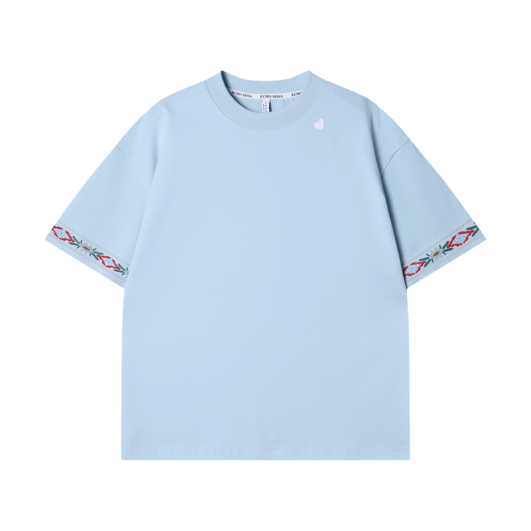 6690早春新款时尚个性重工刺绣袖边爱心印花圆领短袖T恤百搭休闲上衣