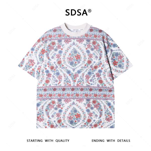 T3997夏季高级感新款男士韩系满印多彩花卉短袖T恤时尚简约圆领上衣