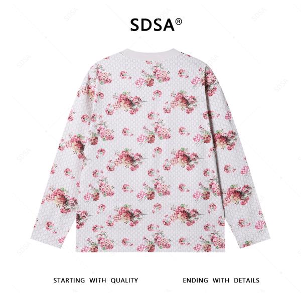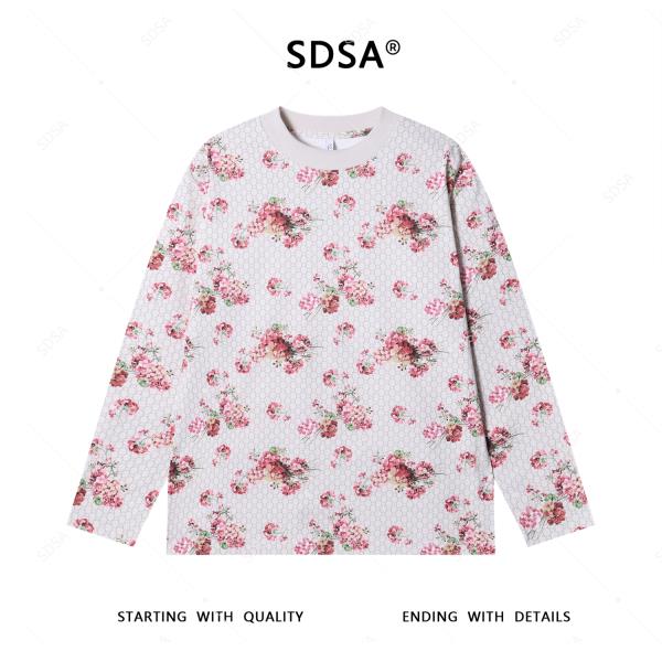 T4693SDSA男士秋冬新款轻奢痞帅男装潮牌植物花卉印花长袖T恤圆领宽松