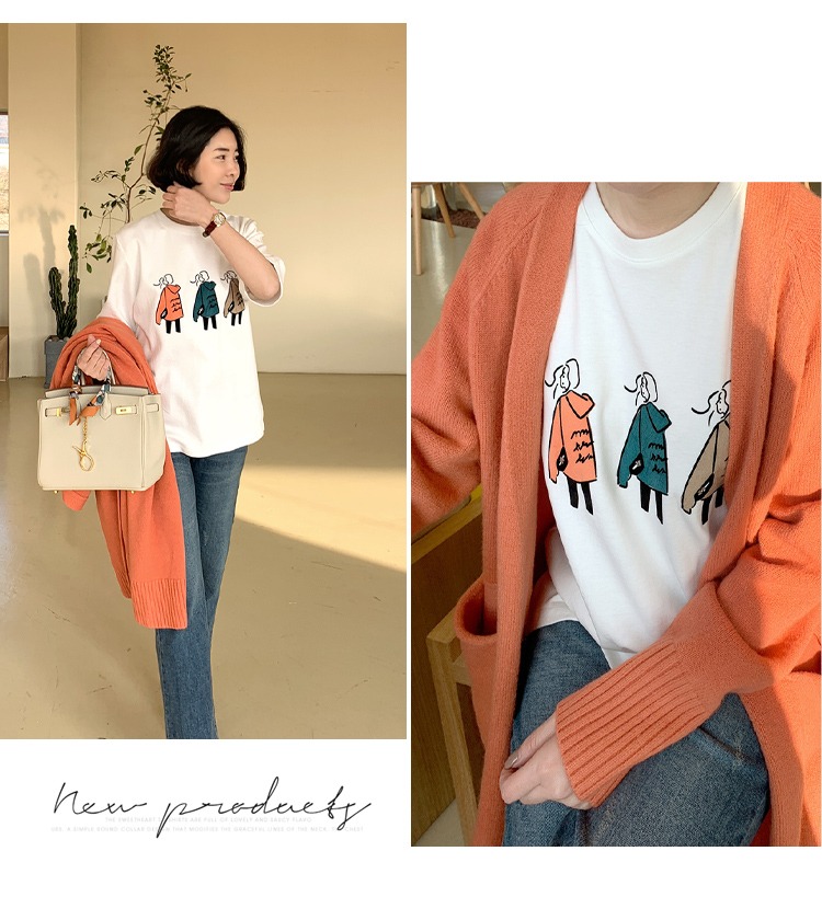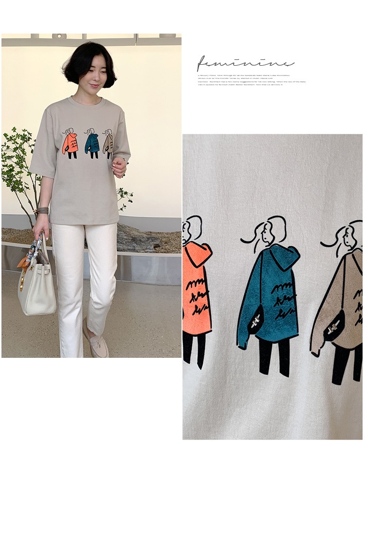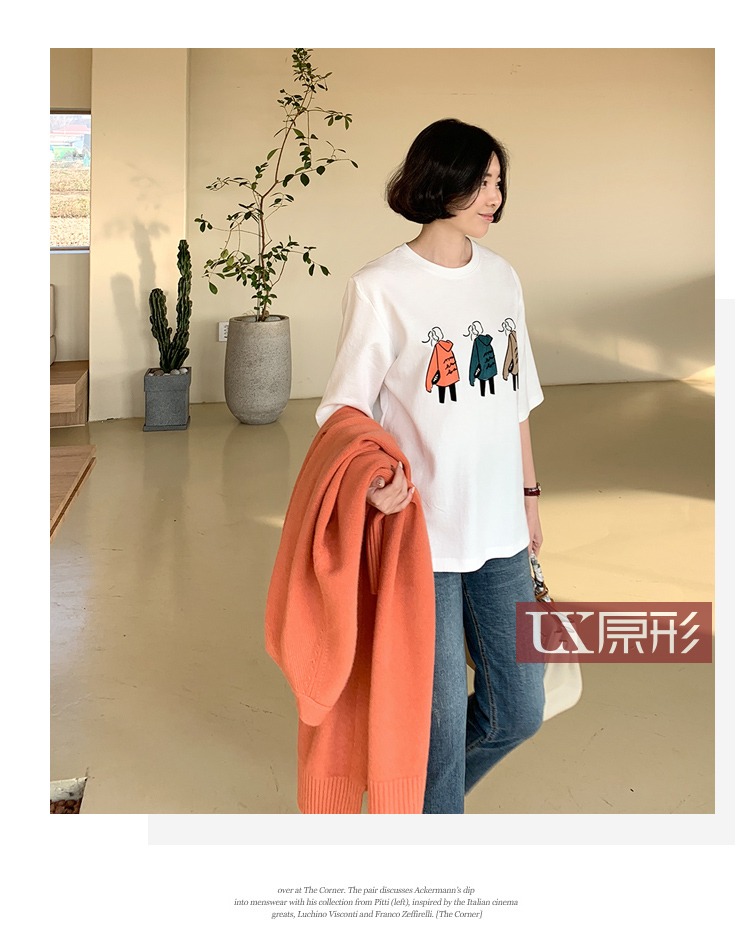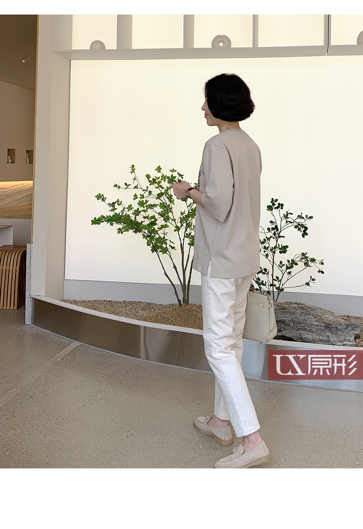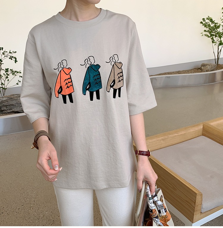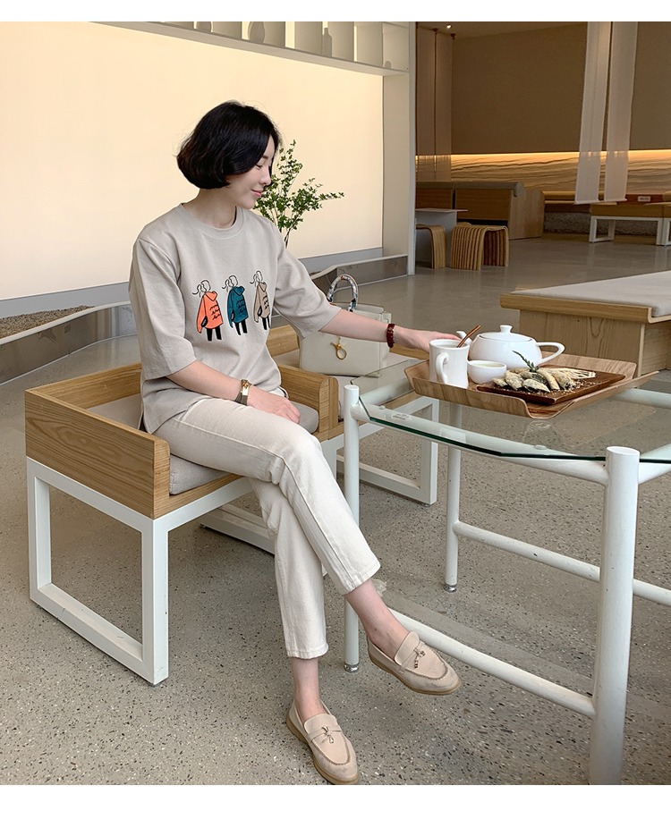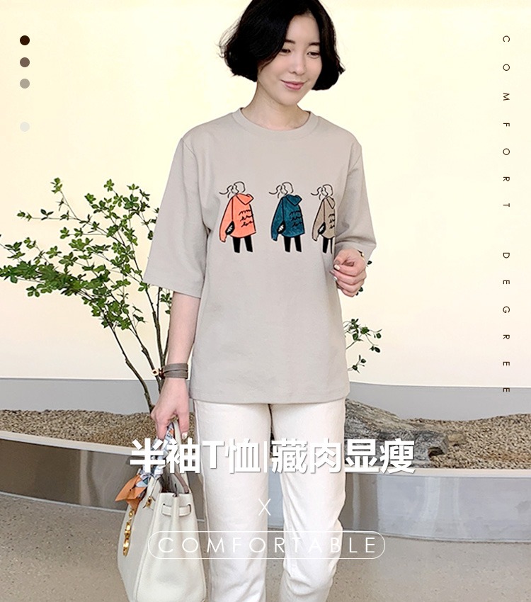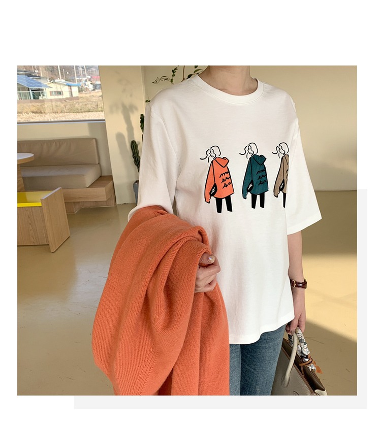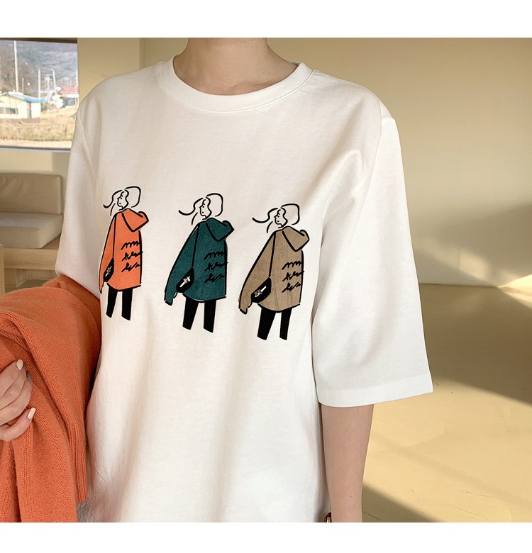 YX【现货7天】五分袖t恤女宽松ins潮2024夏装新款韩版圆领印花短袖体恤上衣
