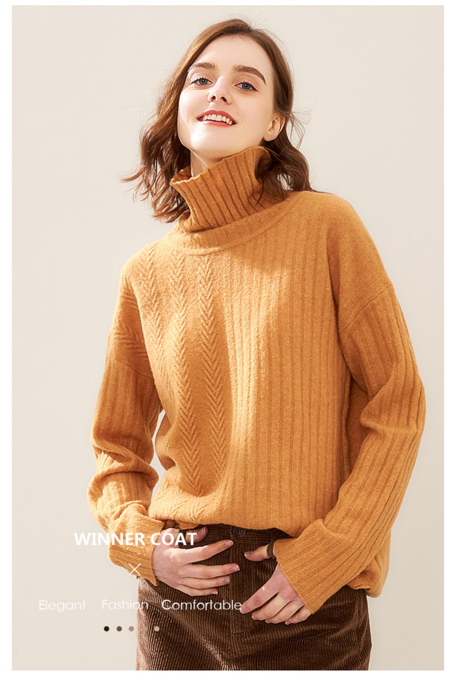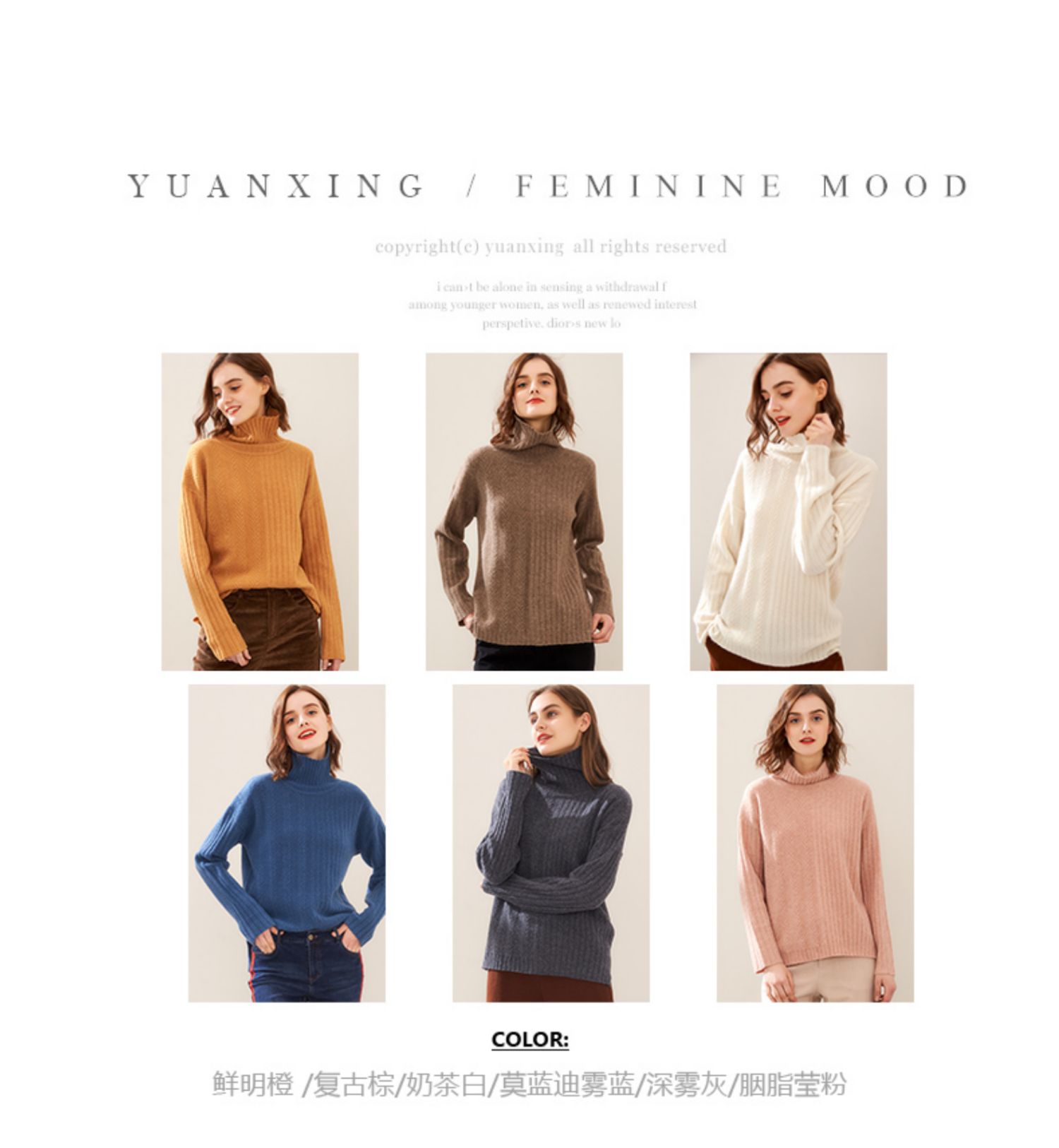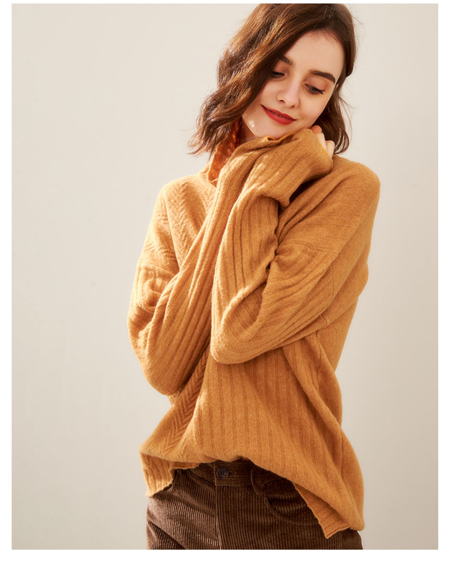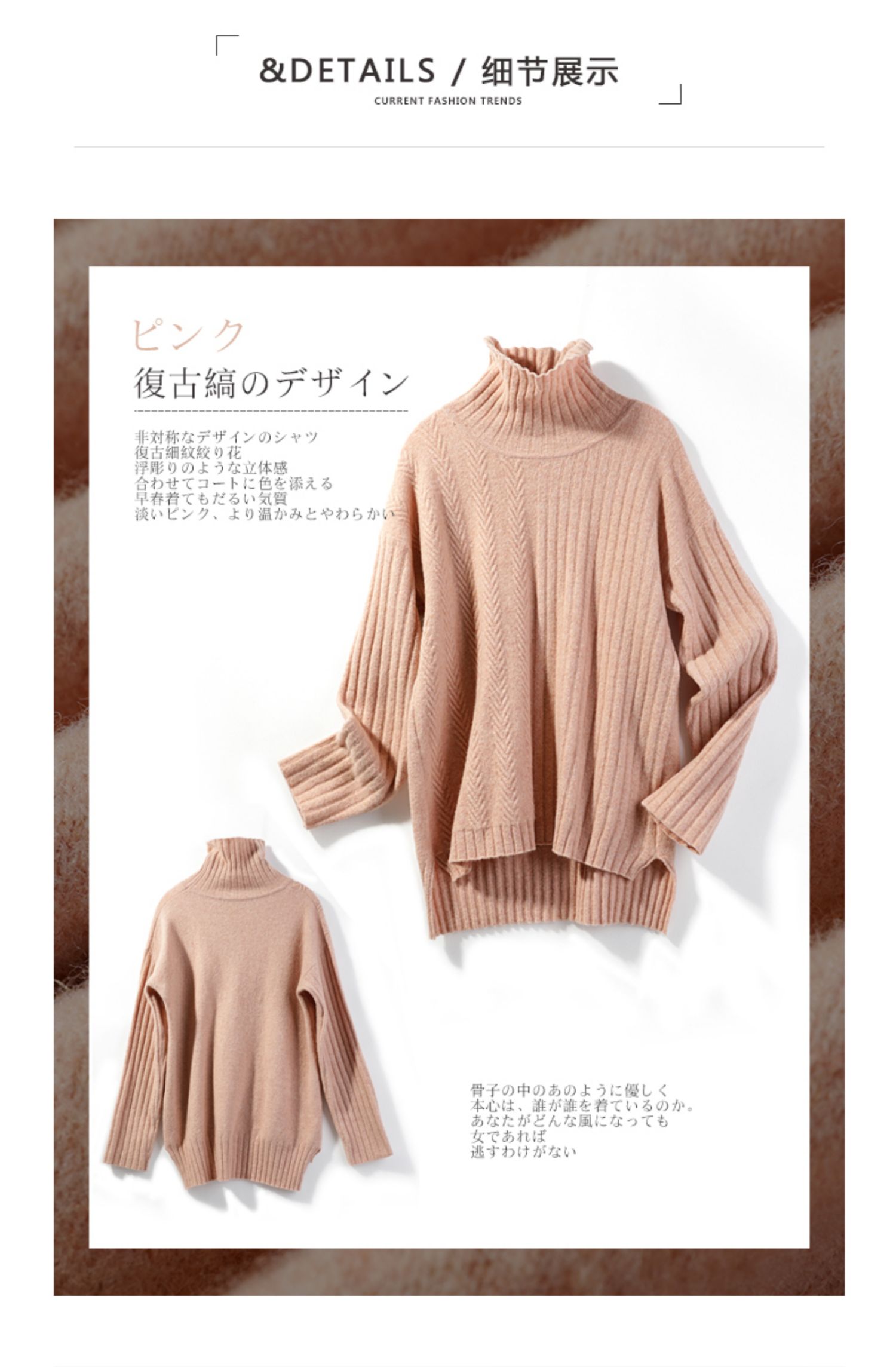 YX【现货7天】长袖羊绒毛衣女宽松外穿2022秋季新款慵懒风高领时尚洋气外套