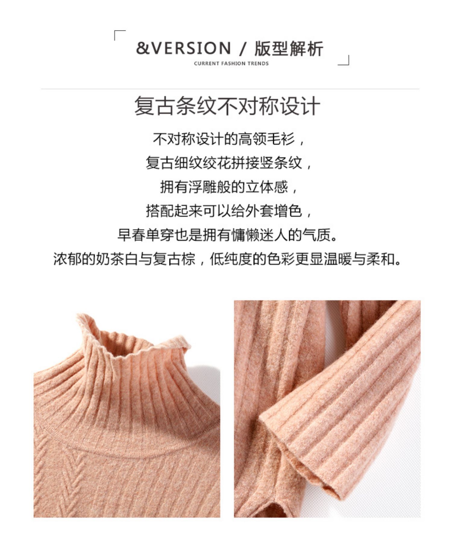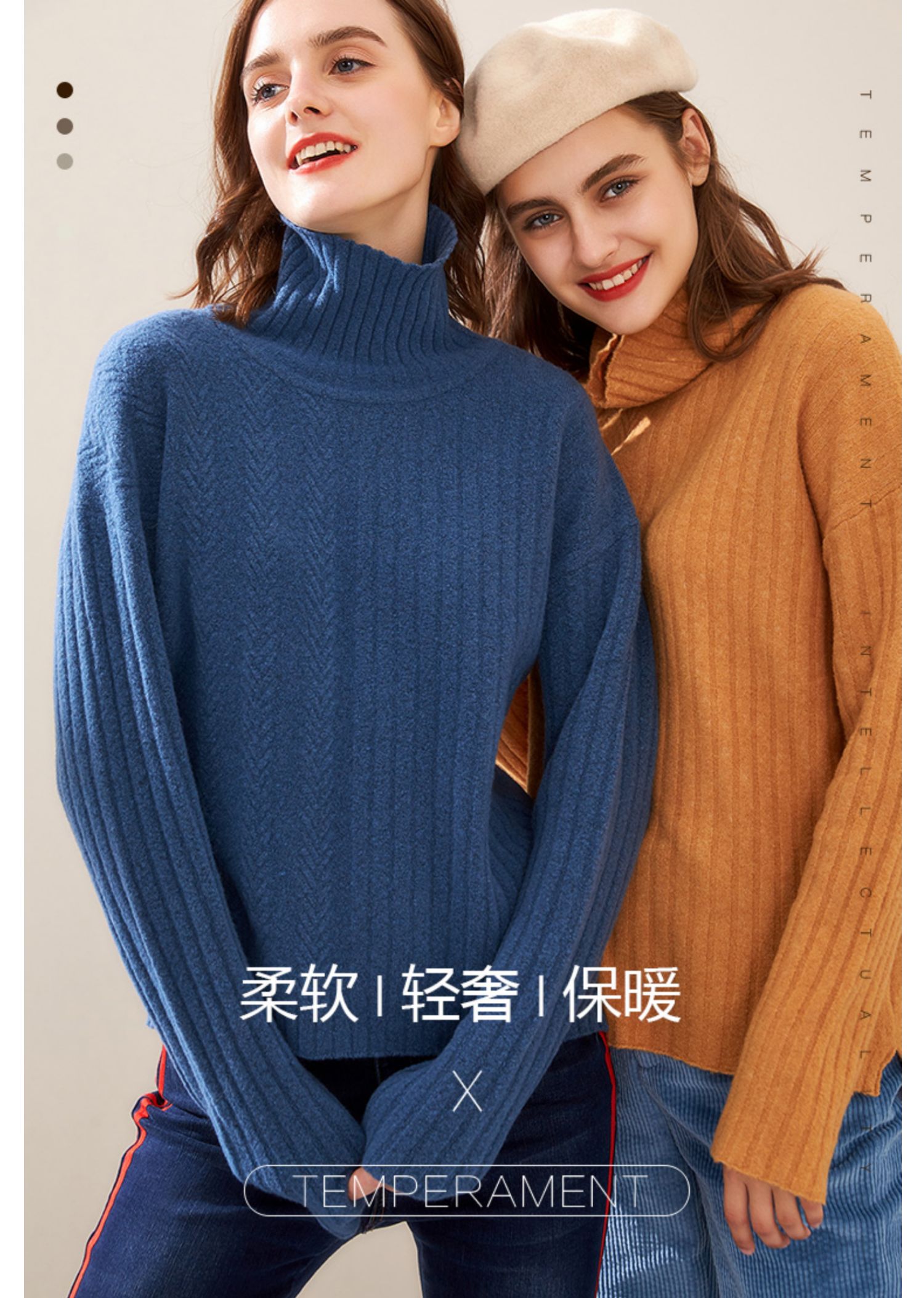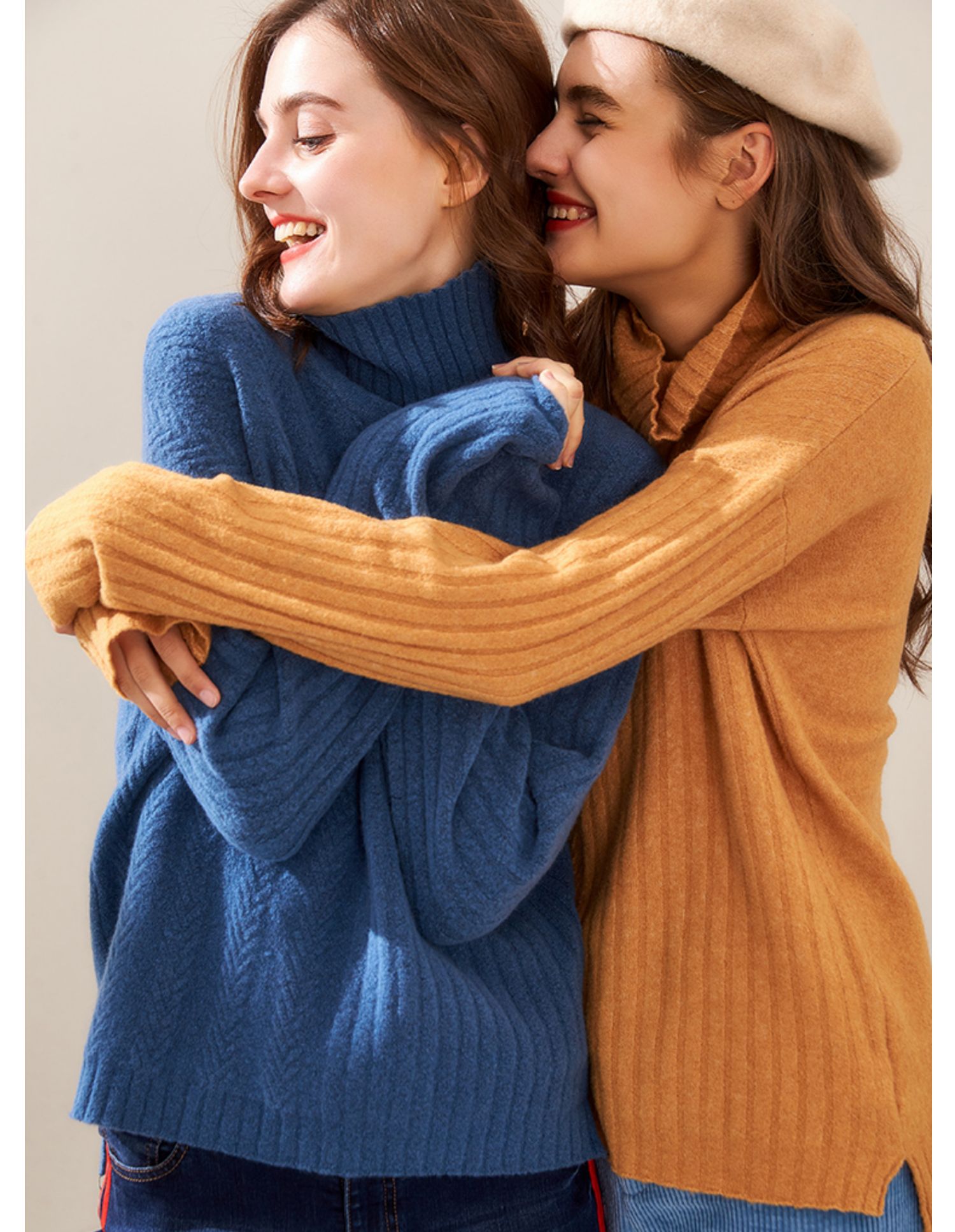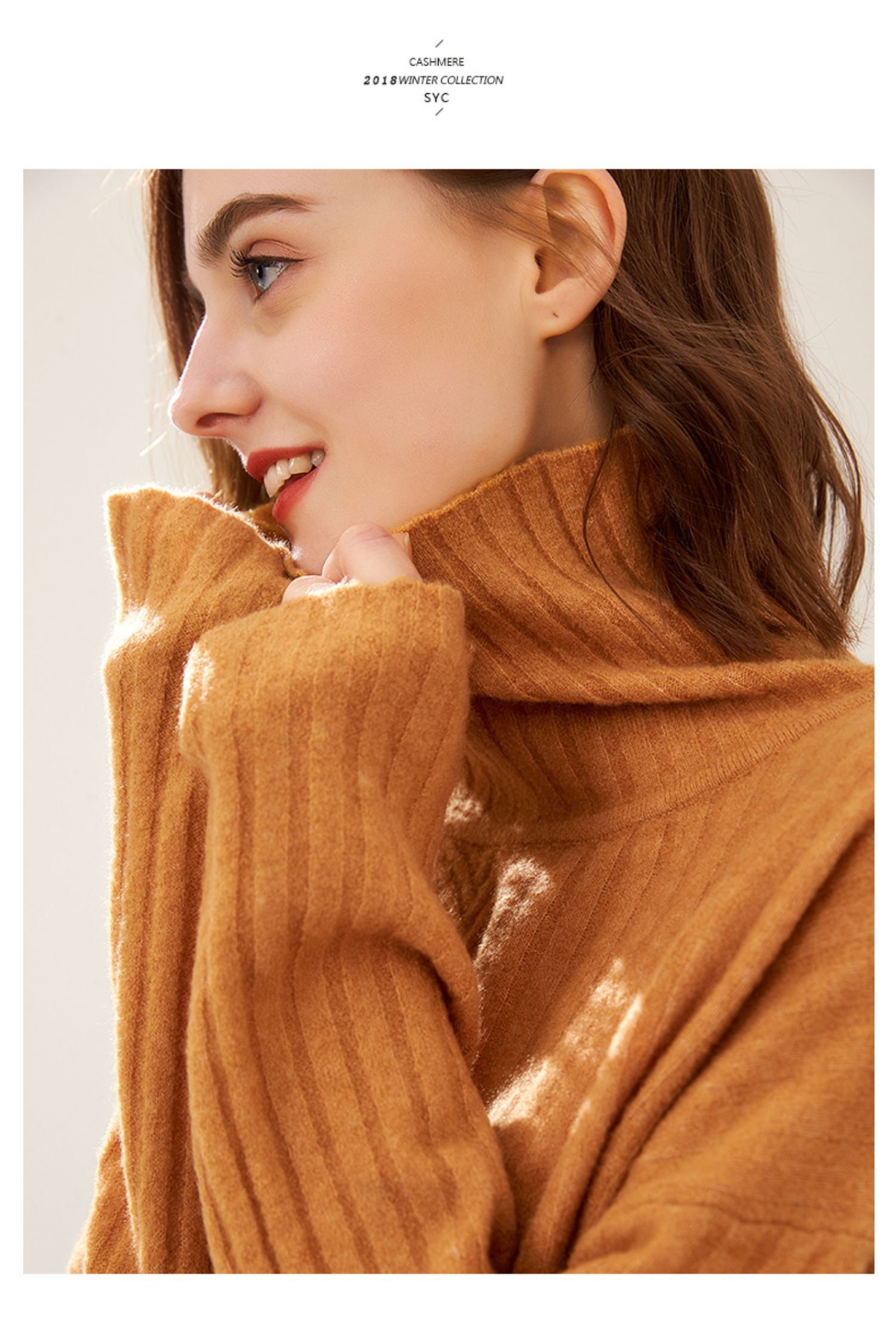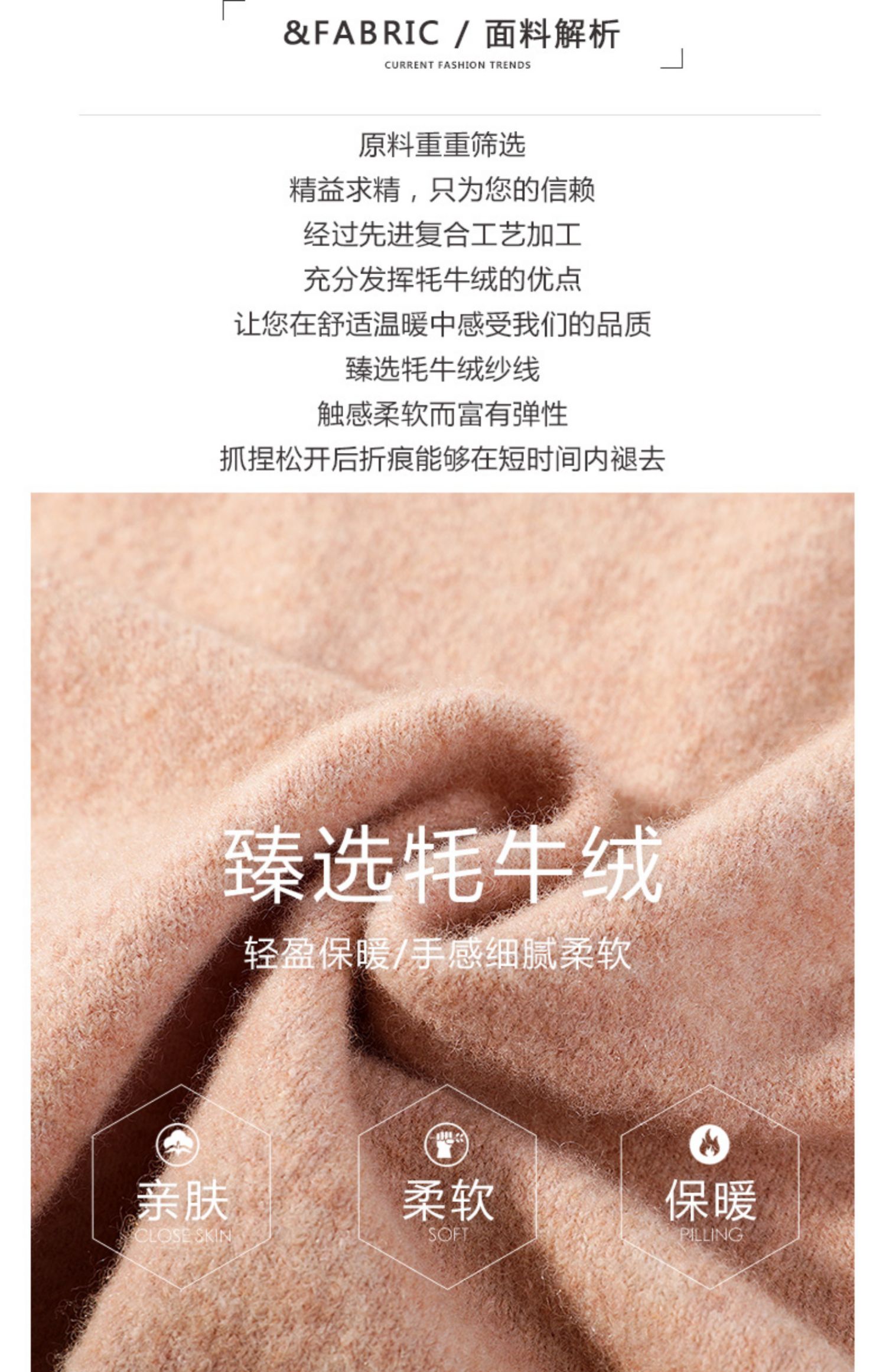 YX【现货7天】长袖羊绒毛衣女宽松外穿2022秋季新款慵懒风高领时尚洋气外套