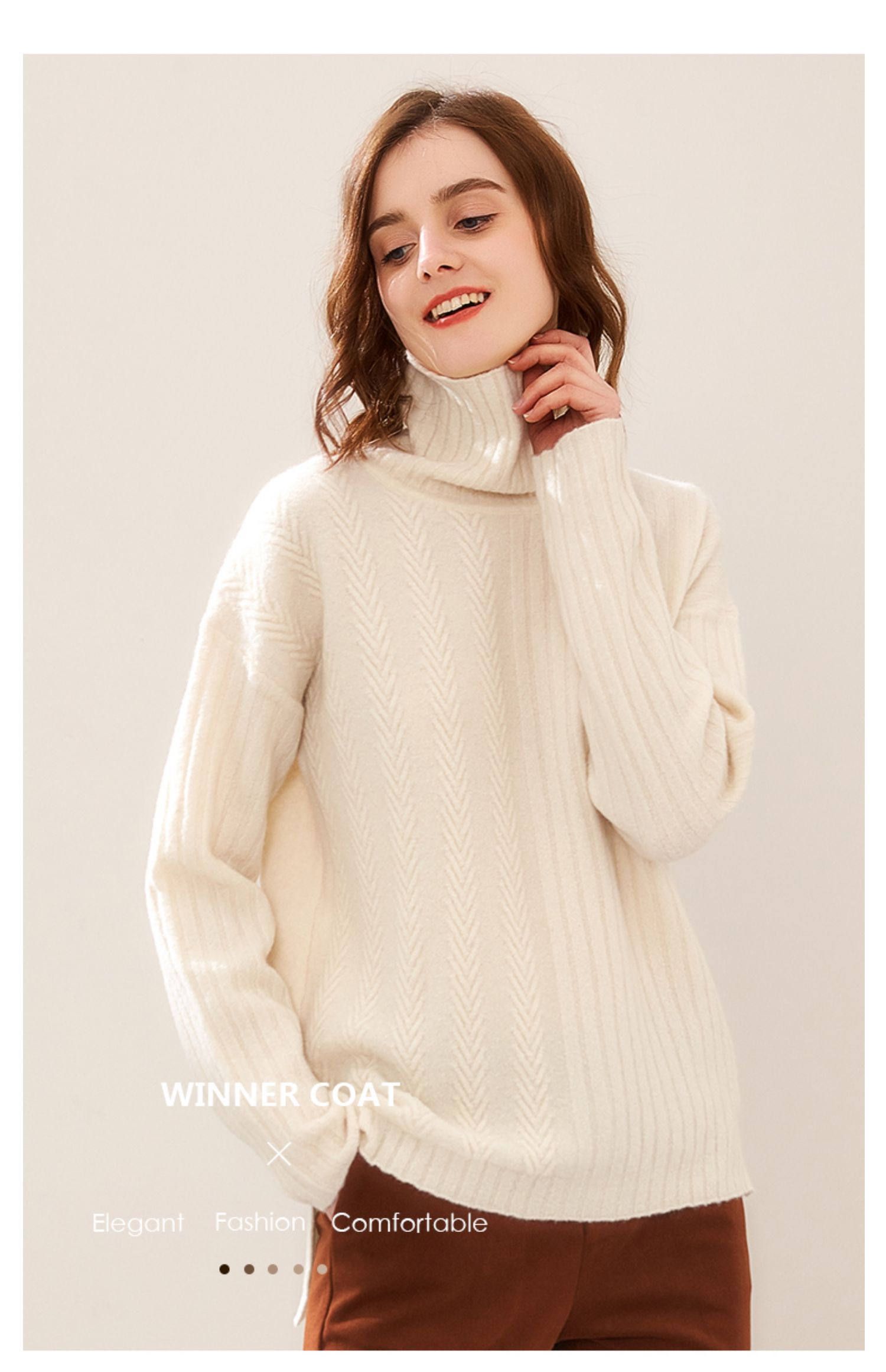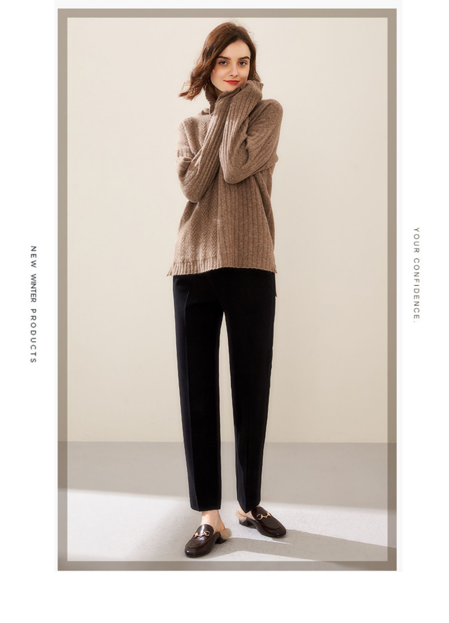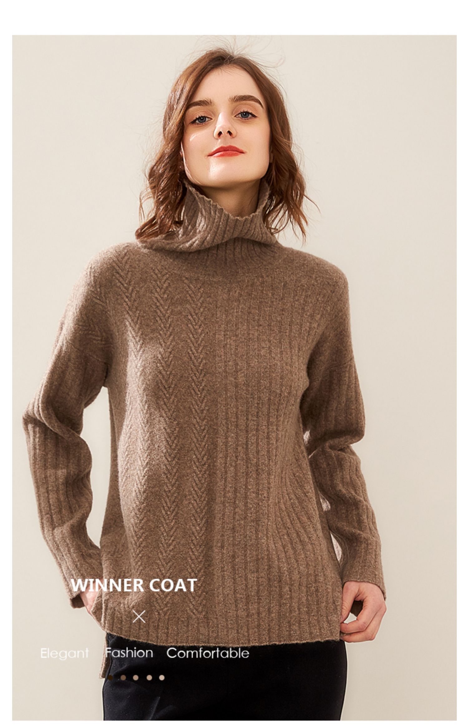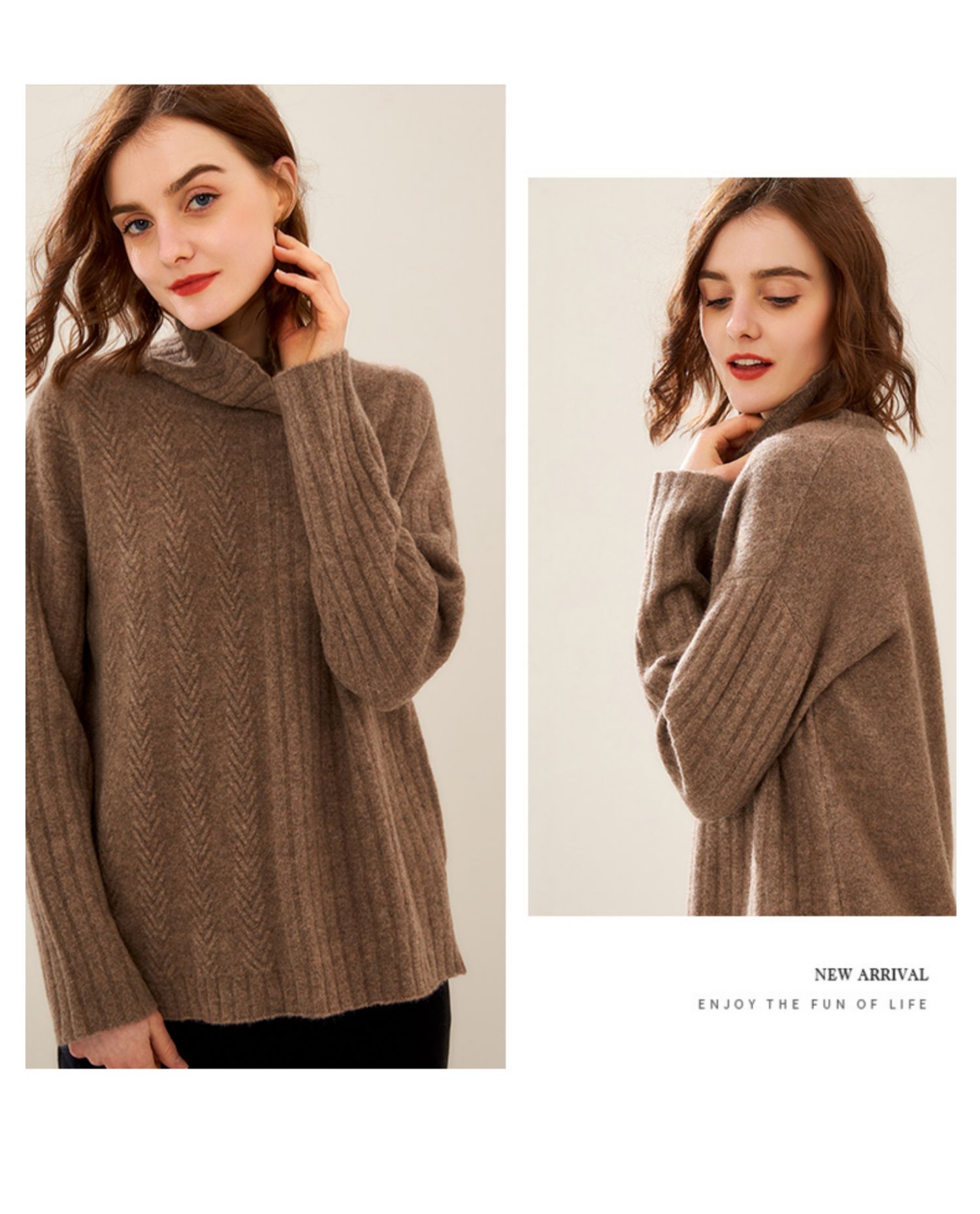 YX【现货7天】长袖羊绒毛衣女宽松外穿2022秋季新款慵懒风高领时尚洋气外套