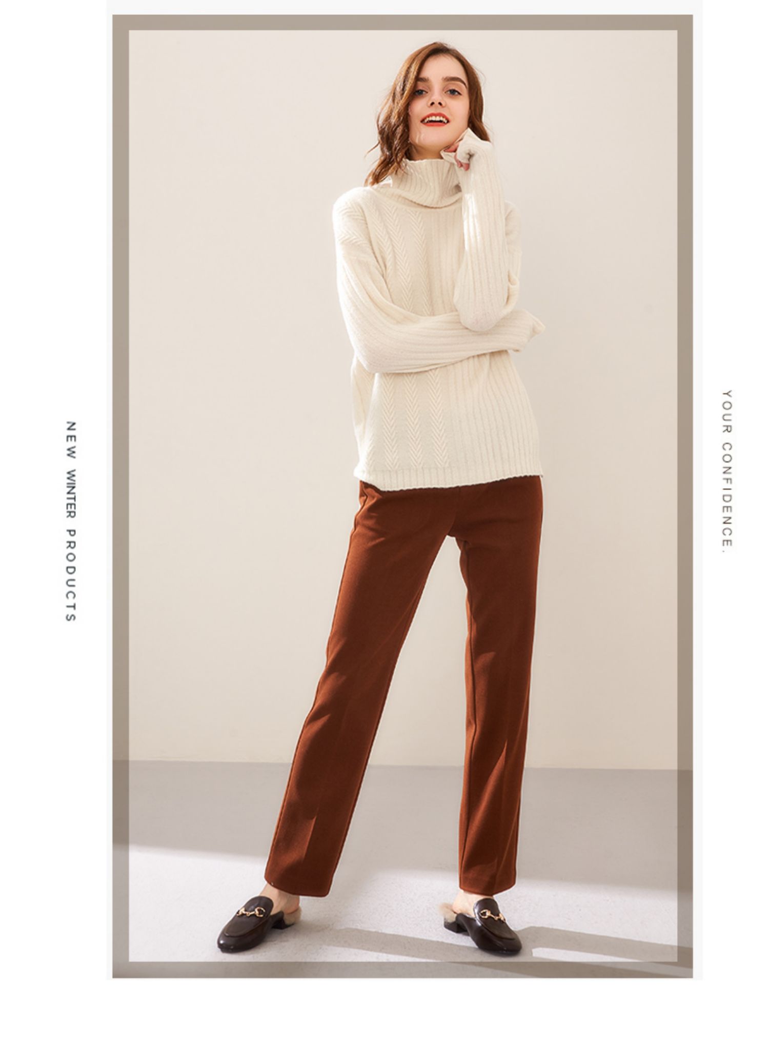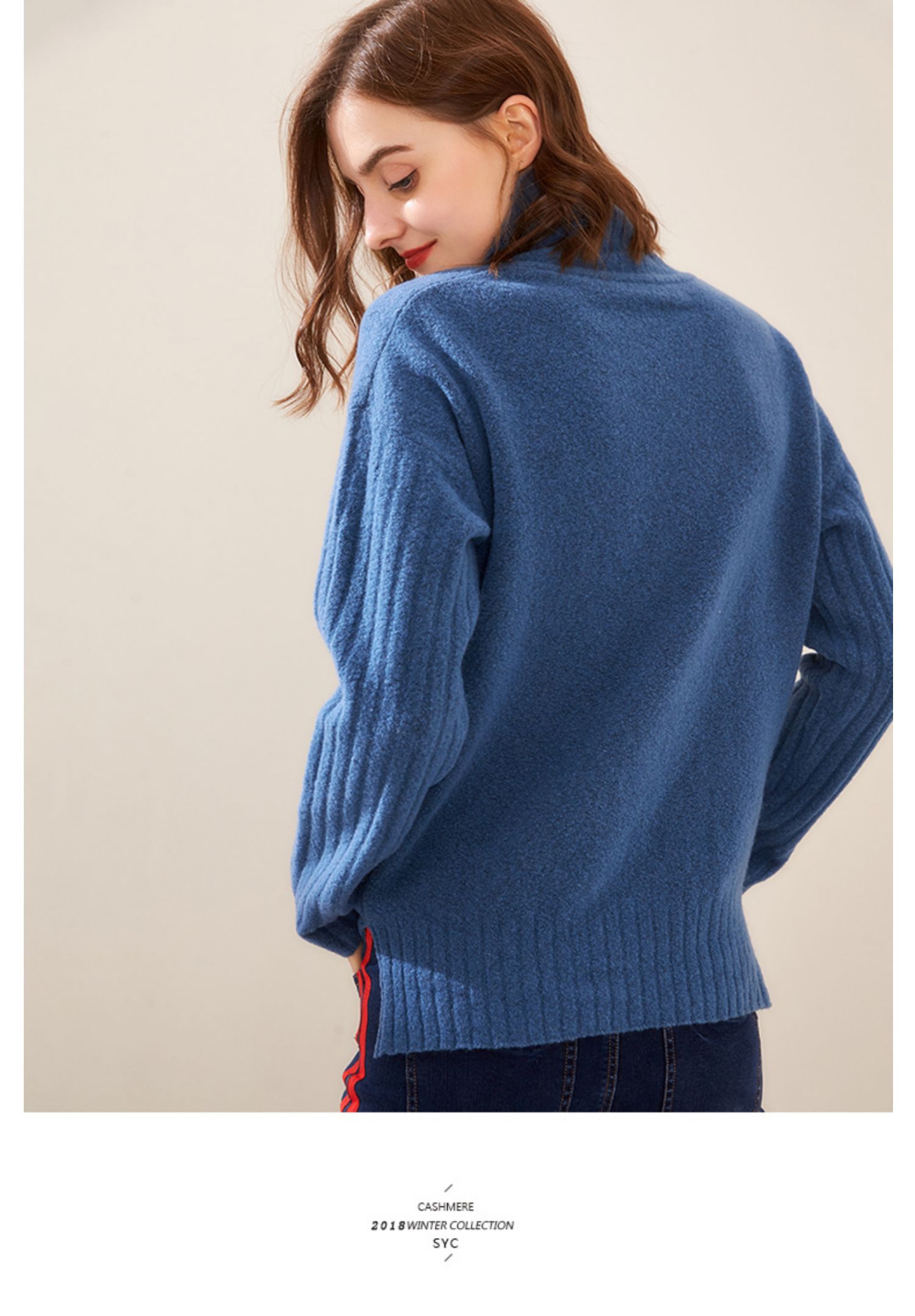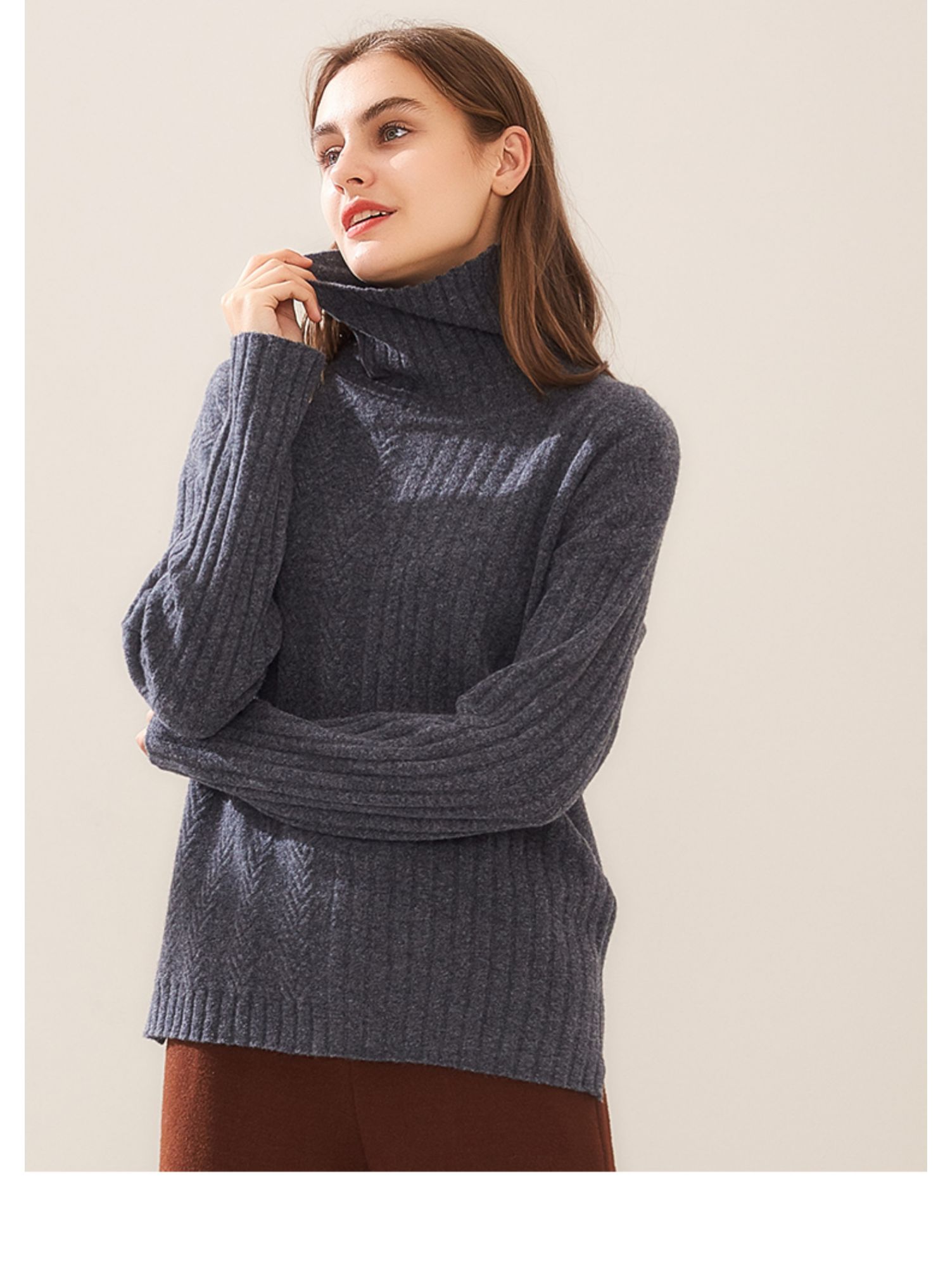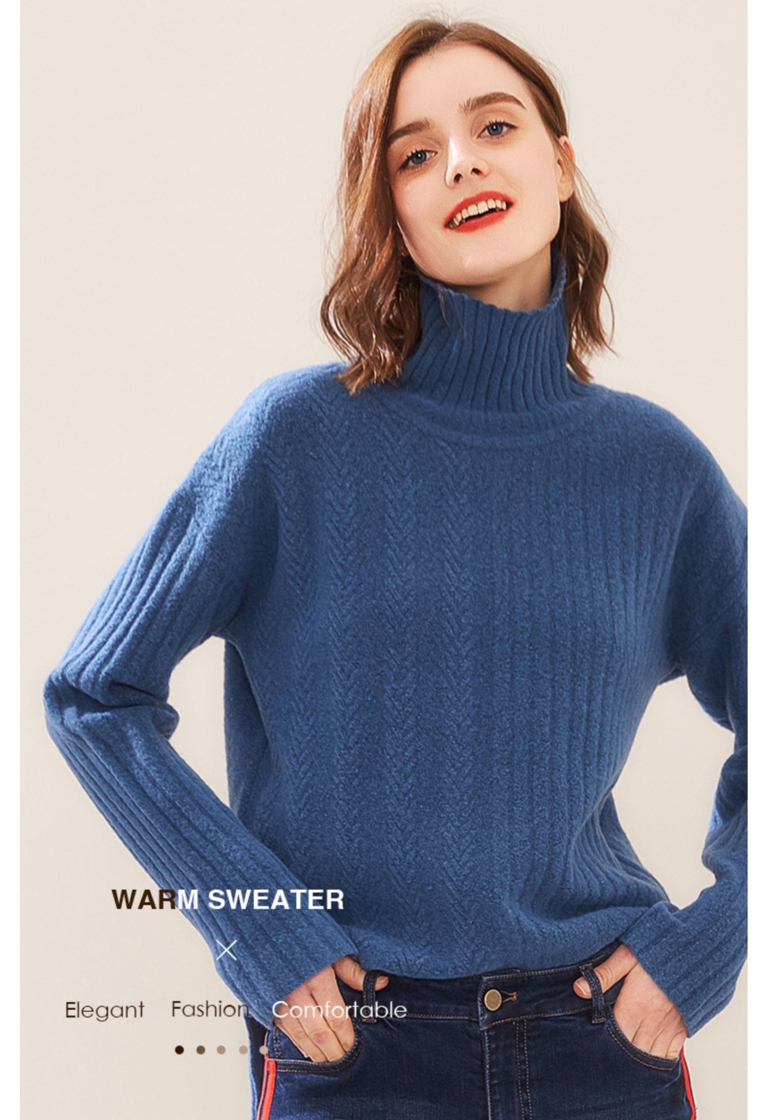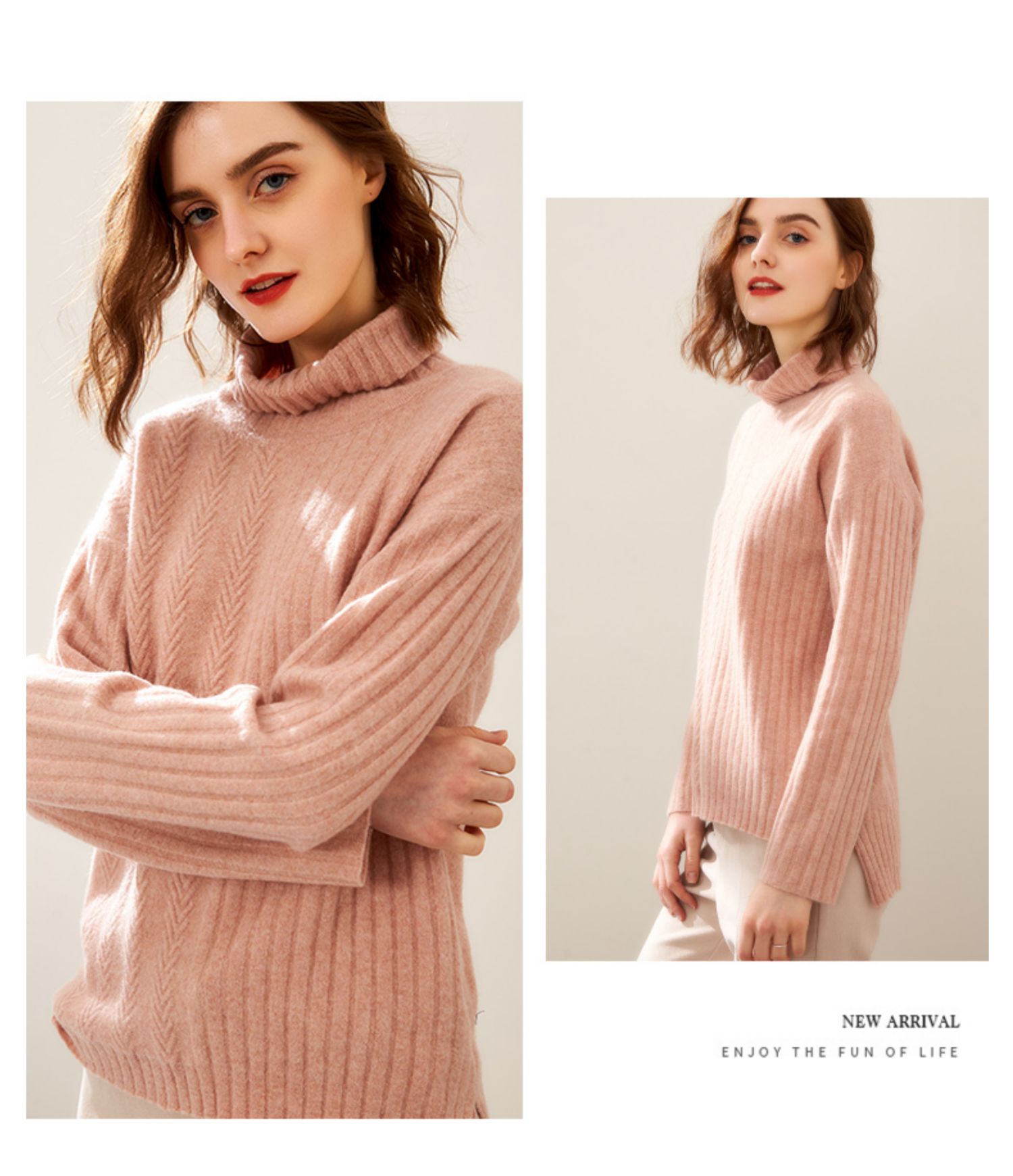 YX【现货7天】长袖羊绒毛衣女宽松外穿2022秋季新款慵懒风高领时尚洋气外套