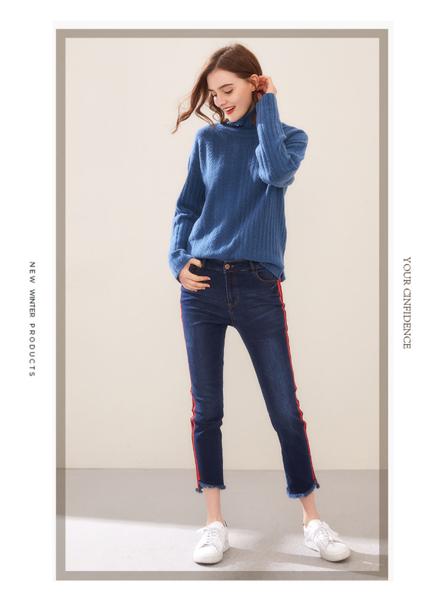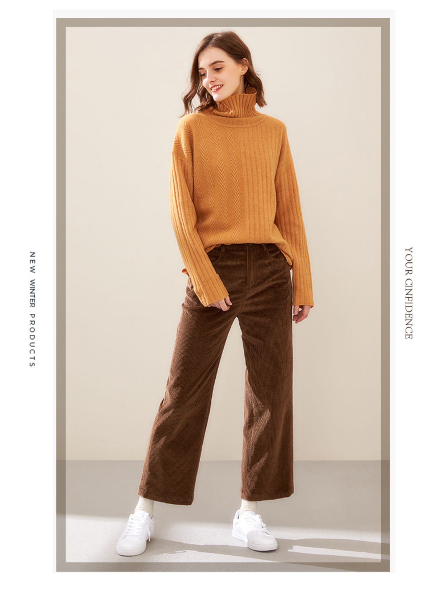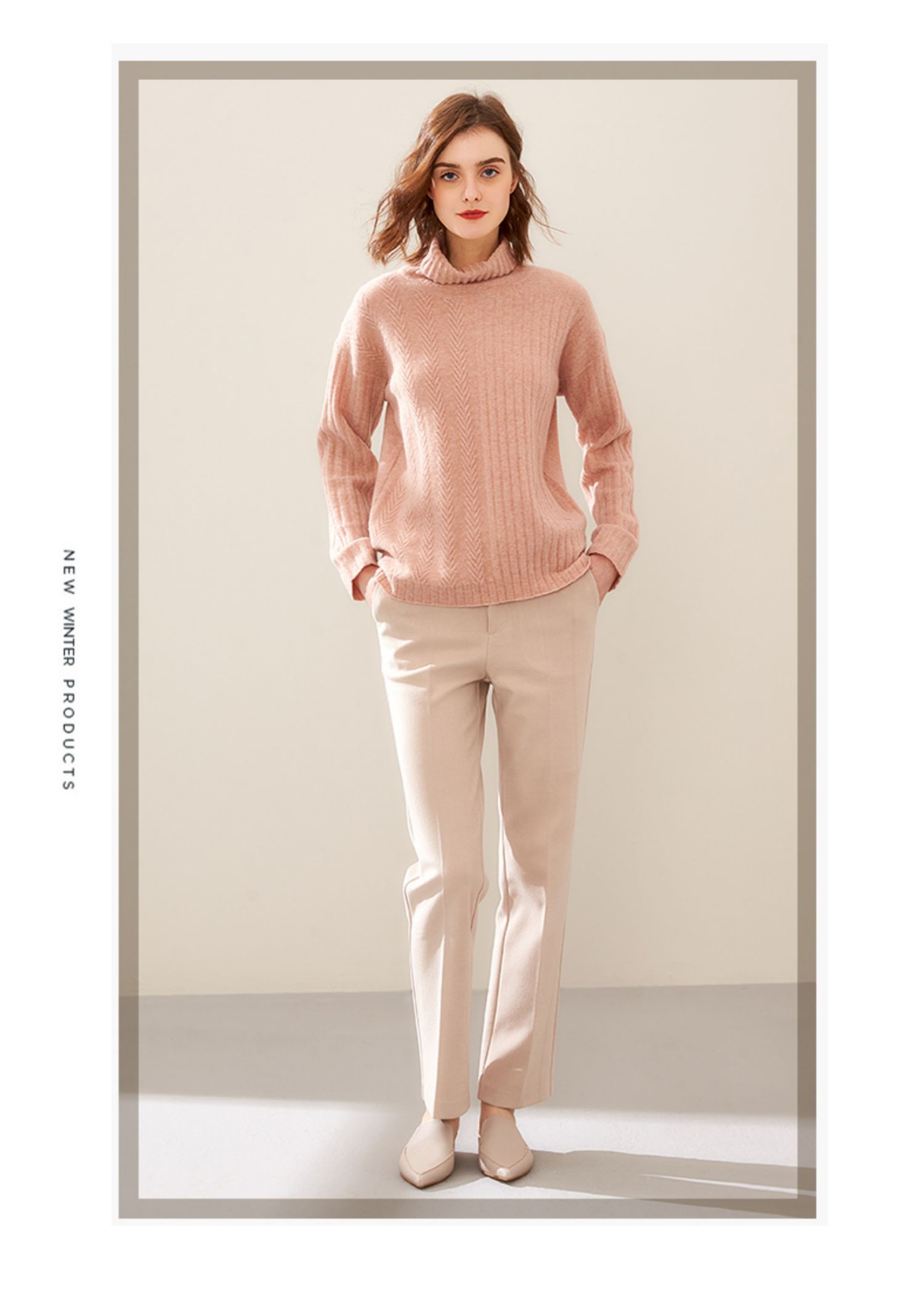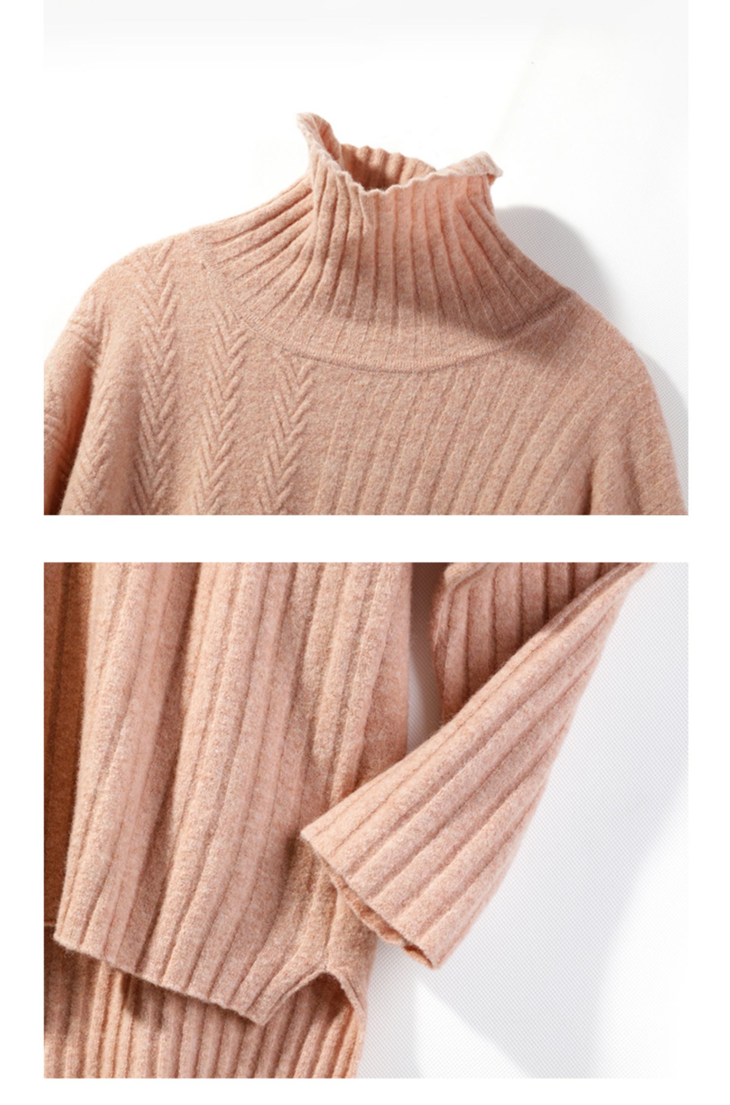 YX【现货7天】长袖羊绒毛衣女宽松外穿2022秋季新款慵懒风高领时尚洋气外套