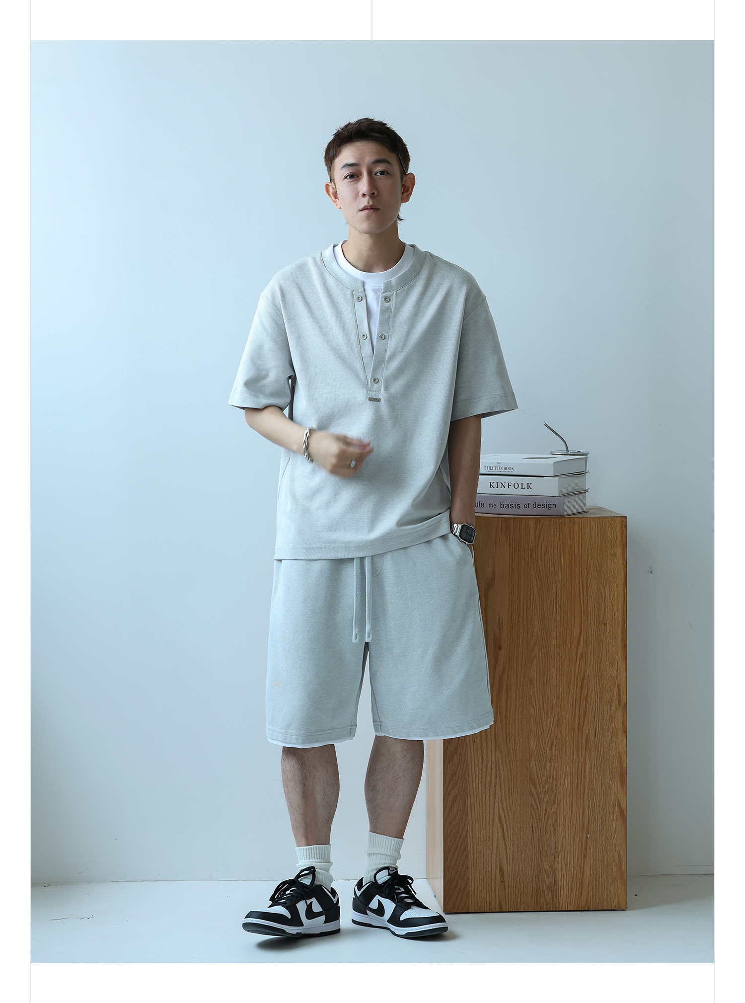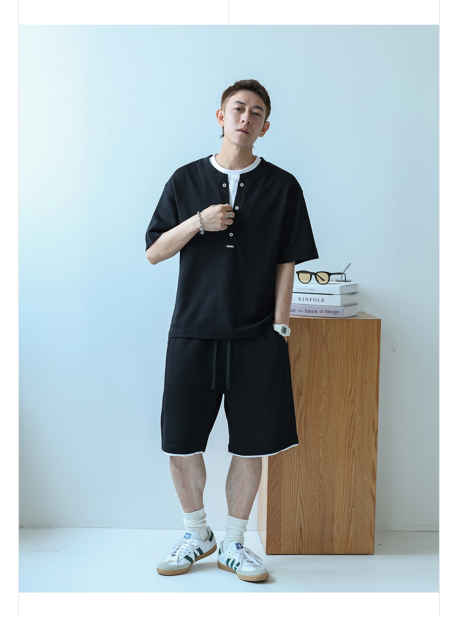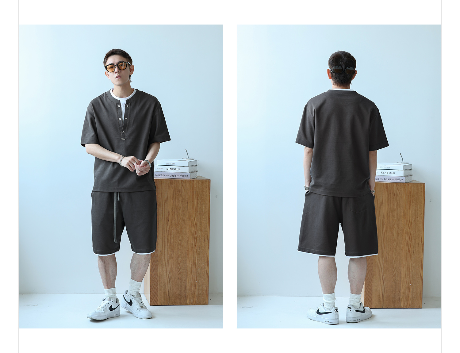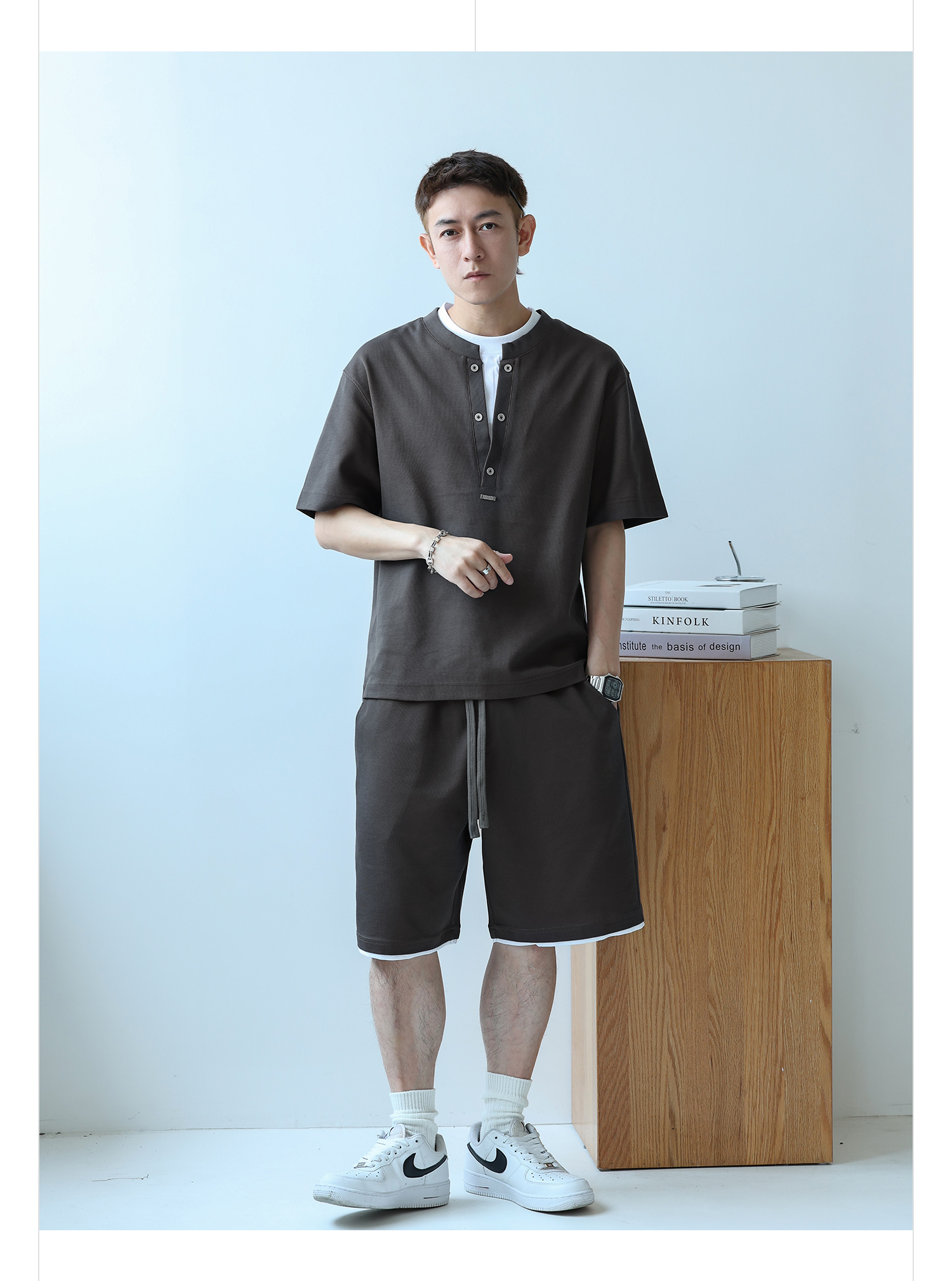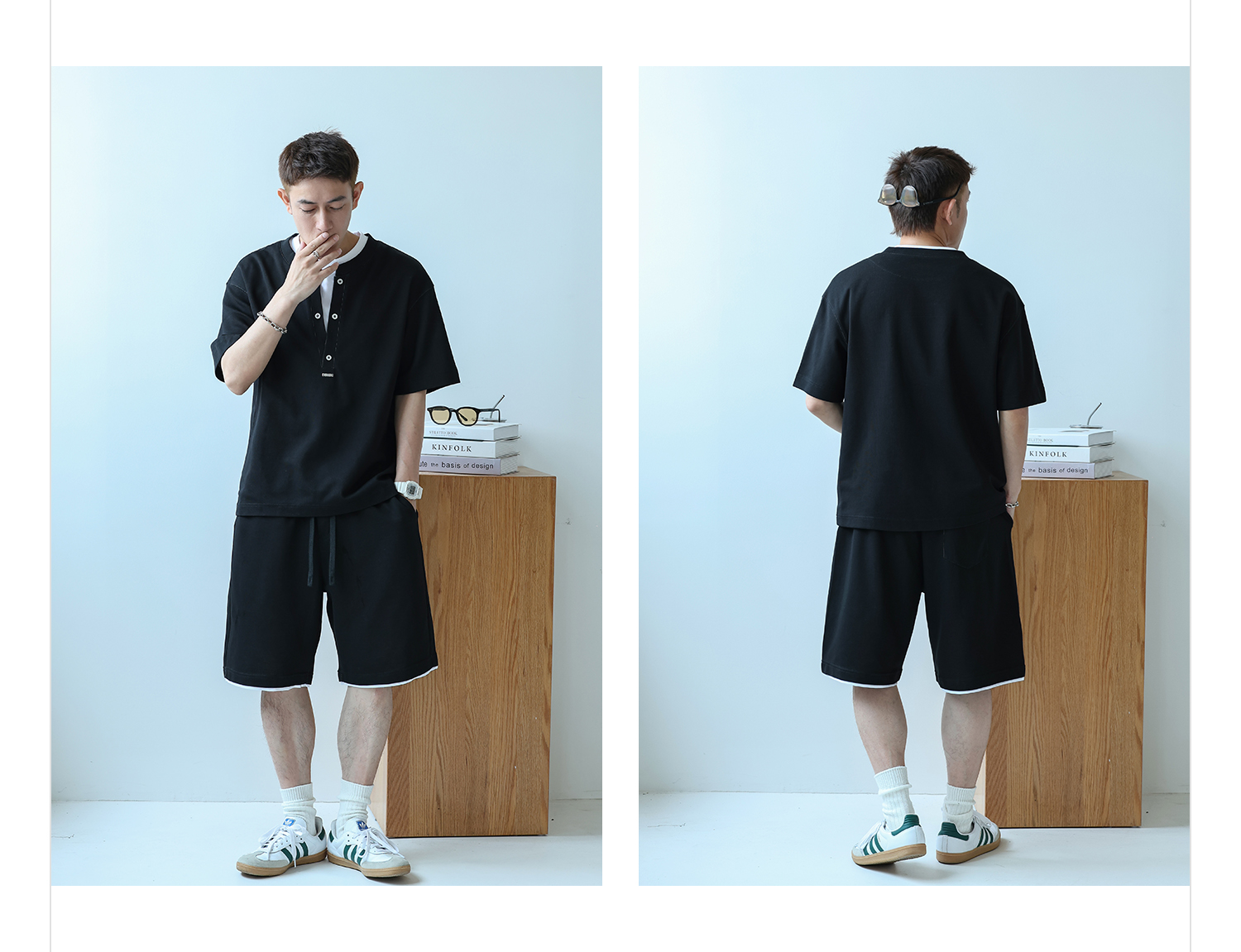 徐太浪230g速干透气休闲套装男夏季宽松大码门筒领T恤短裤两件套