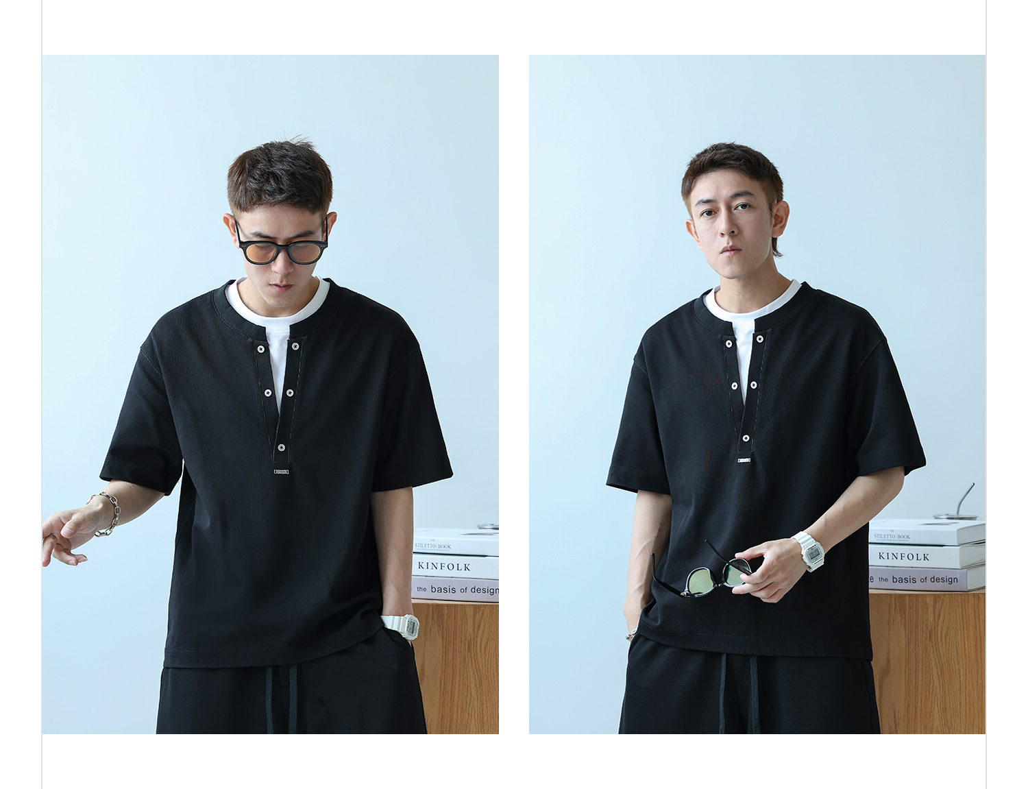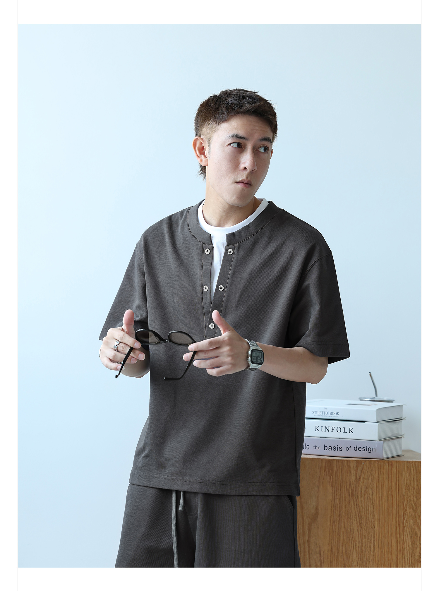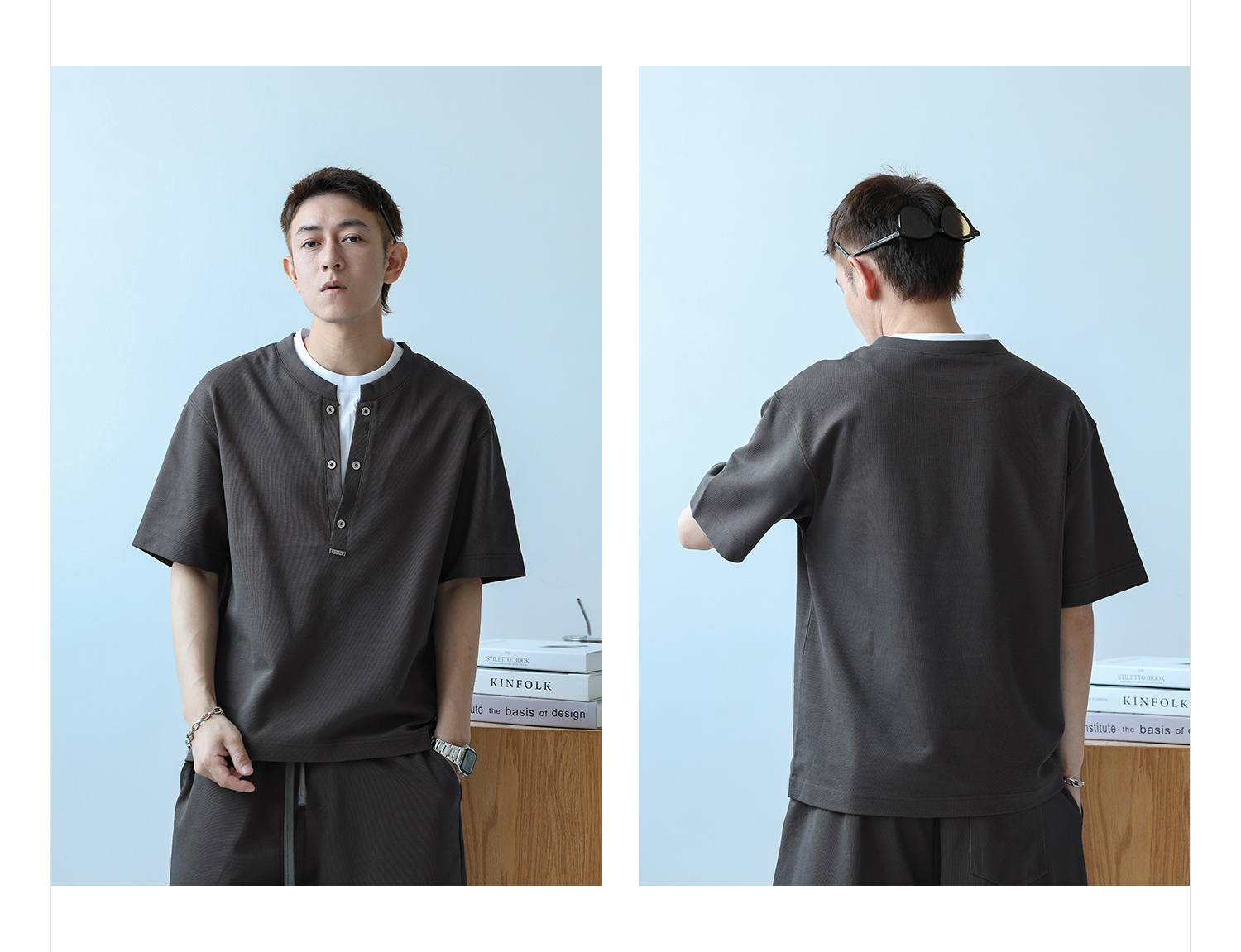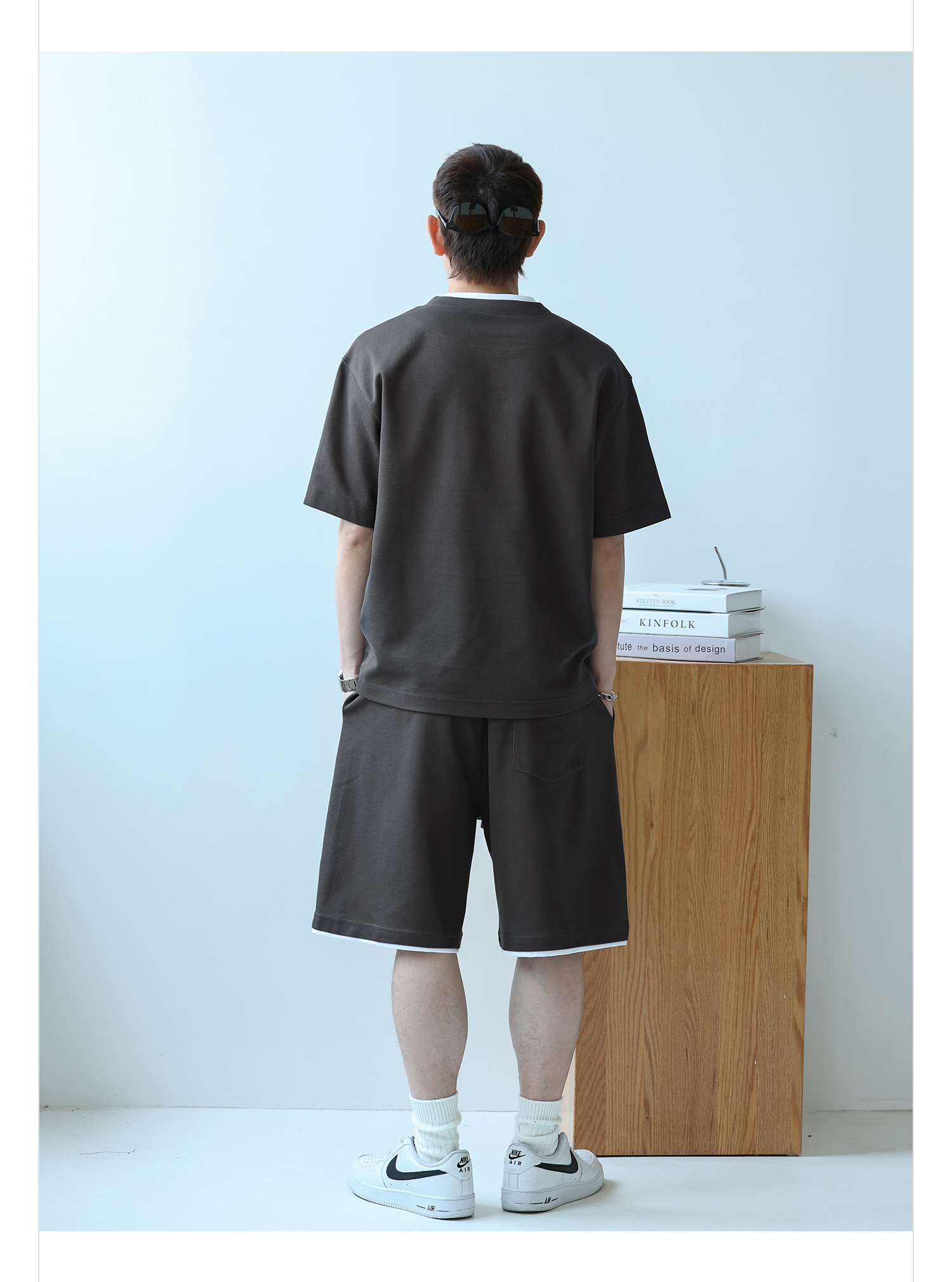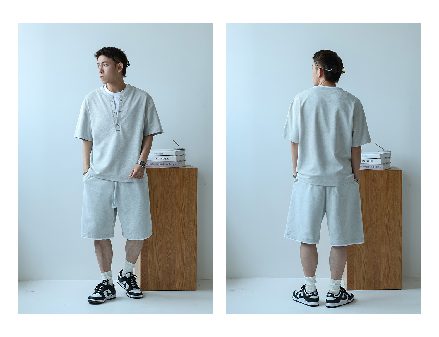 徐太浪230g速干透气休闲套装男夏季宽松大码门筒领T恤短裤两件套
