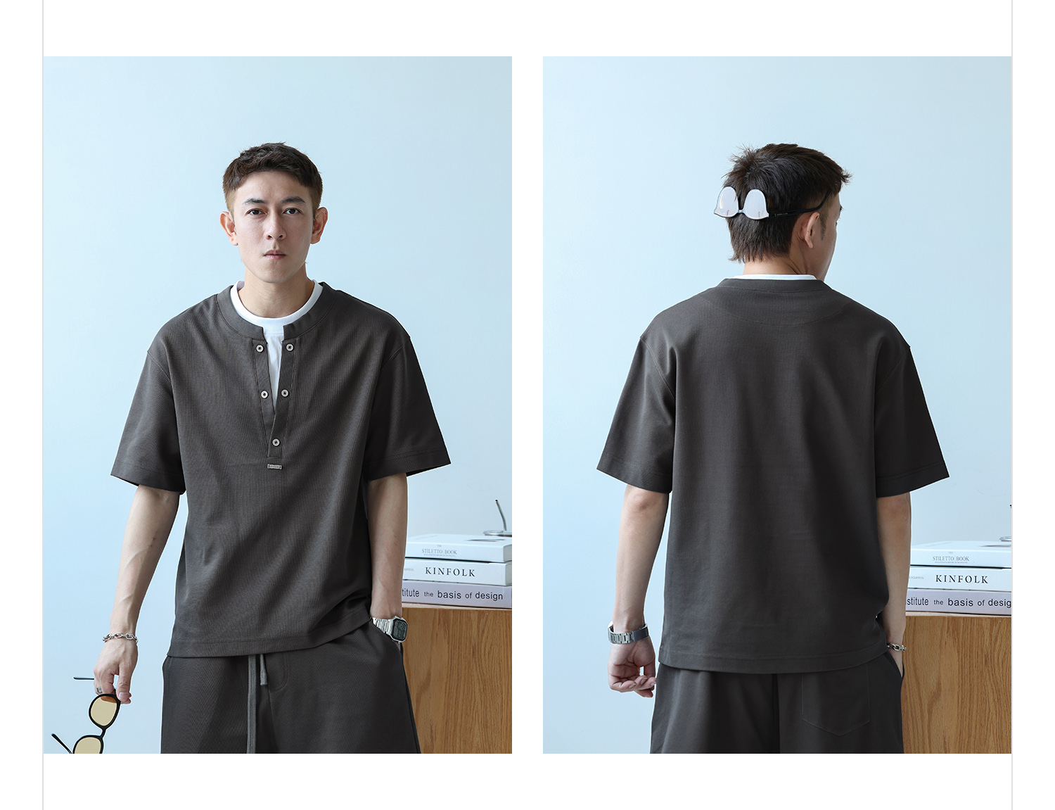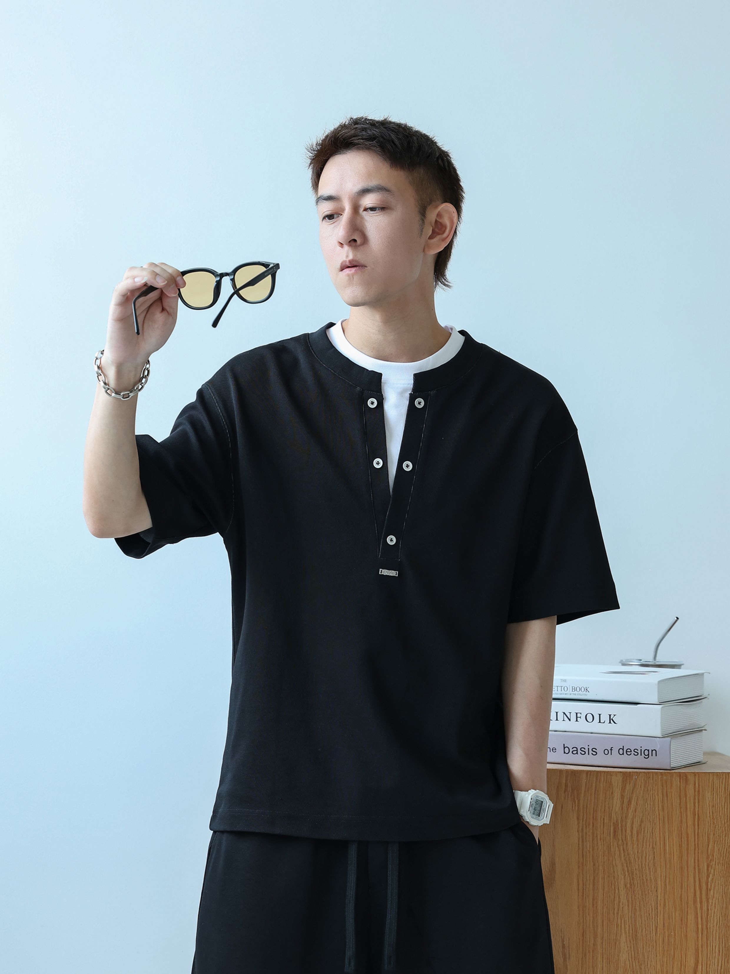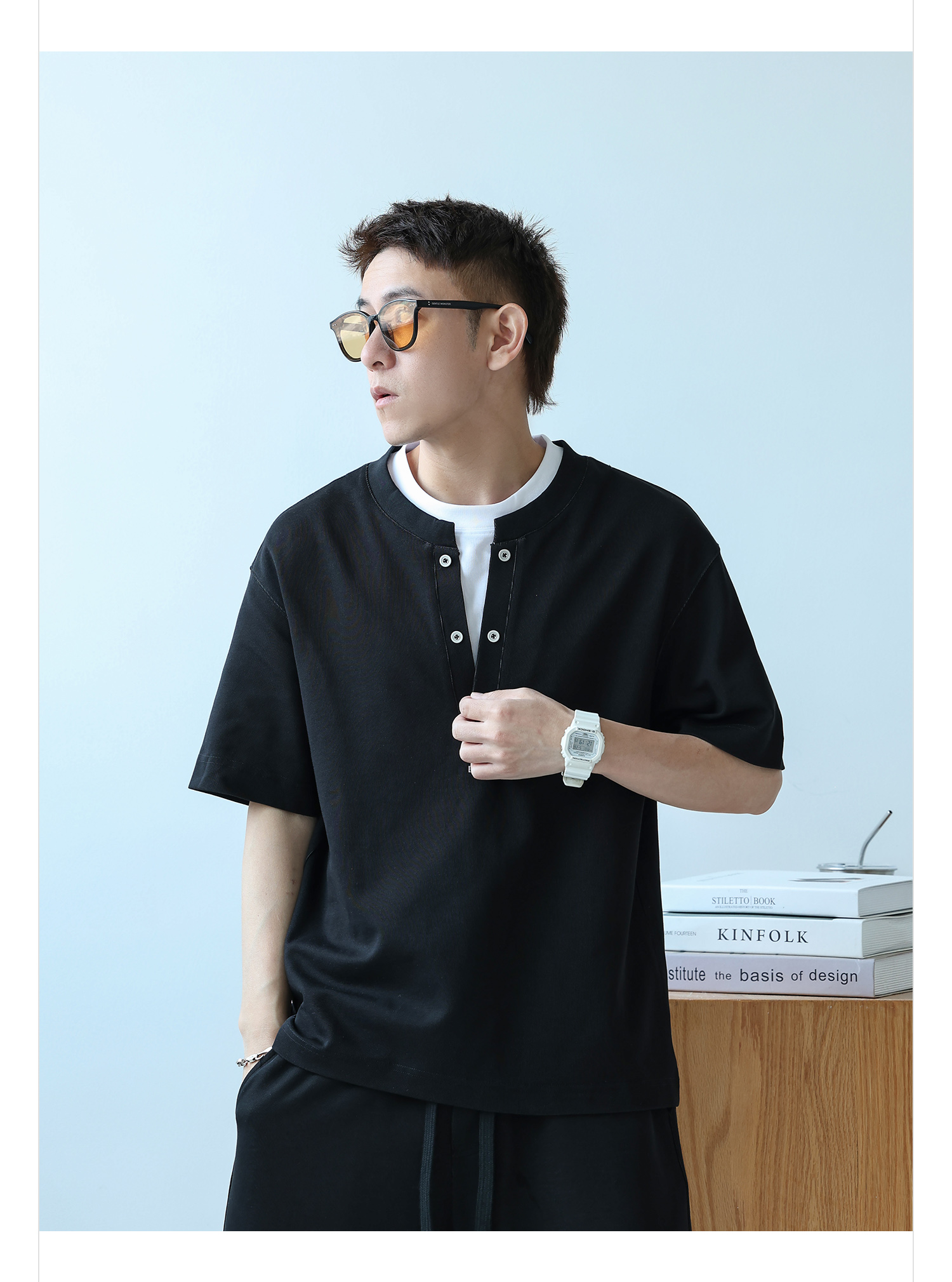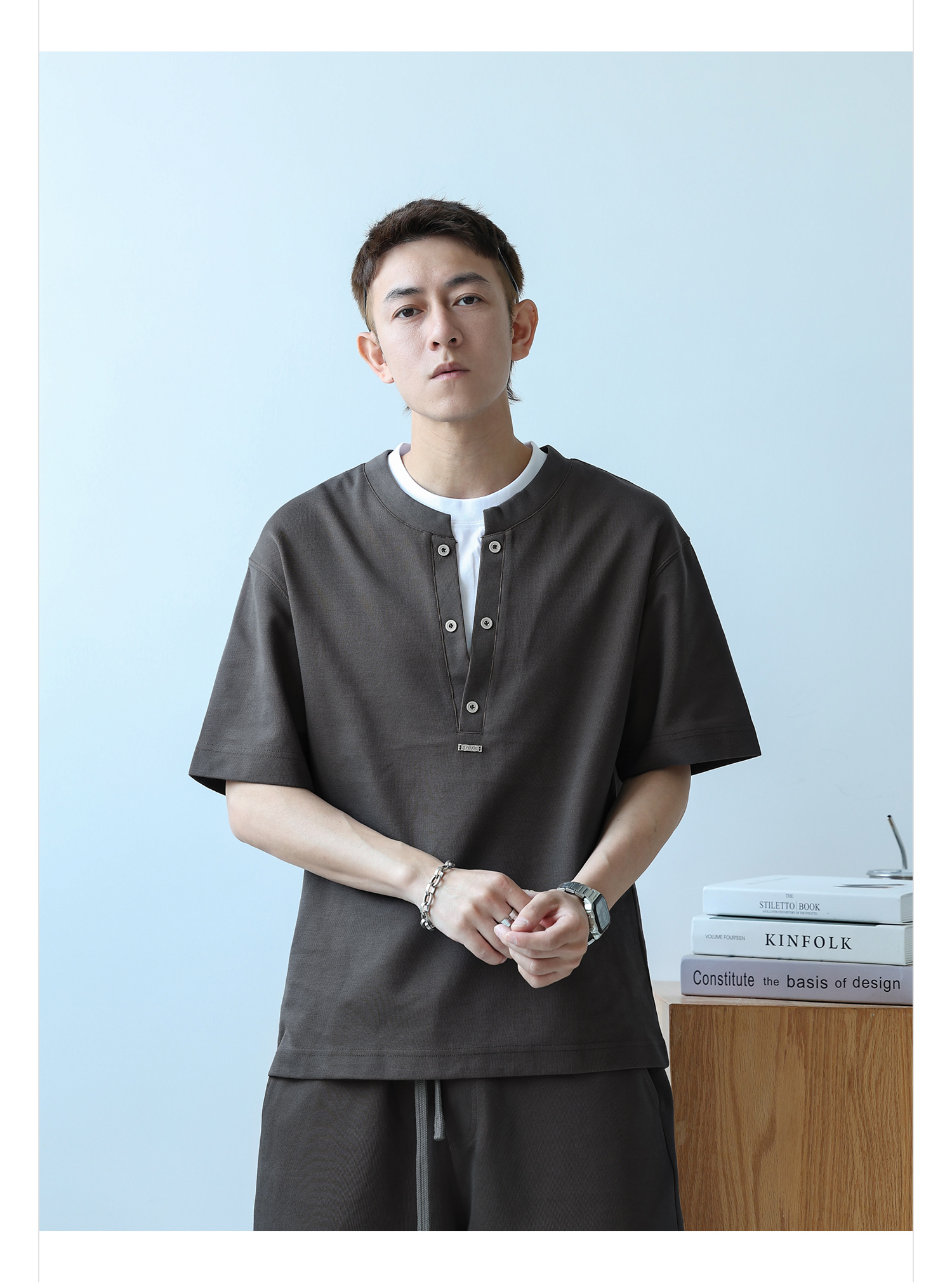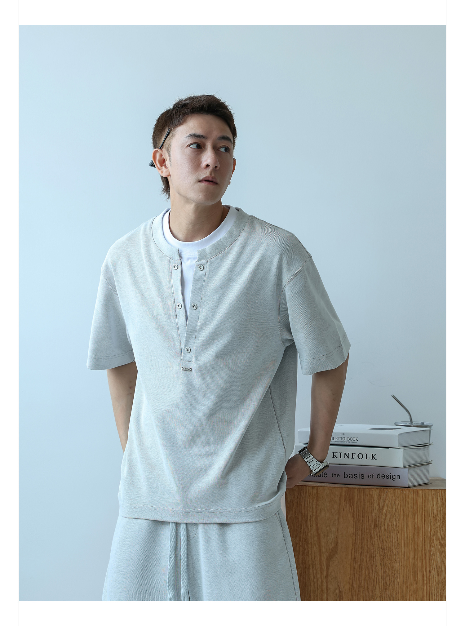 徐太浪230g速干透气休闲套装男夏季宽松大码门筒领T恤短裤两件套
