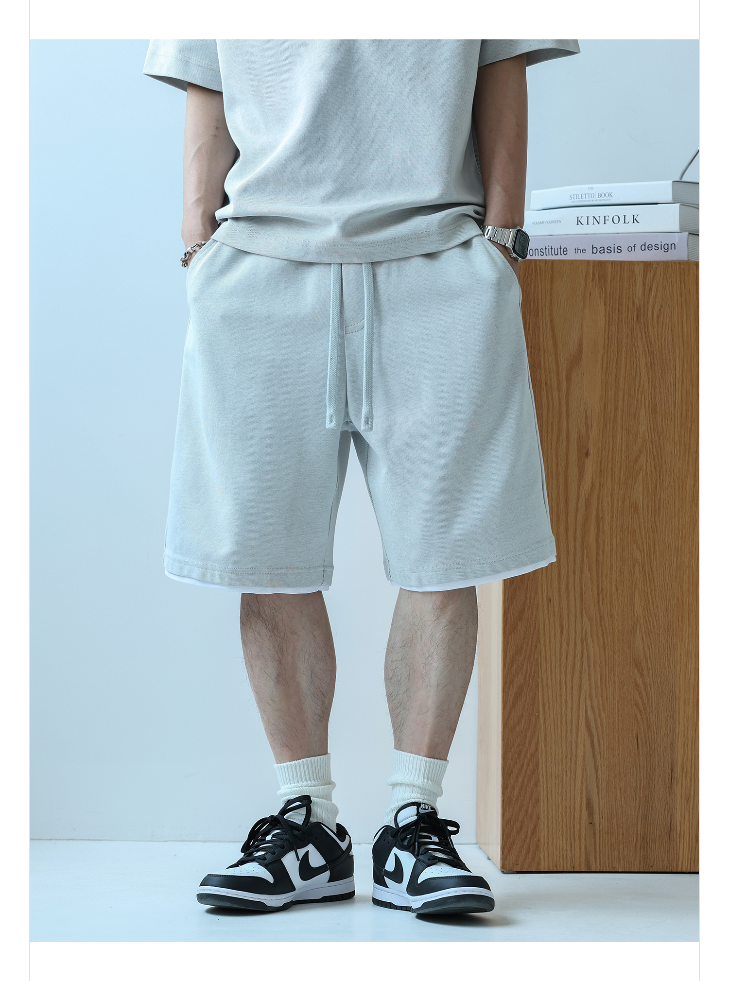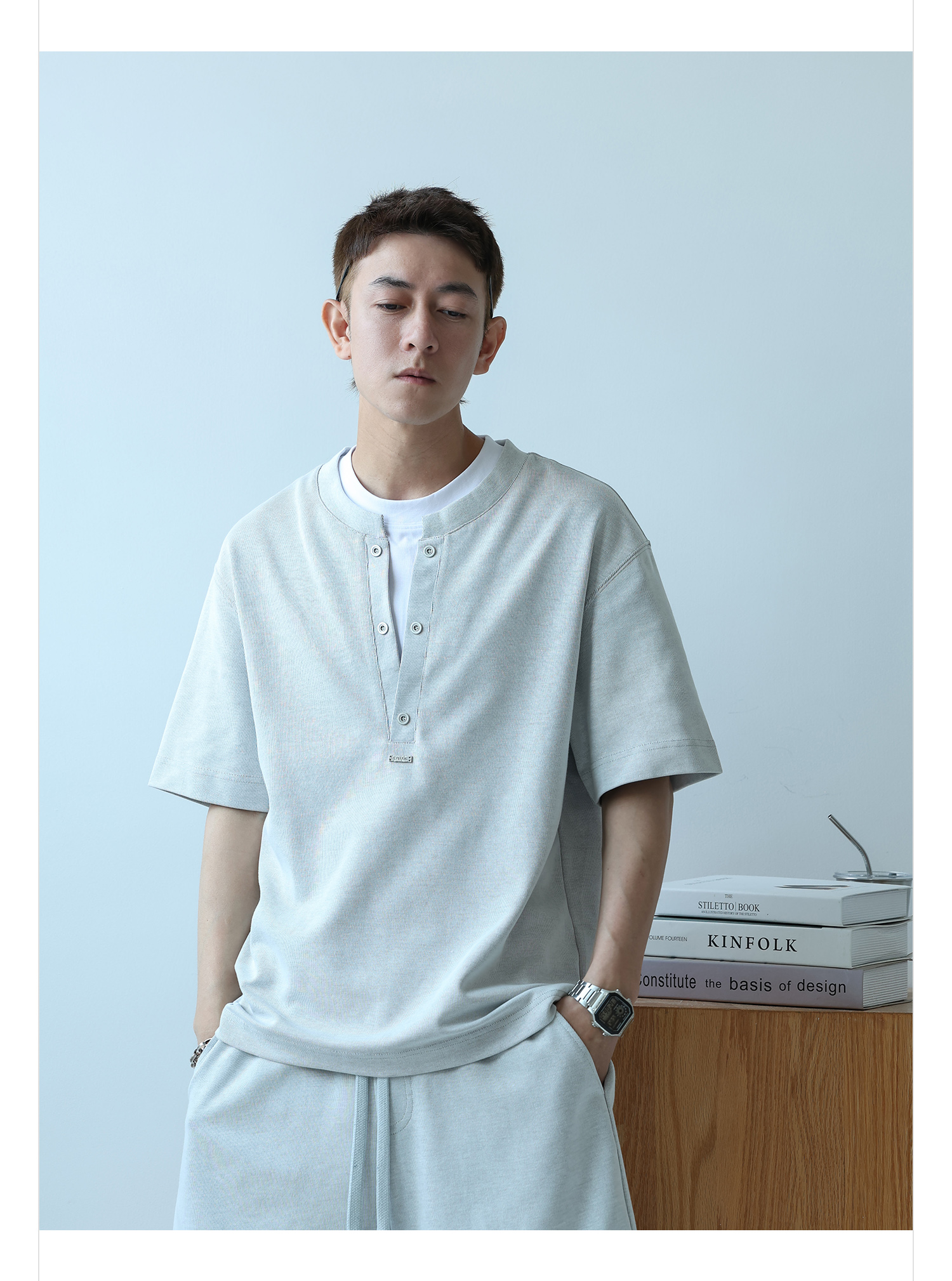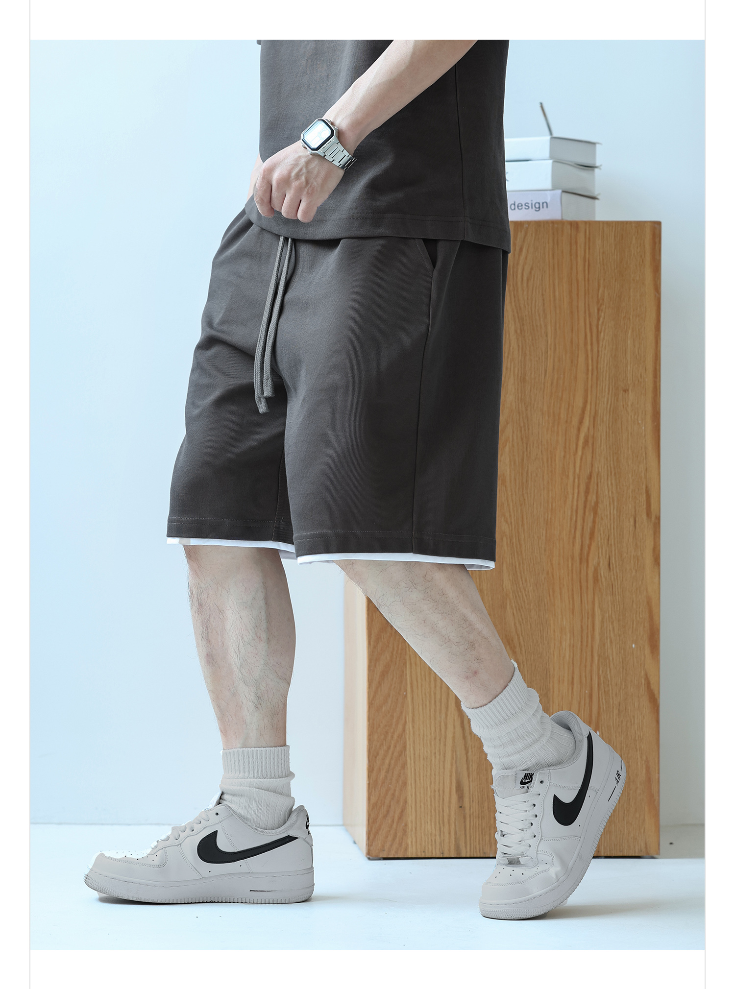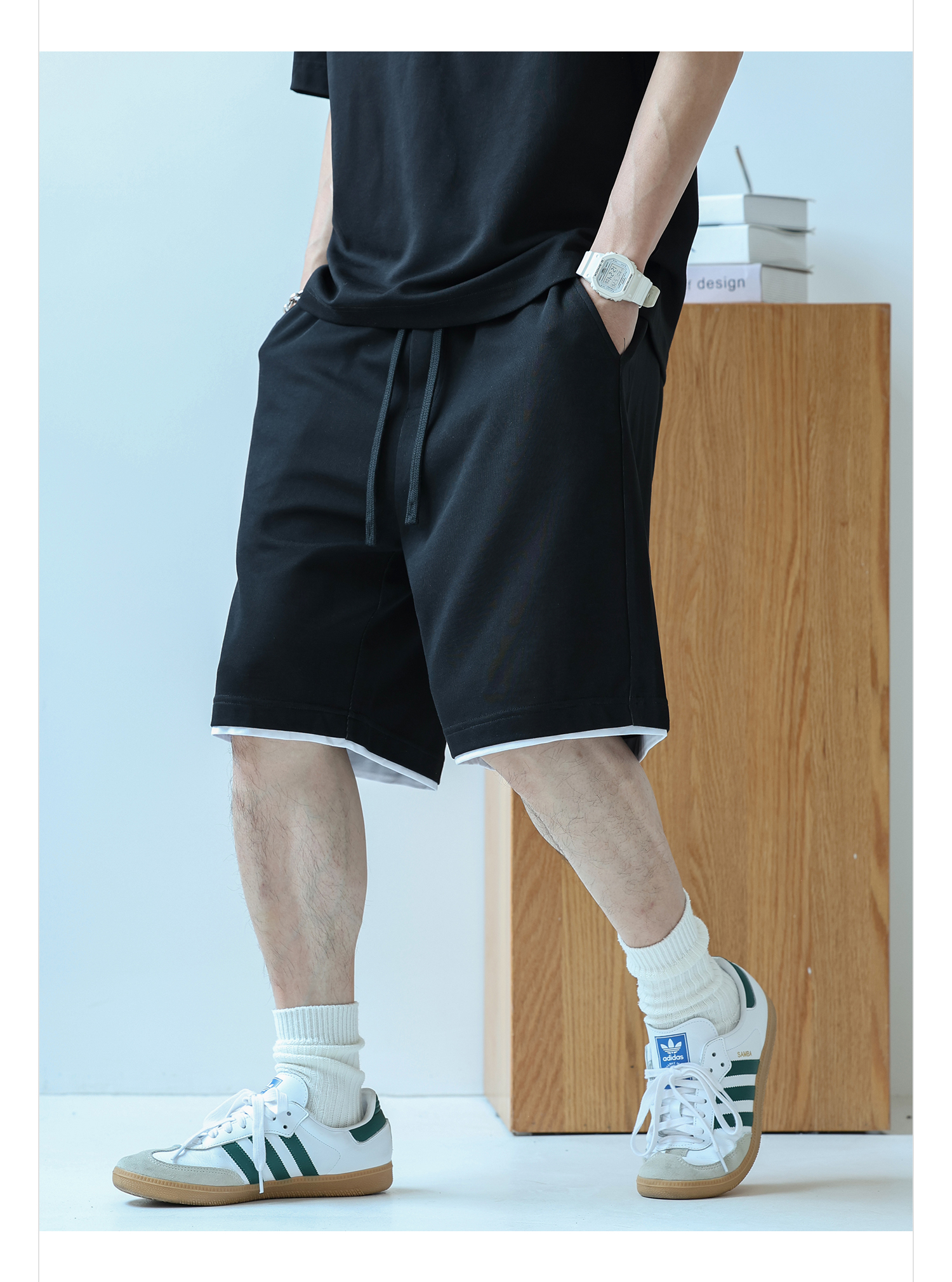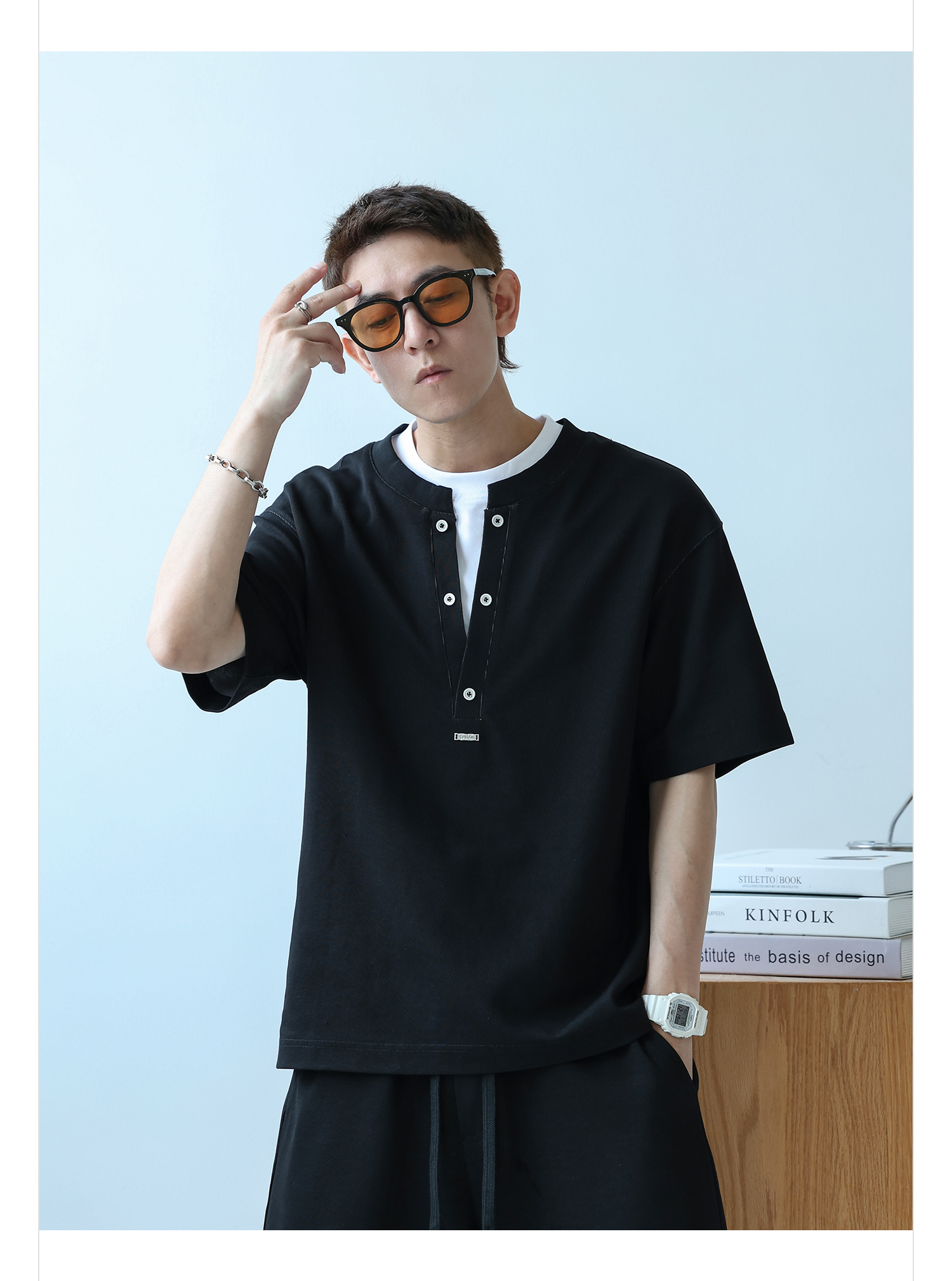 徐太浪230g速干透气休闲套装男夏季宽松大码门筒领T恤短裤两件套