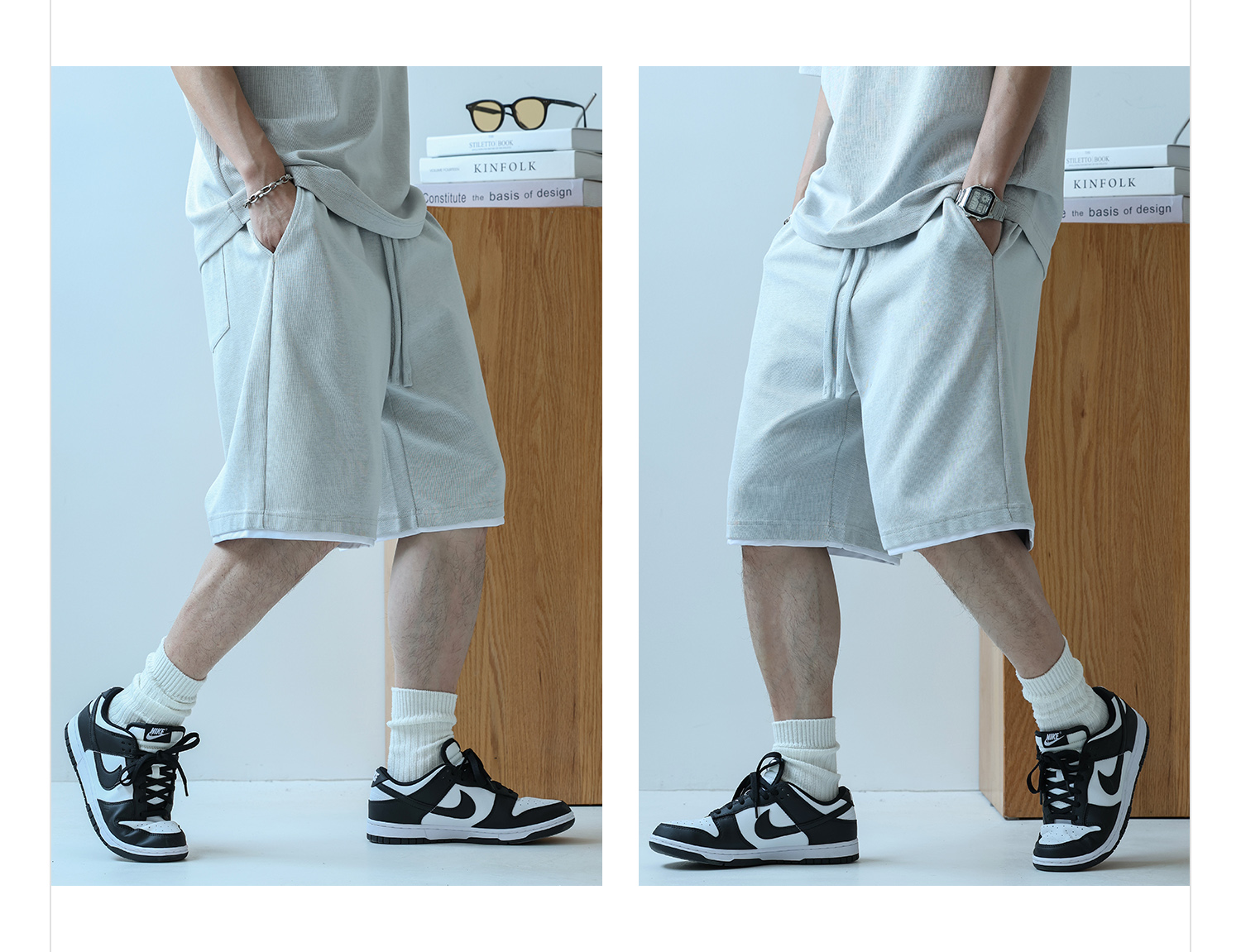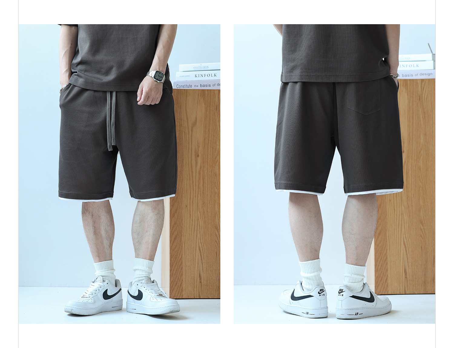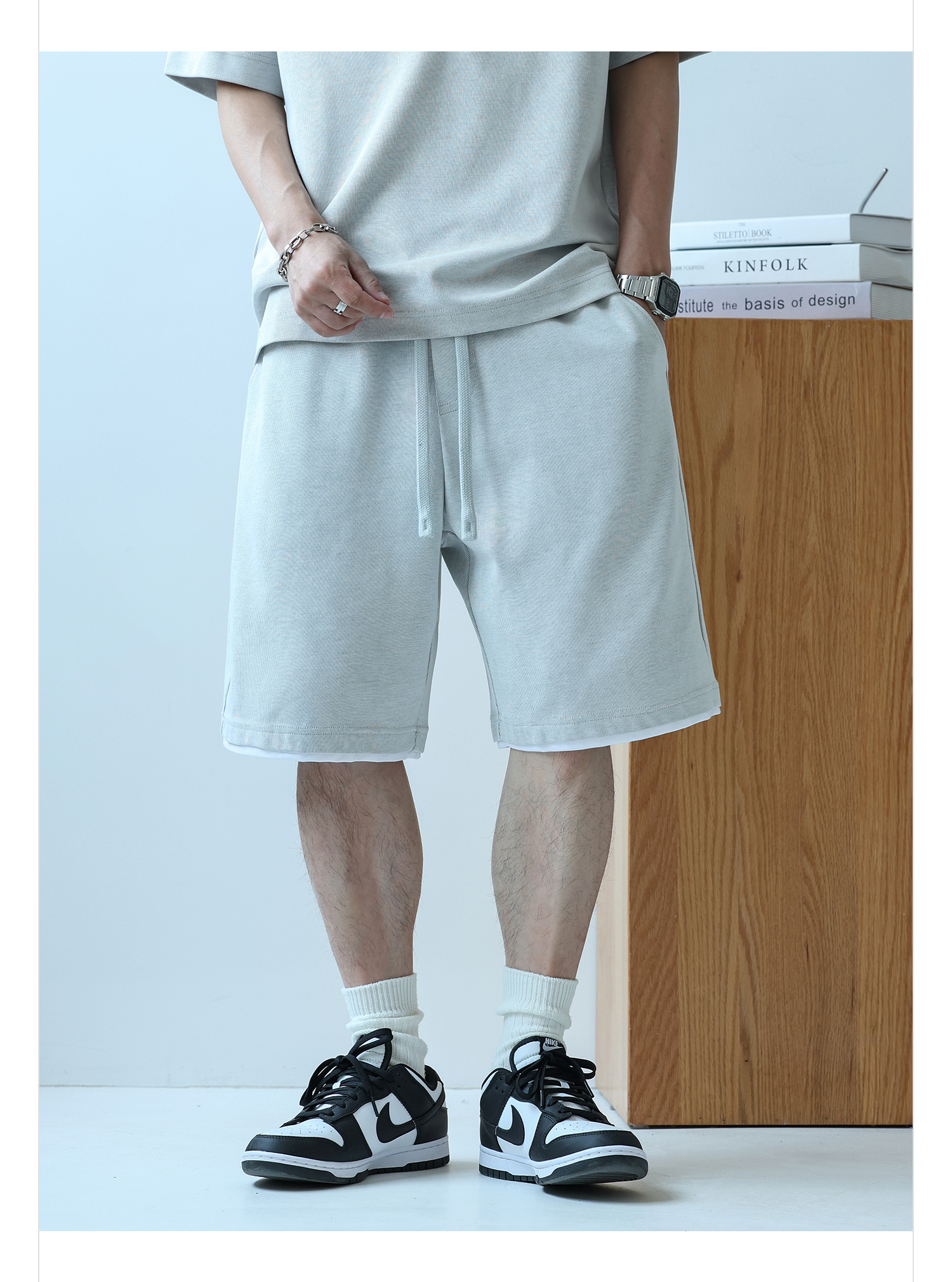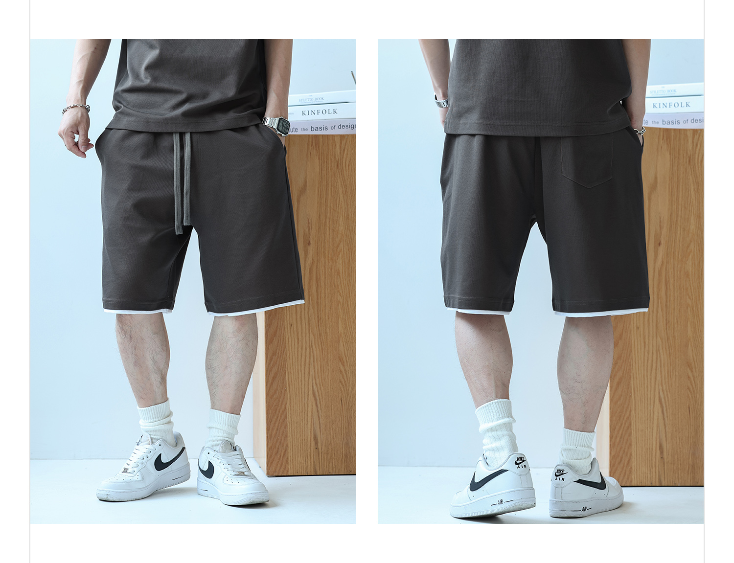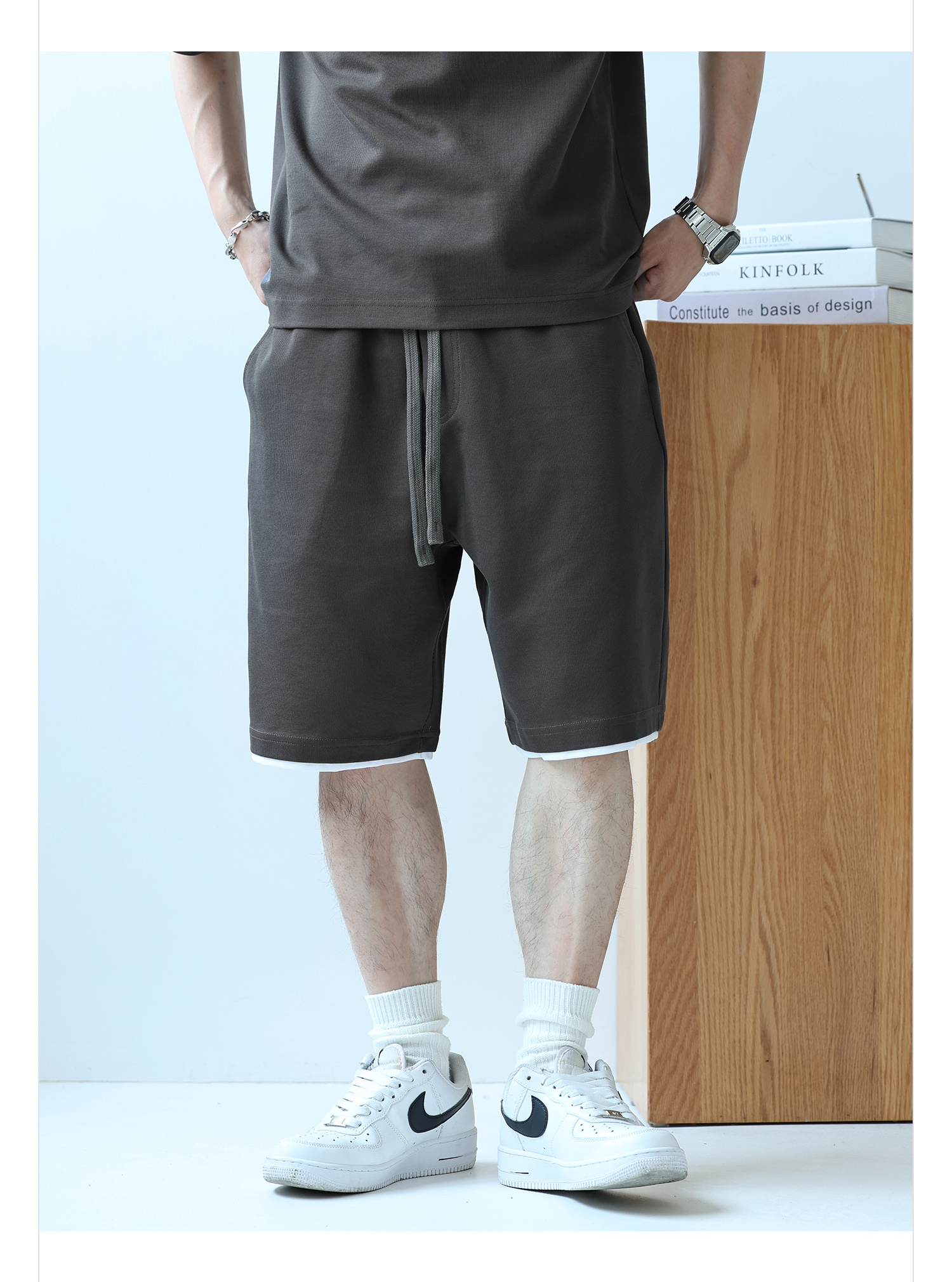 徐太浪230g速干透气休闲套装男夏季宽松大码门筒领T恤短裤两件套