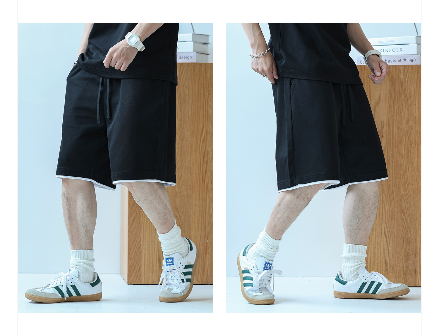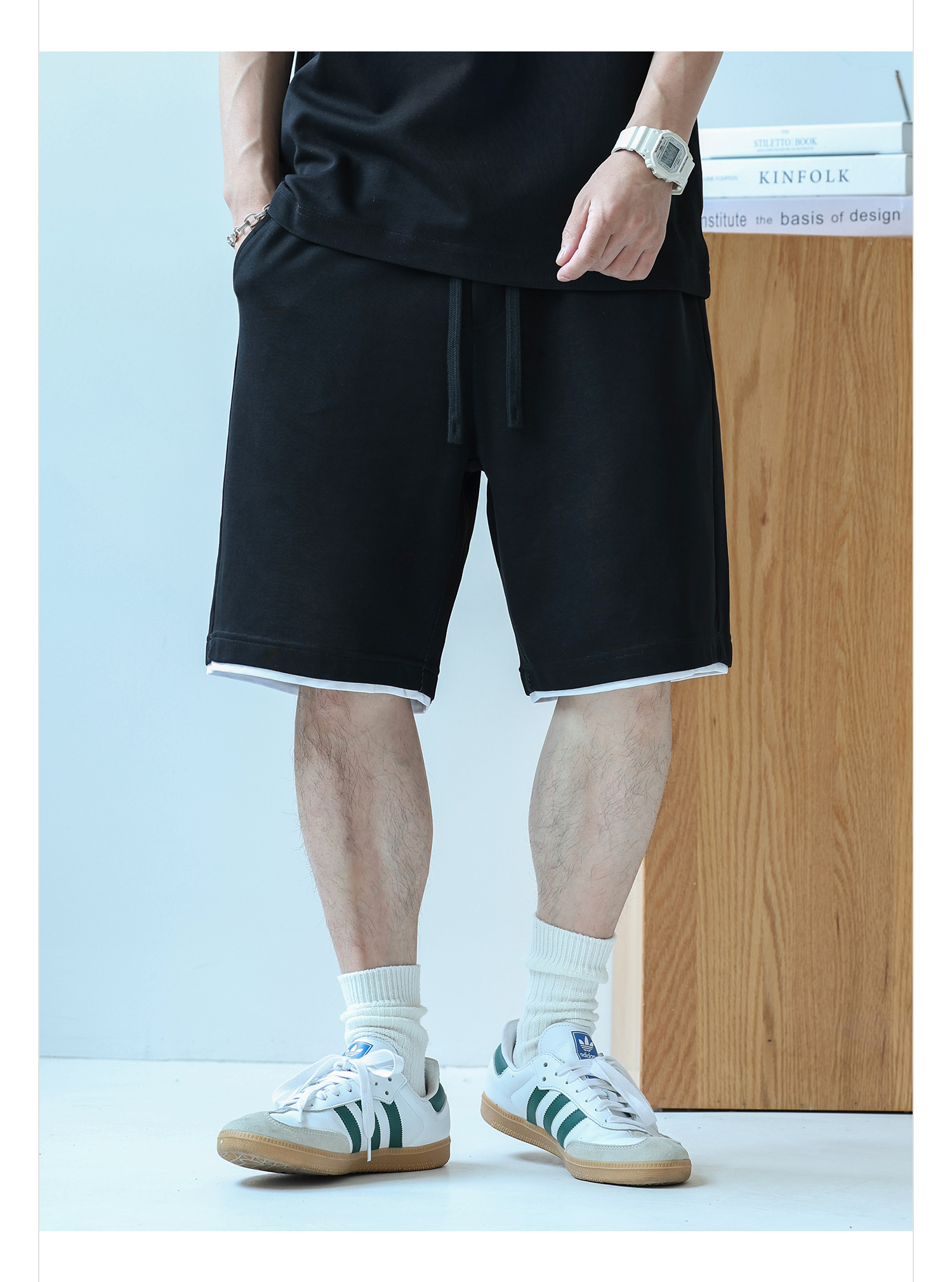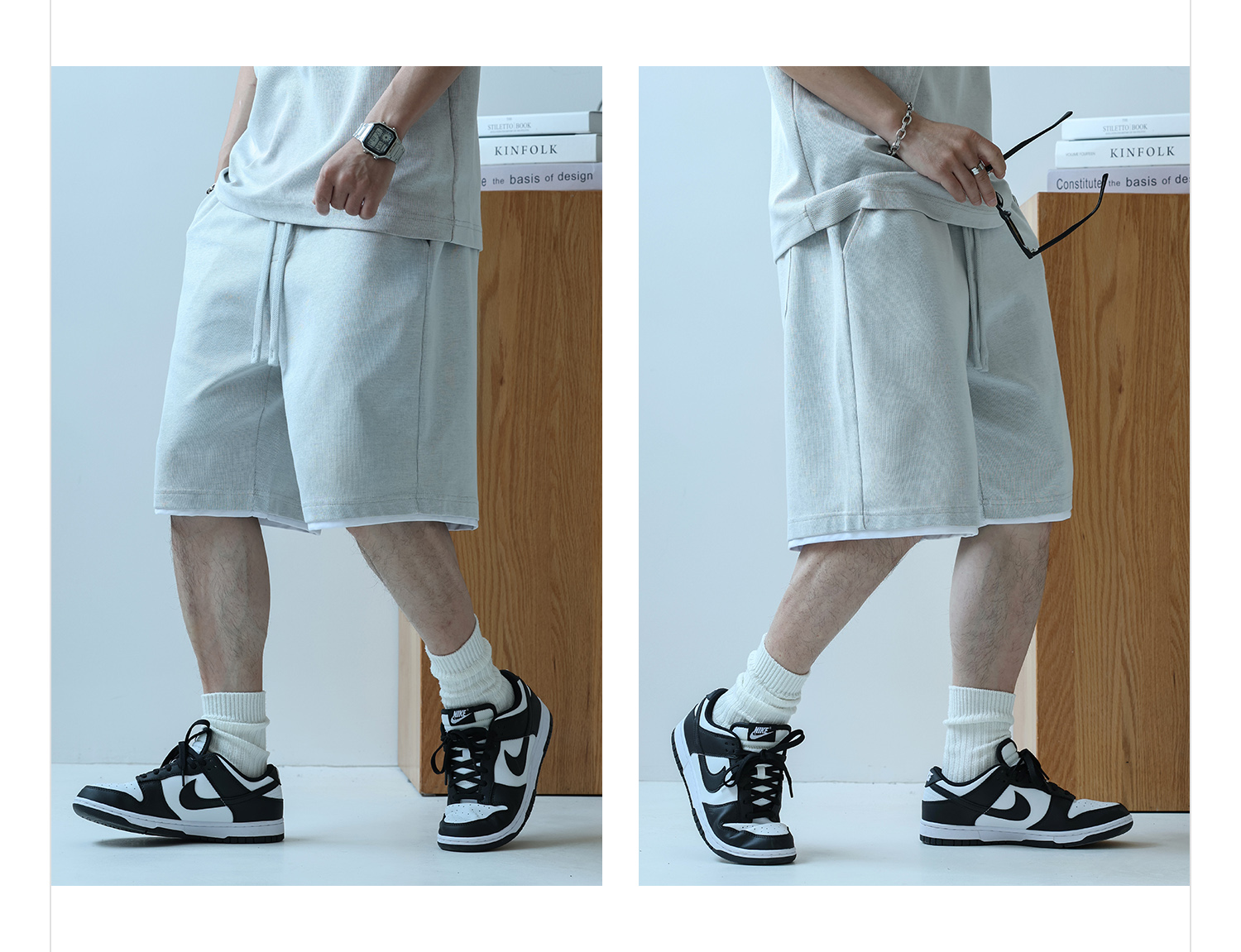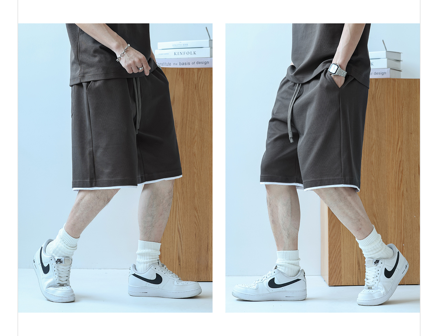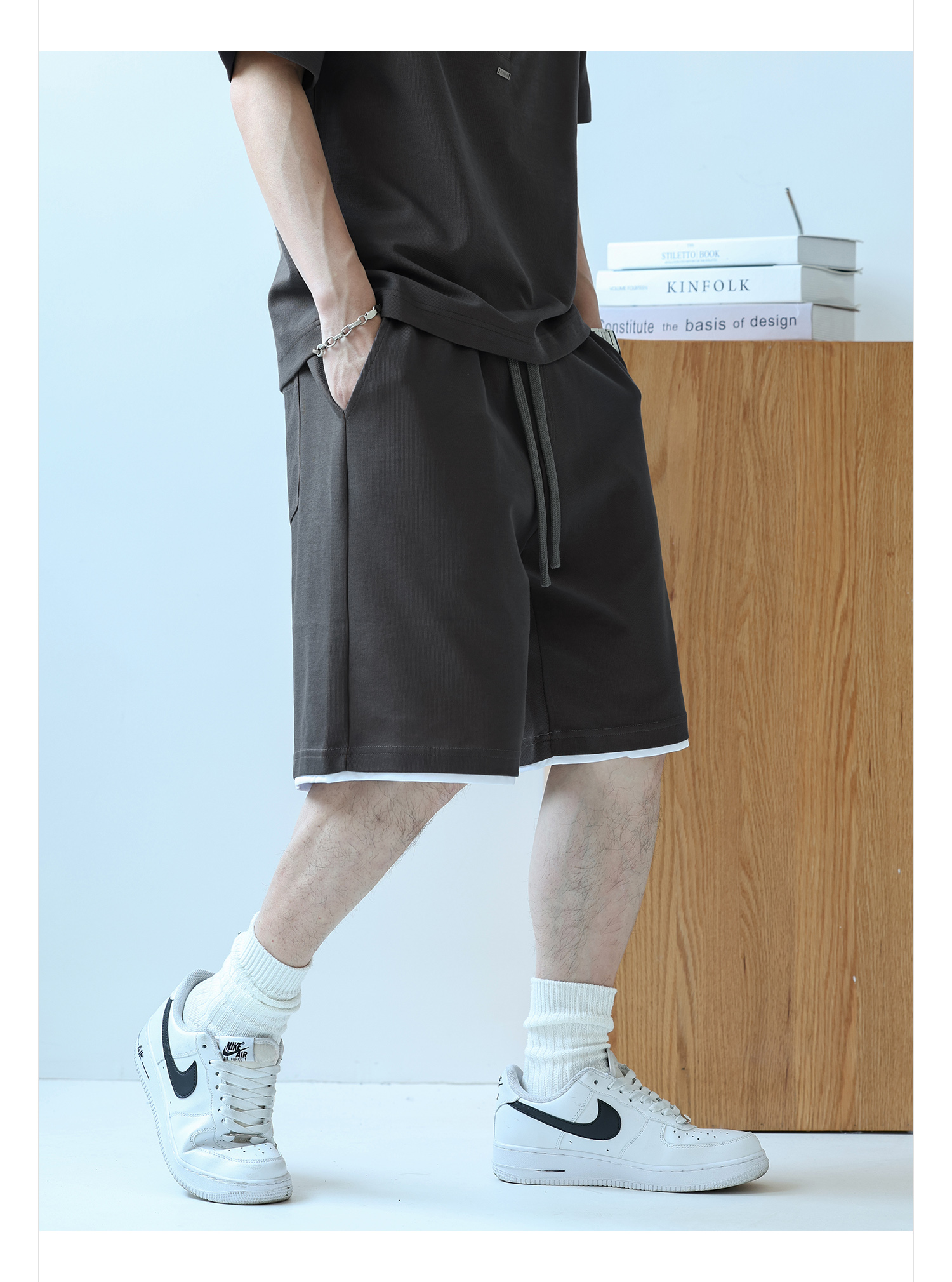 徐太浪230g速干透气休闲套装男夏季宽松大码门筒领T恤短裤两件套