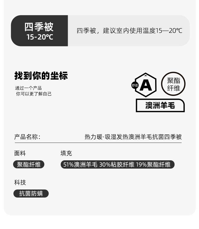 热力暖·吸湿发热澳洲羊毛抗菌四季被
