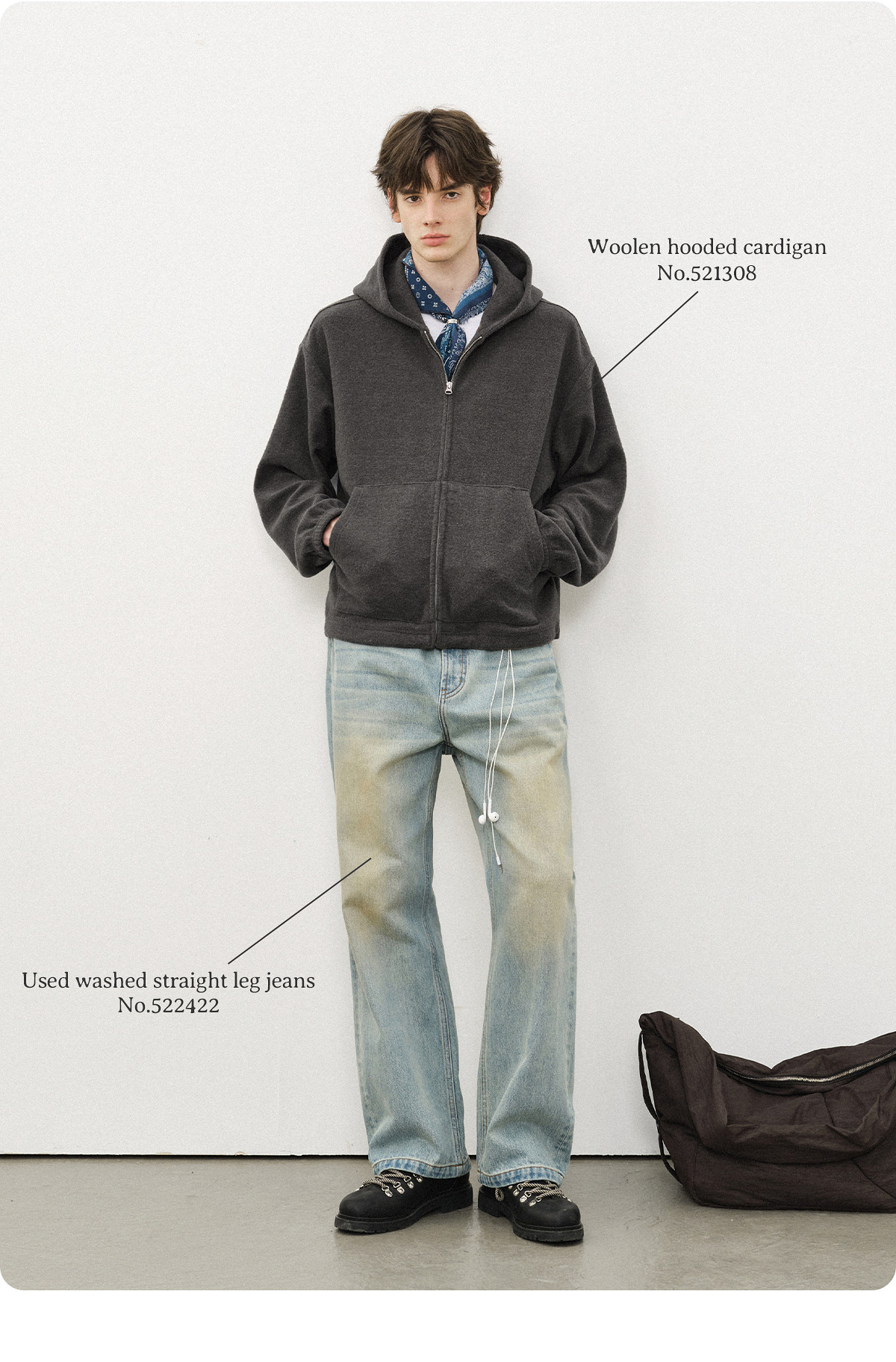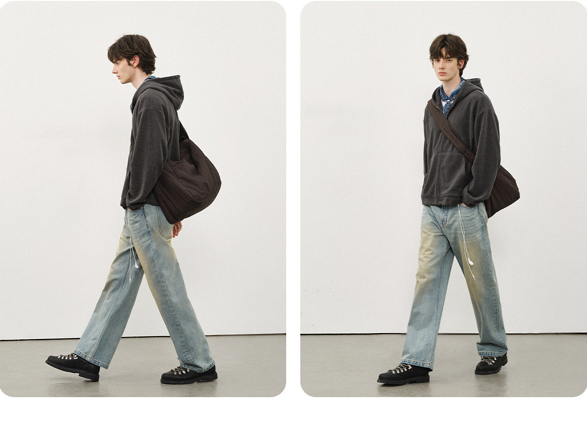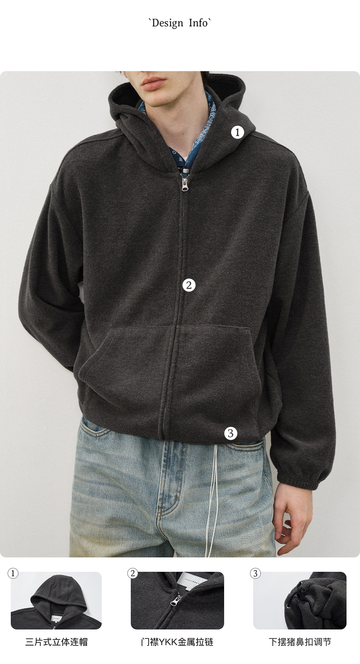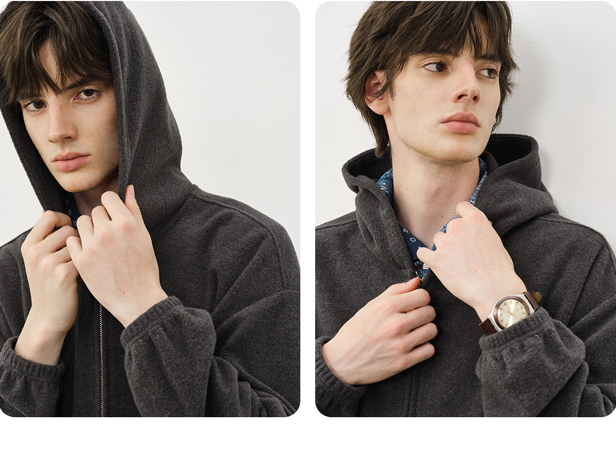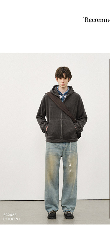 714street呢料针织外套男2025秋冬新款毛衣开衫美式复古连帽卫衣