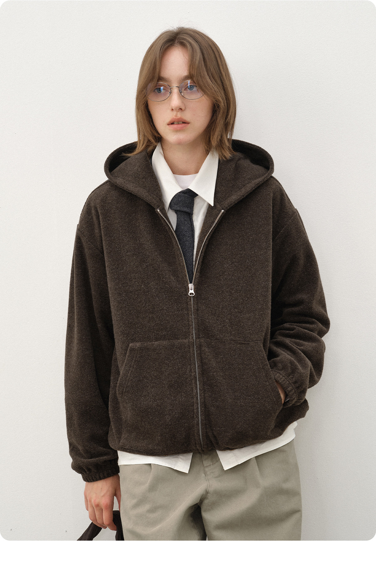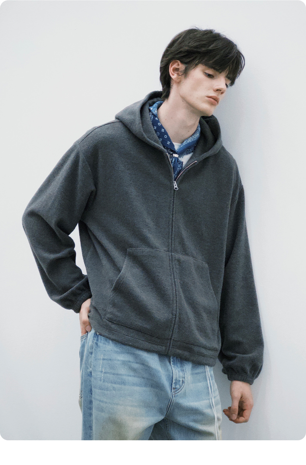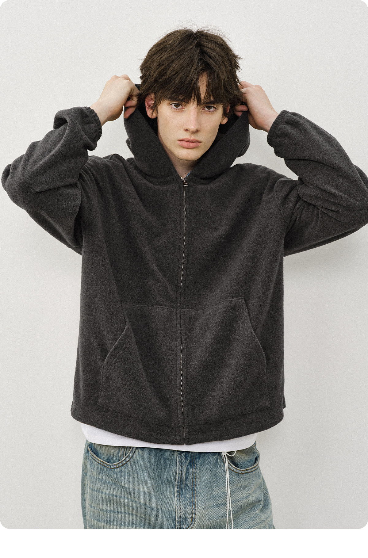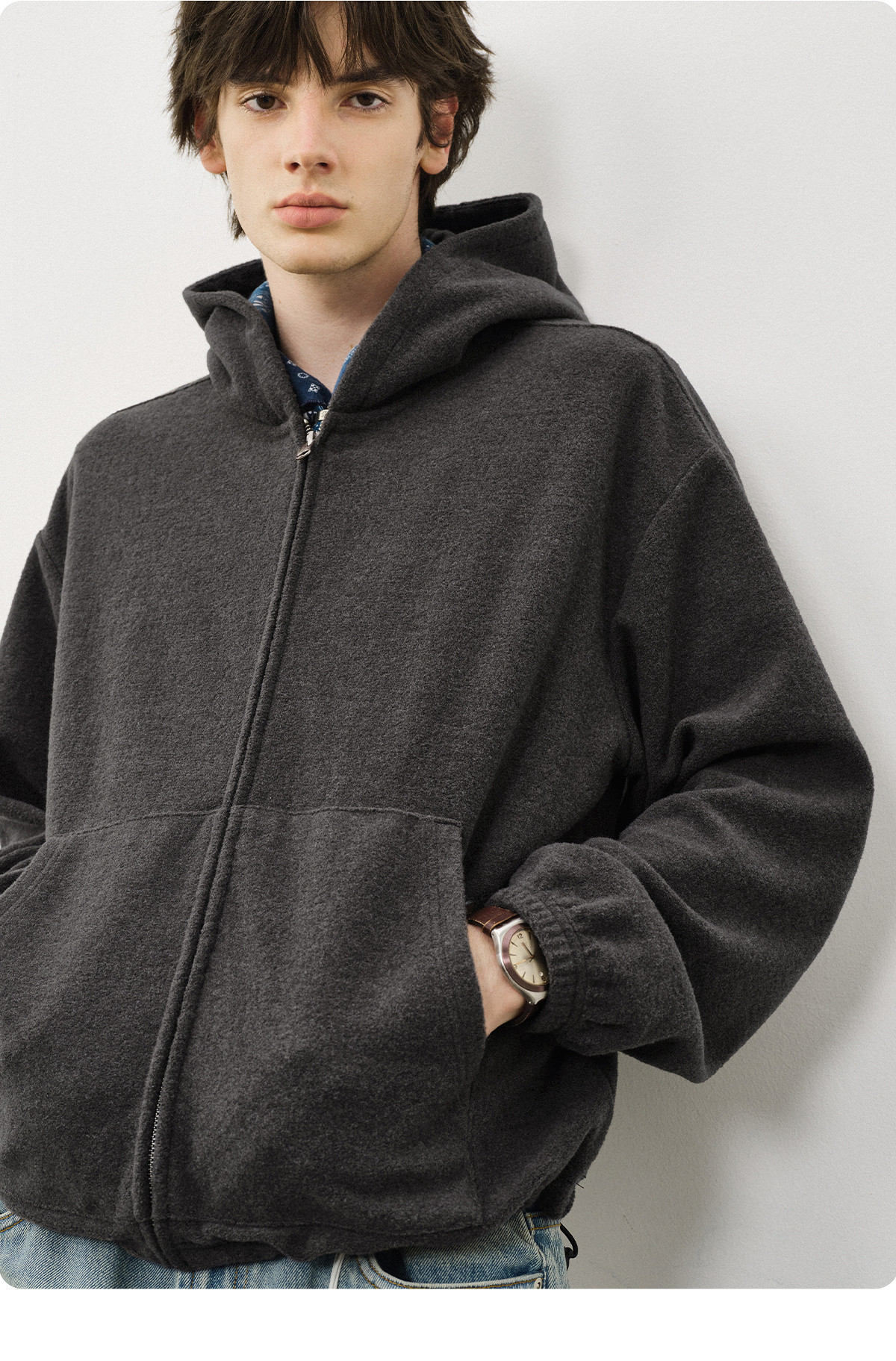 714street呢料针织外套男2025秋冬新款毛衣开衫美式复古连帽卫衣