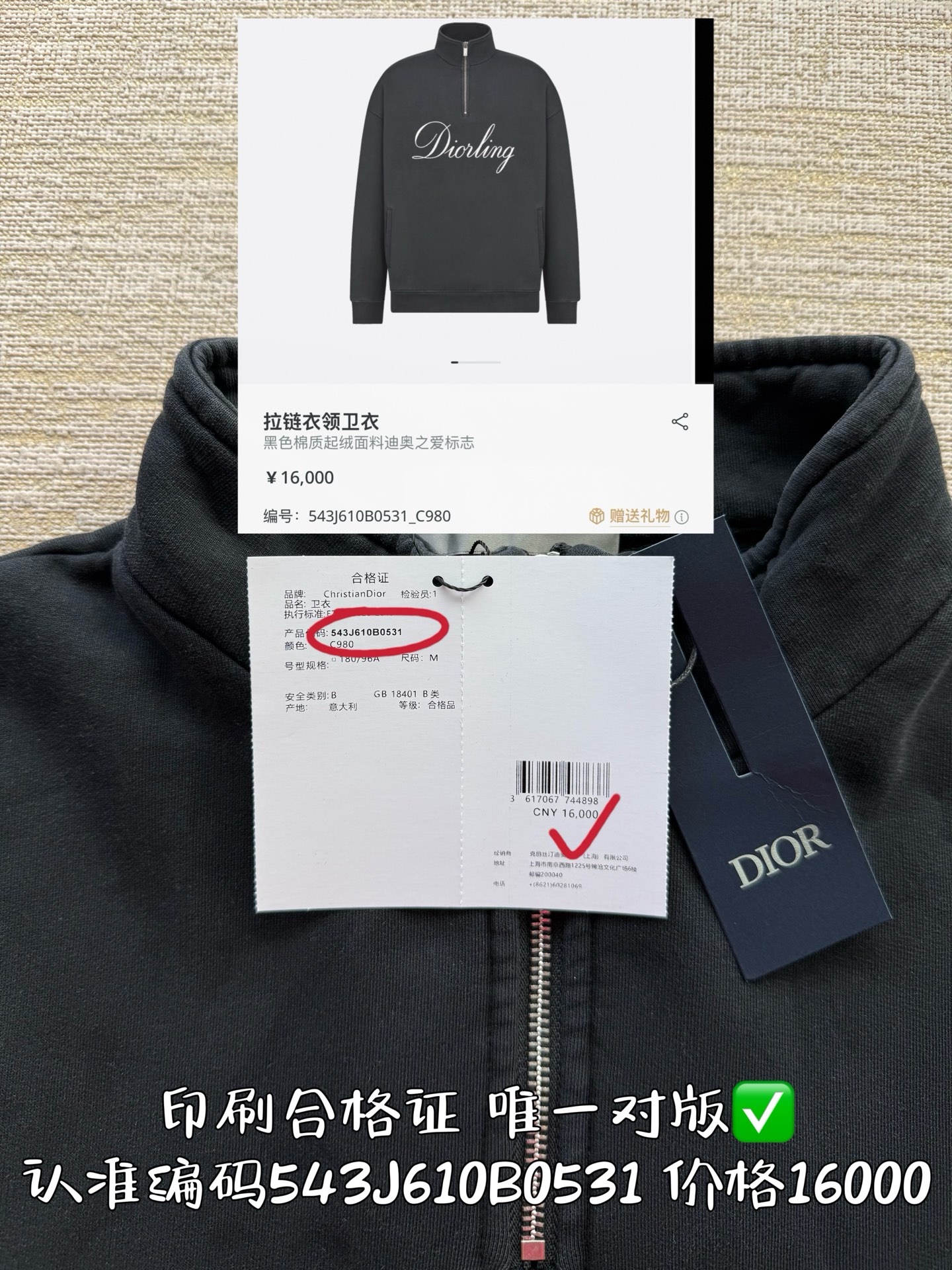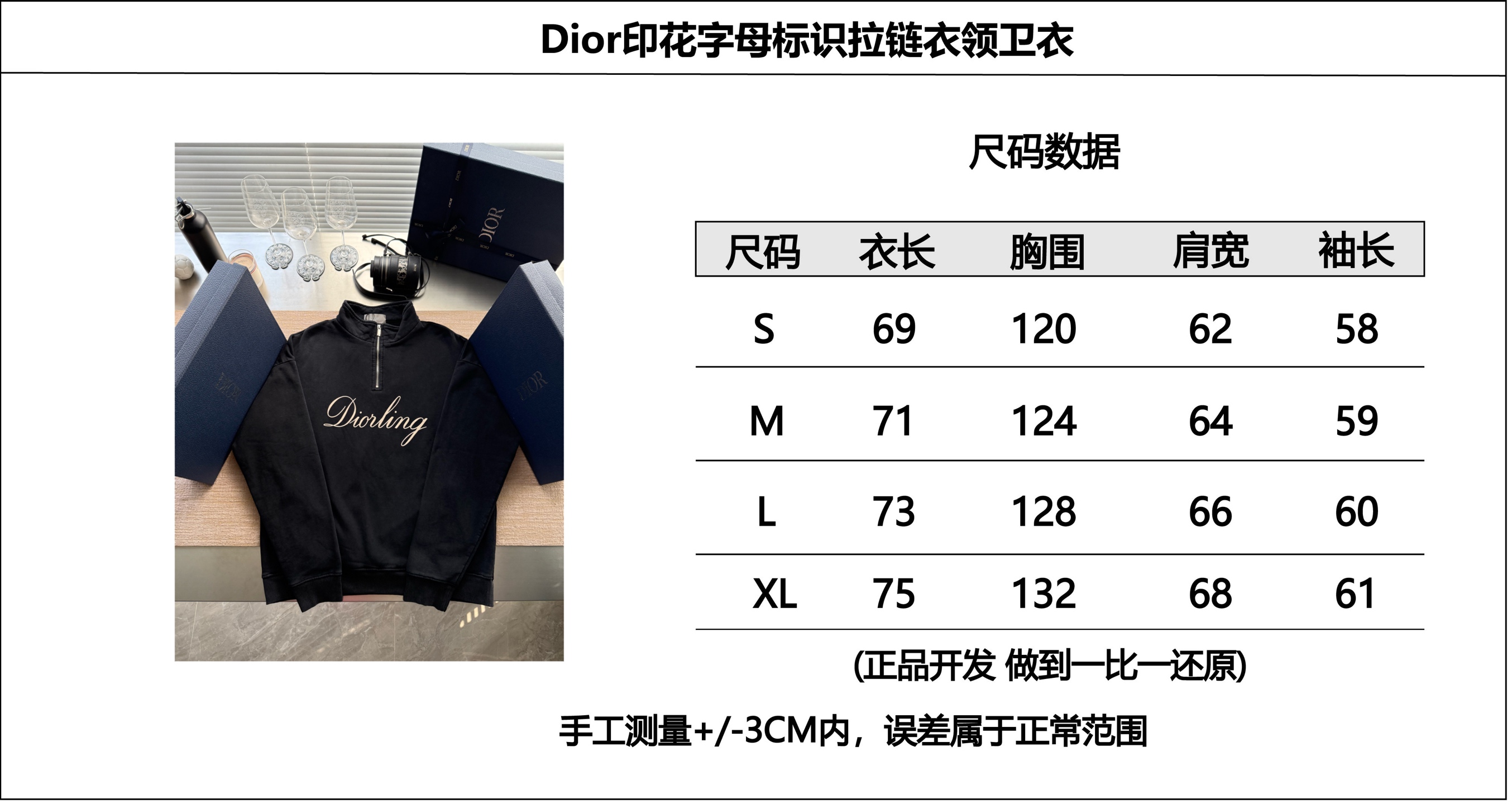Dior2025FW印花字母标识拉链衣领卫衣‼️整件衣服1600购买ZP拆解打造,定织100%棉质起绒面料,意大利制造,前幅饰以Dior绒面提花,门襟开模定制Dior字母标识拉链,定织标志性罗纹袖口 下摆,真正做到1:1copy 闭眼入 码数:S M L XL