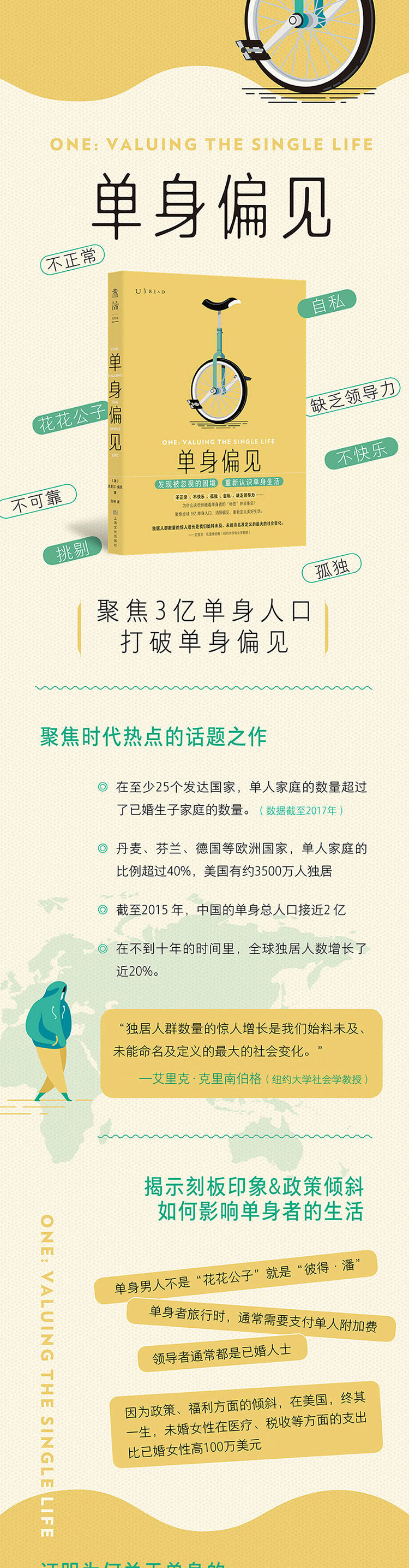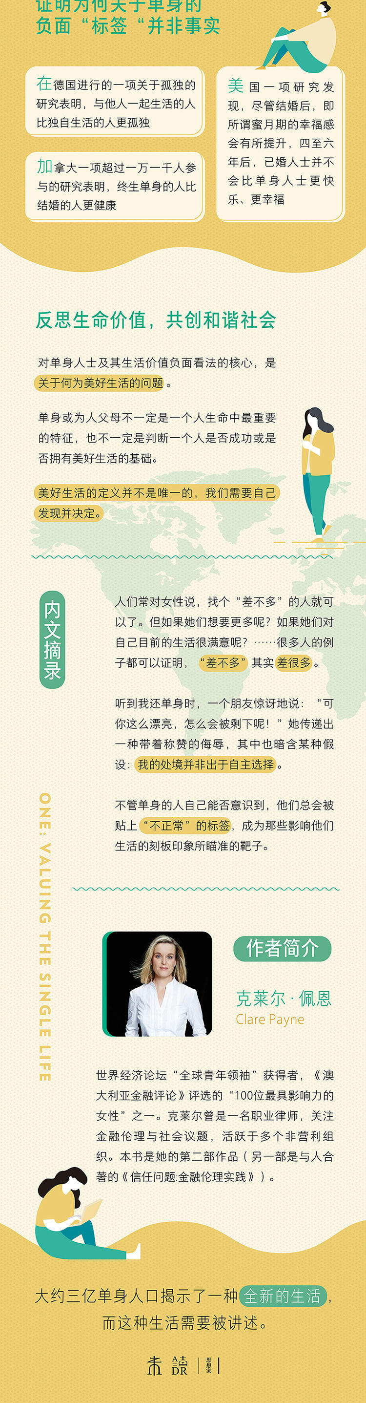本书从社会结构、政策、福利、职场、他人评价等多个角度探讨了单身人士在日常生活中遇到的挑战或歧视,让人们深入了解这种被越来越多人选择的生活方式。呼吁人们正确认识单身这一生活状态,以及由此带来的对生命价值的重新思考。