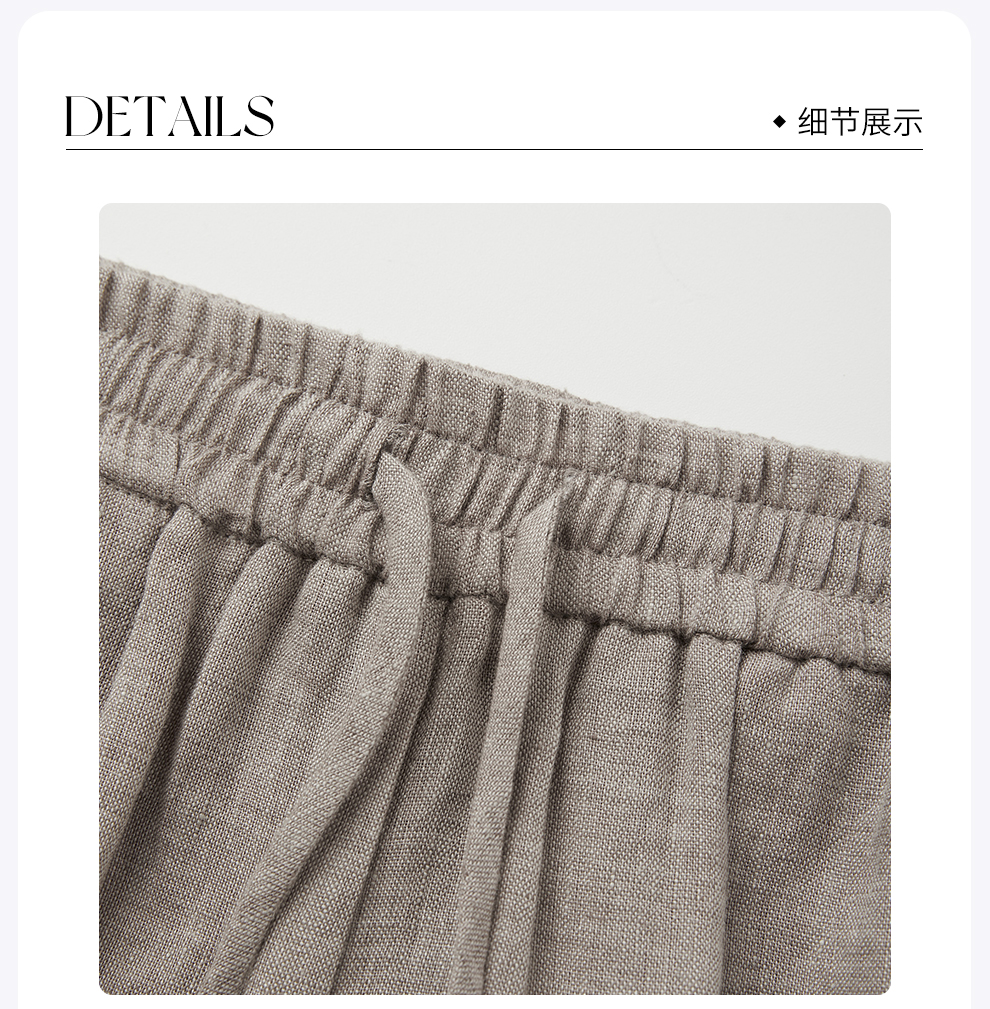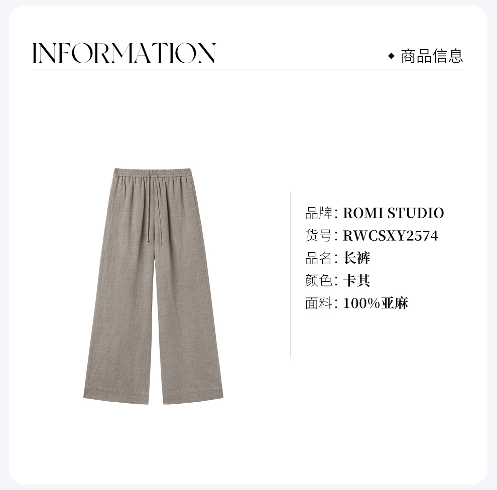 ROMI STUDIO士林染100%亚麻经典老钱松紧腰直筒长裤 RWCSXY2574