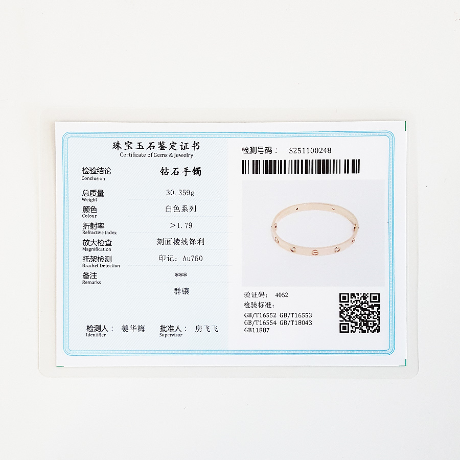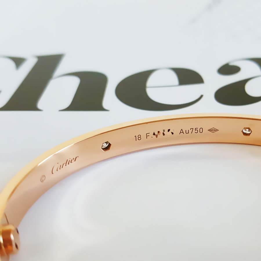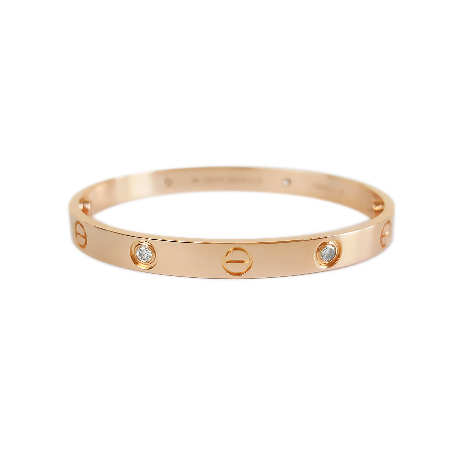 【天然正品】AU750玫瑰金简约时尚高定定制款四钻LOVE钻石手镯18号(皆取最大值)女士311025NJ39