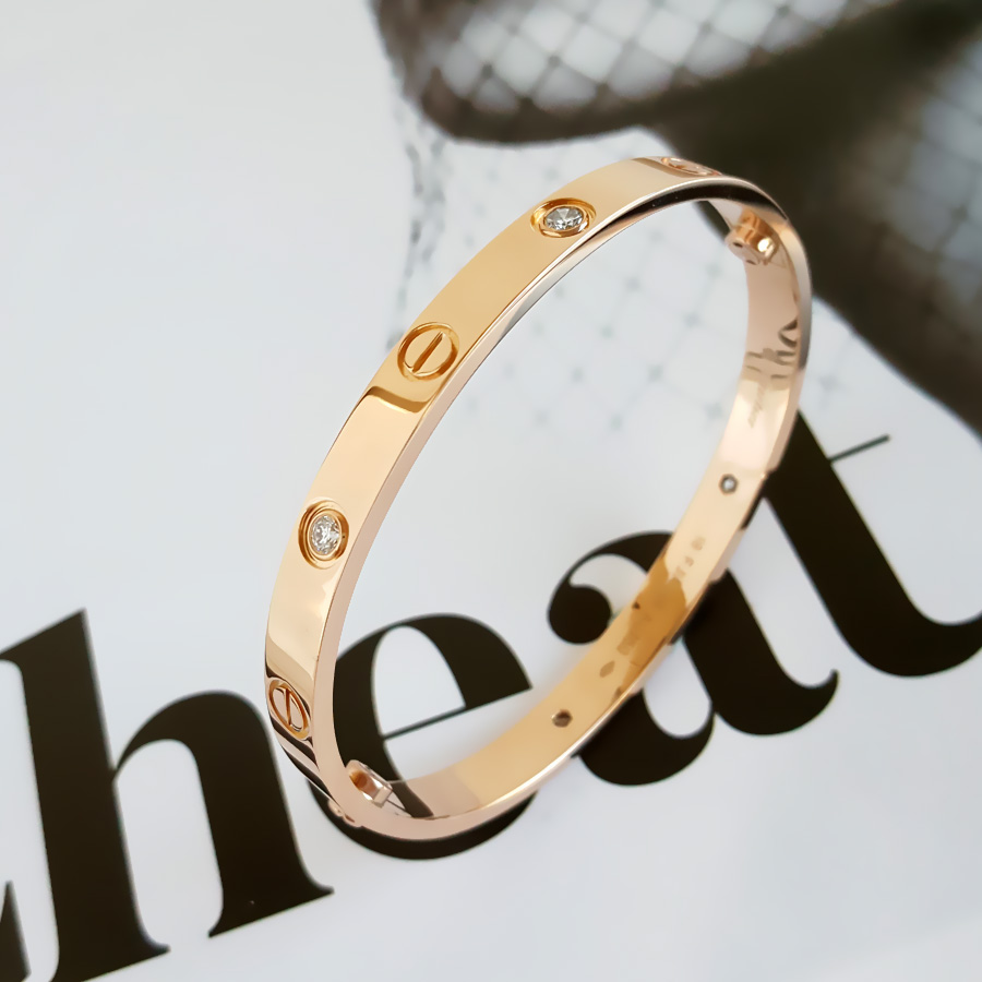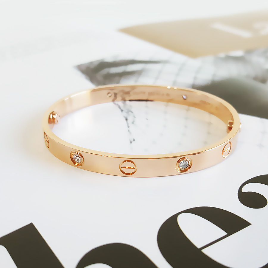 款式 | AU750玫瑰金简约时尚高定定制款四钻LOVE钻石手镯 |