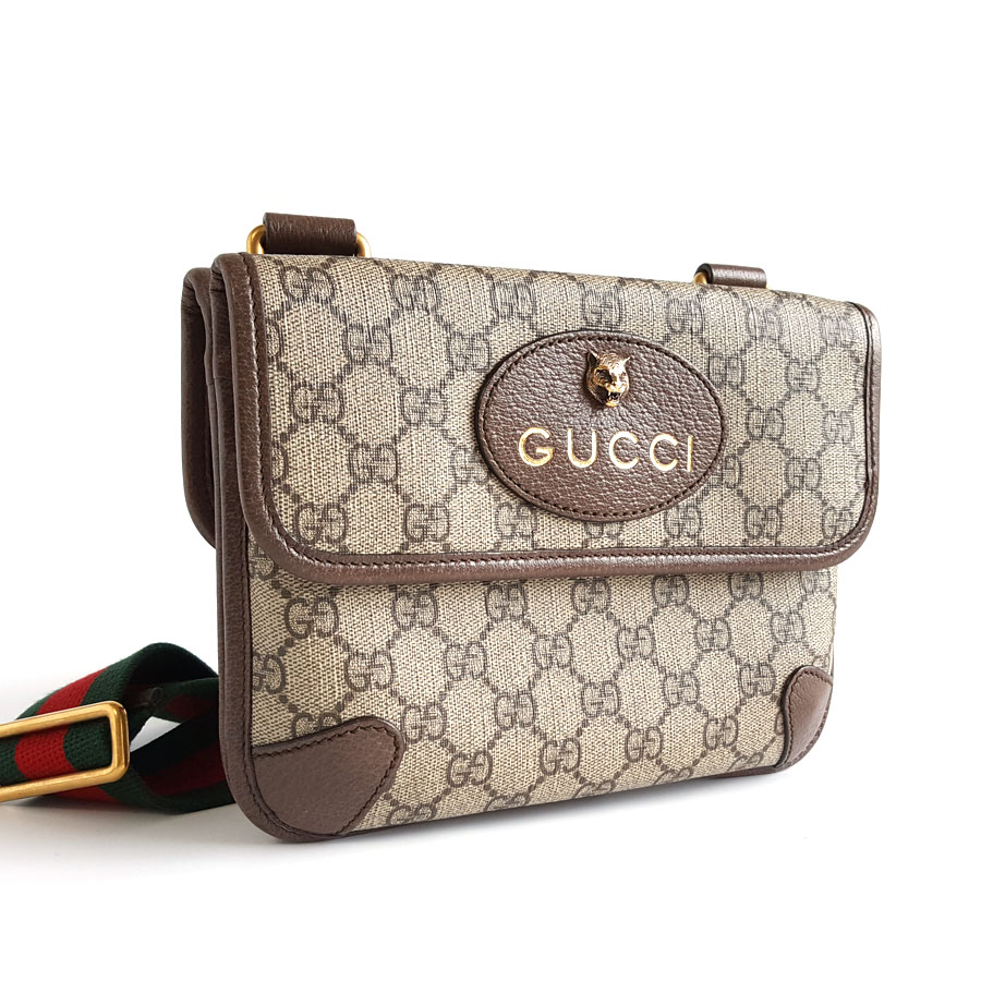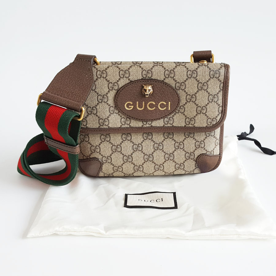 【95新】Gucci古驰501050老花帆布双面虎头包邮差包斜挎包中性款 080725AK01