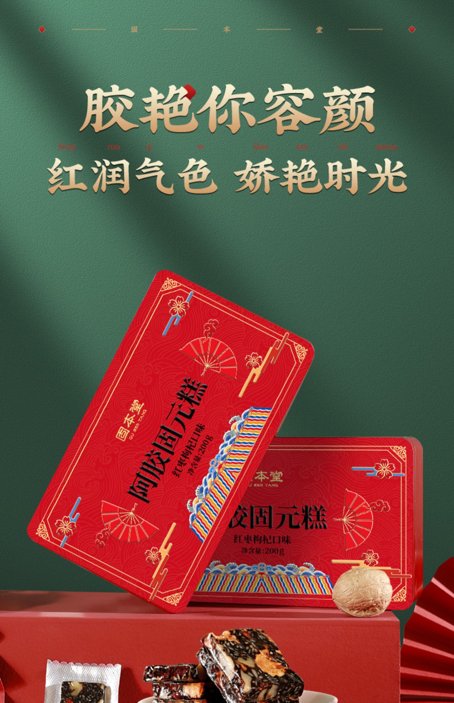 红枣枸杞阿胶固元糕200g 即食阿胶糕送礼长辈父母家长女人营养品礼品食品礼盒 【固本堂】