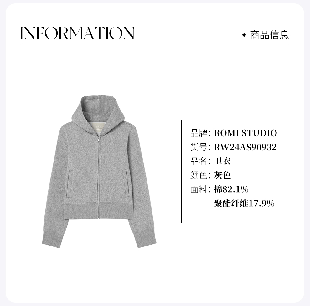 ROMI STUDIO“美式休闲”运动休闲加绒短款连帽卫衣外套RW24AS90932